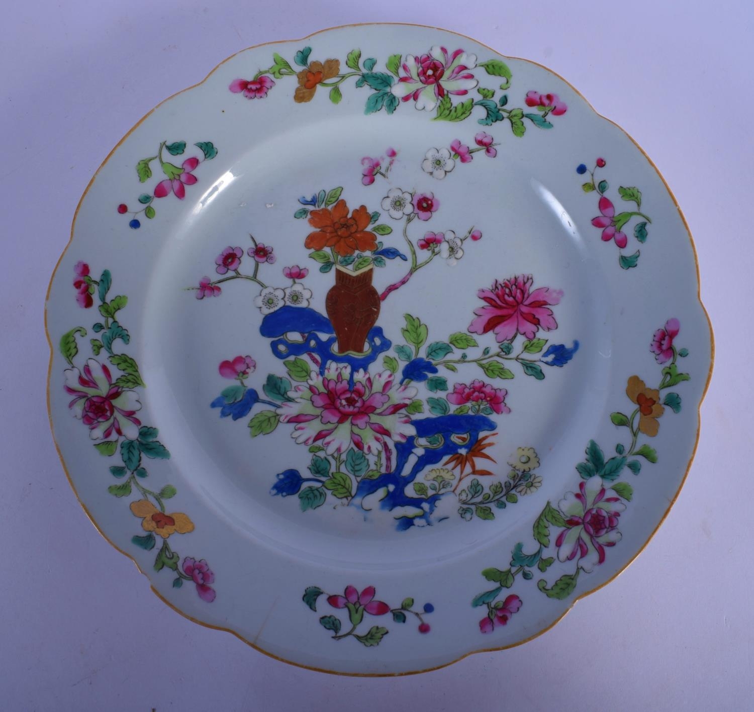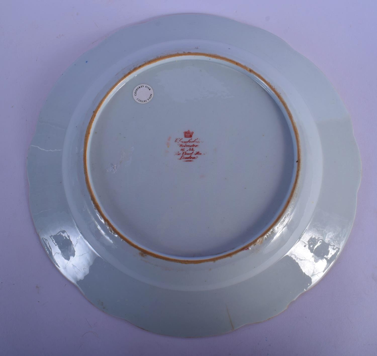 A VERY RARE LATE 18TH CENTURY CHAMBERLAINS WORCESTER PLATE Chinese Export style. 23 cm wide. Note: Geoffrey Fisk Collection.