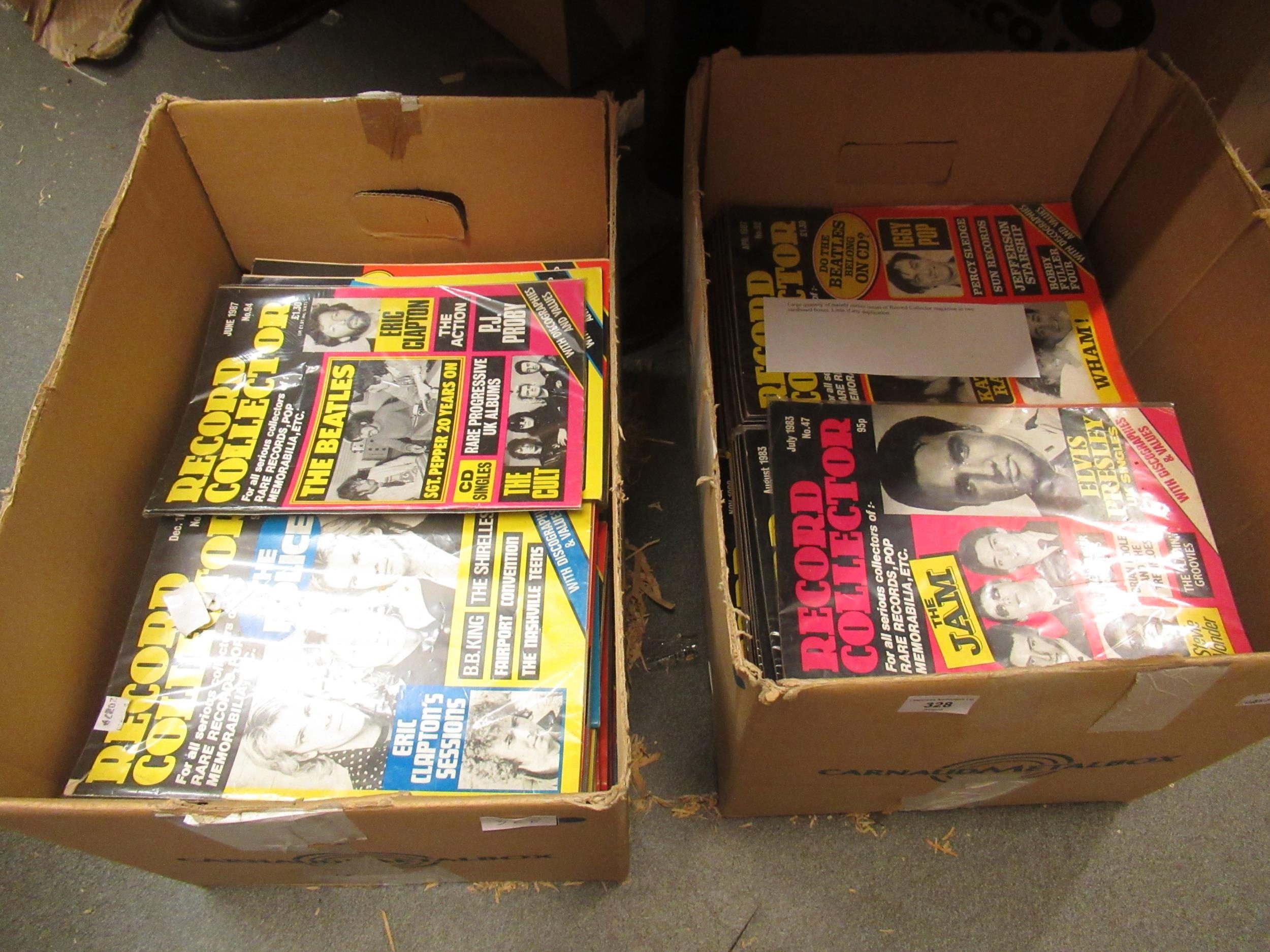 Large quantity of mainly earlier issues of ' Record Collector ' magazine in two boxes