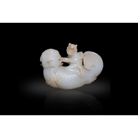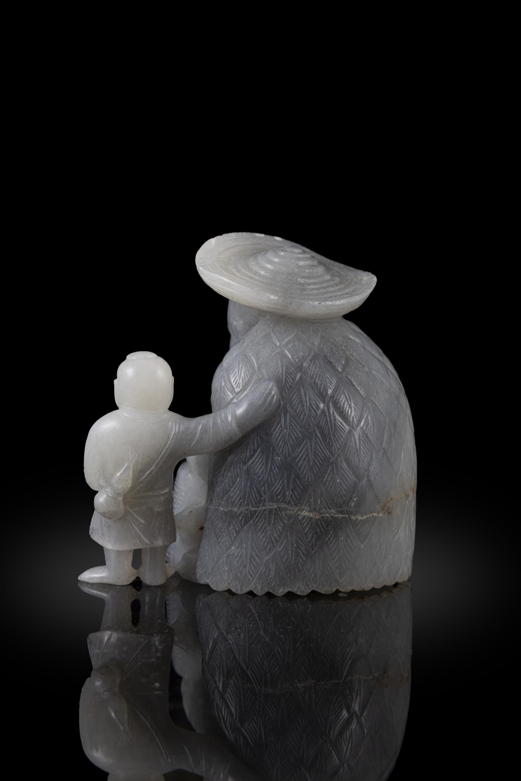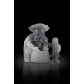 A BLACK AND WHITE FISHERMAN AND SON JADE GROUP ?? ????????? China, late Qing dynasty H. 7.5cm
