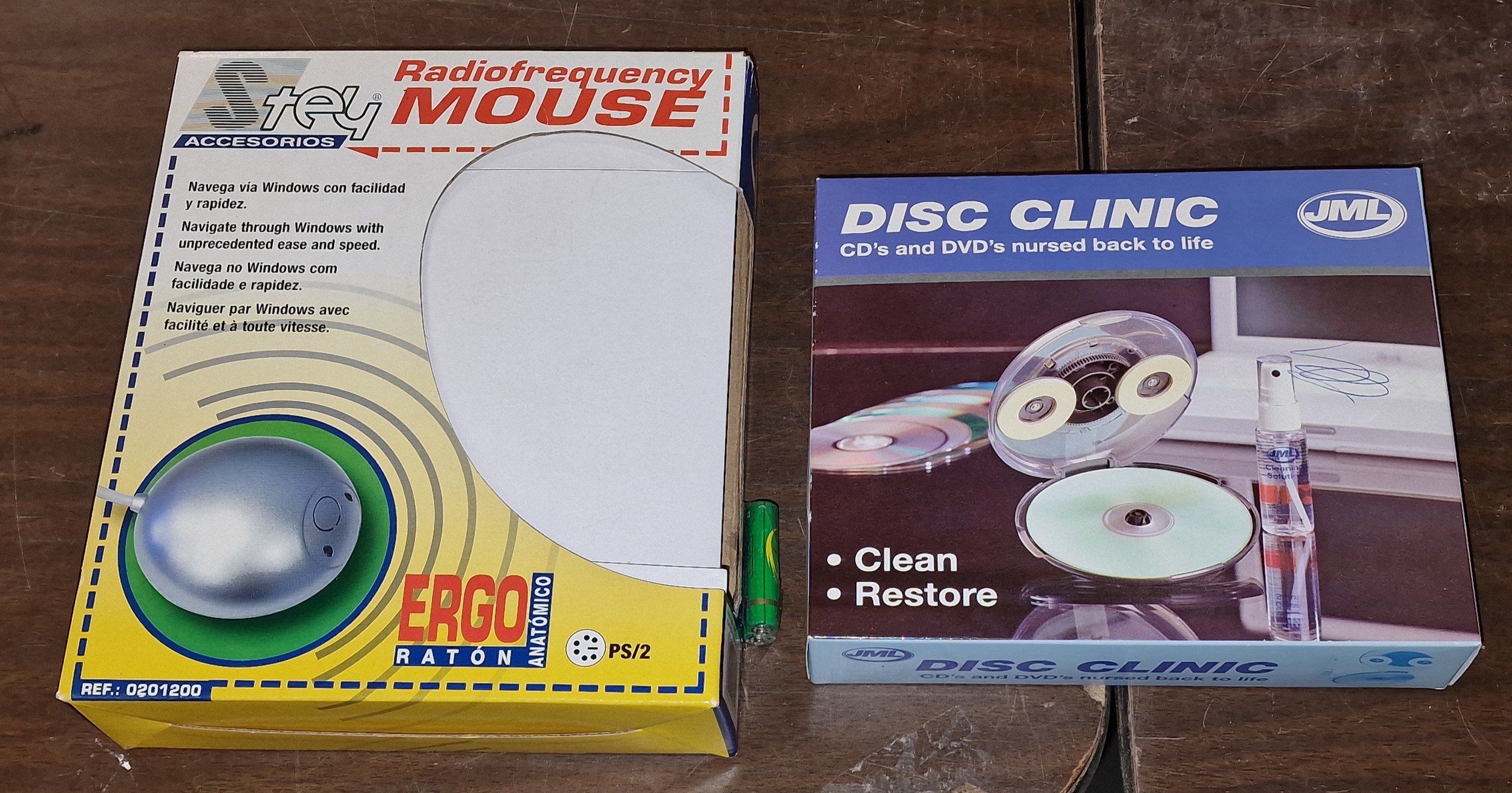 Boxed and unused radio frequency mouse and boxed JML disc clinic