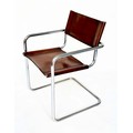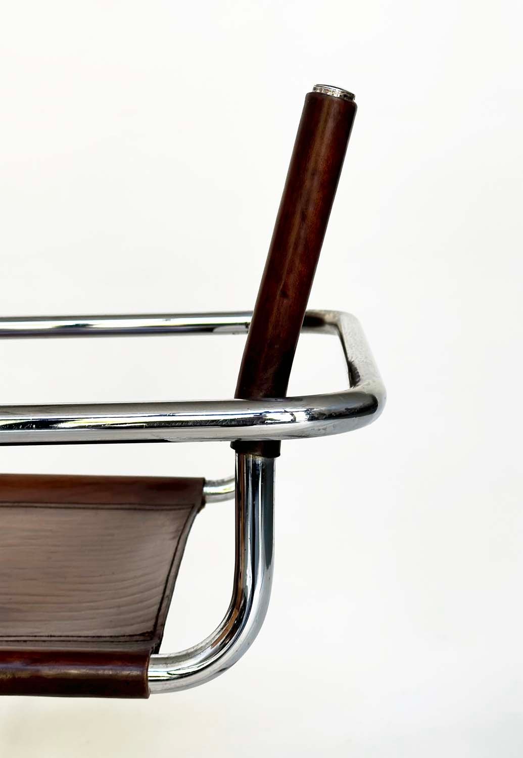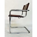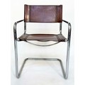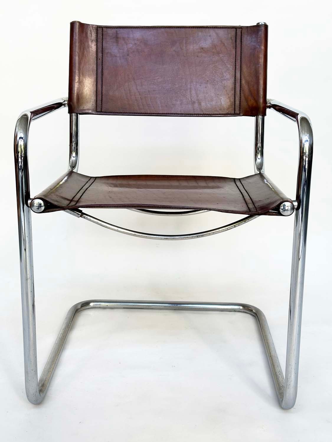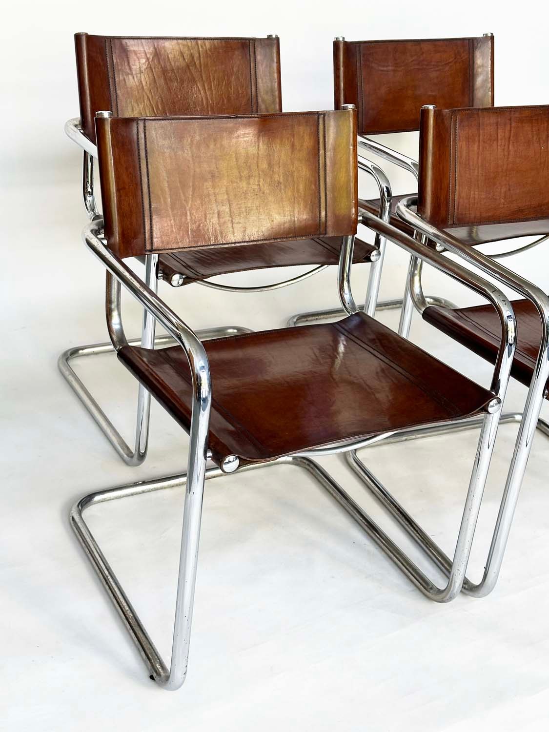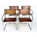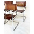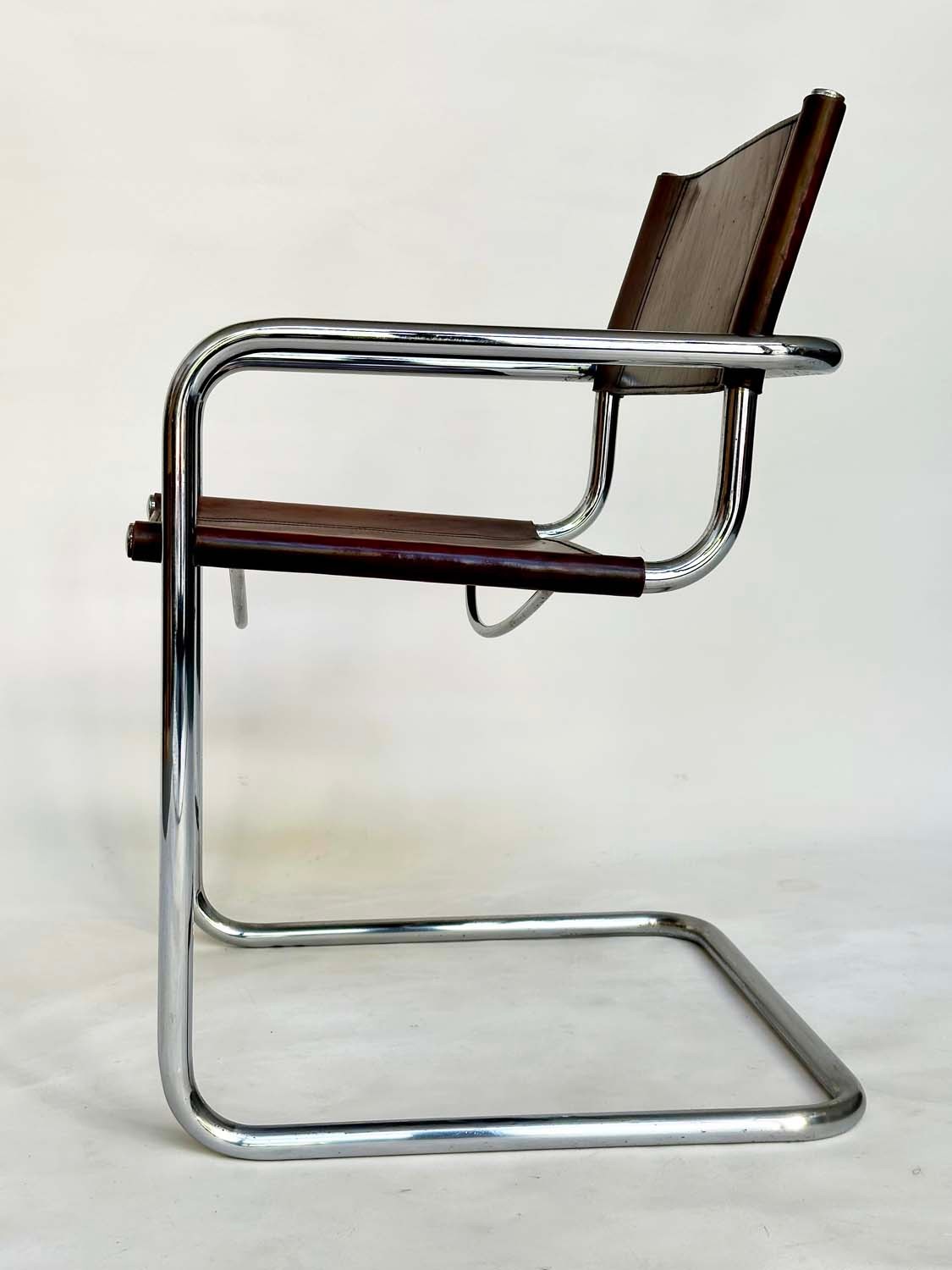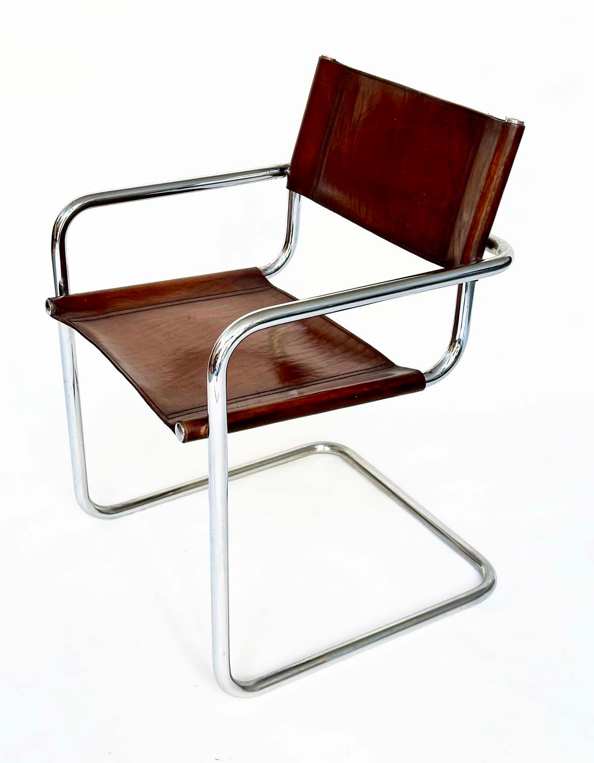 DINING ARMCHAIRS, a set of four, Bauhaus style design, stitched hand finished tan brown leather and cantilever metal supports after a design by Mart Stamm, 55cm W. (4)