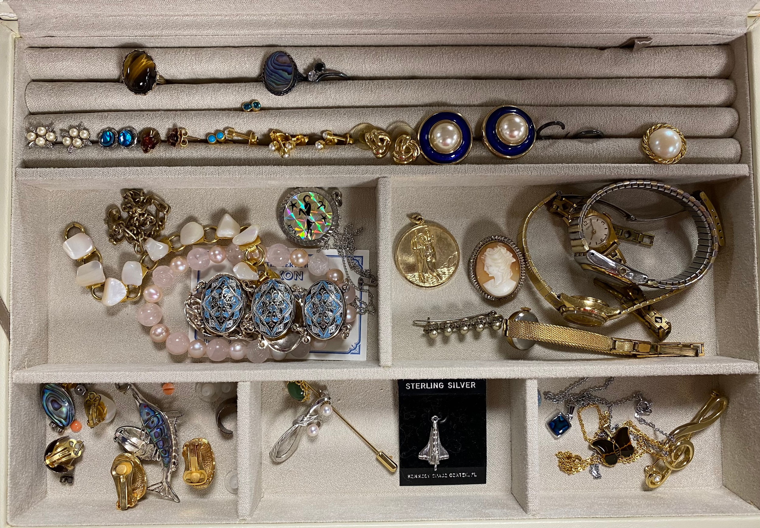 A jewellery box and contents -