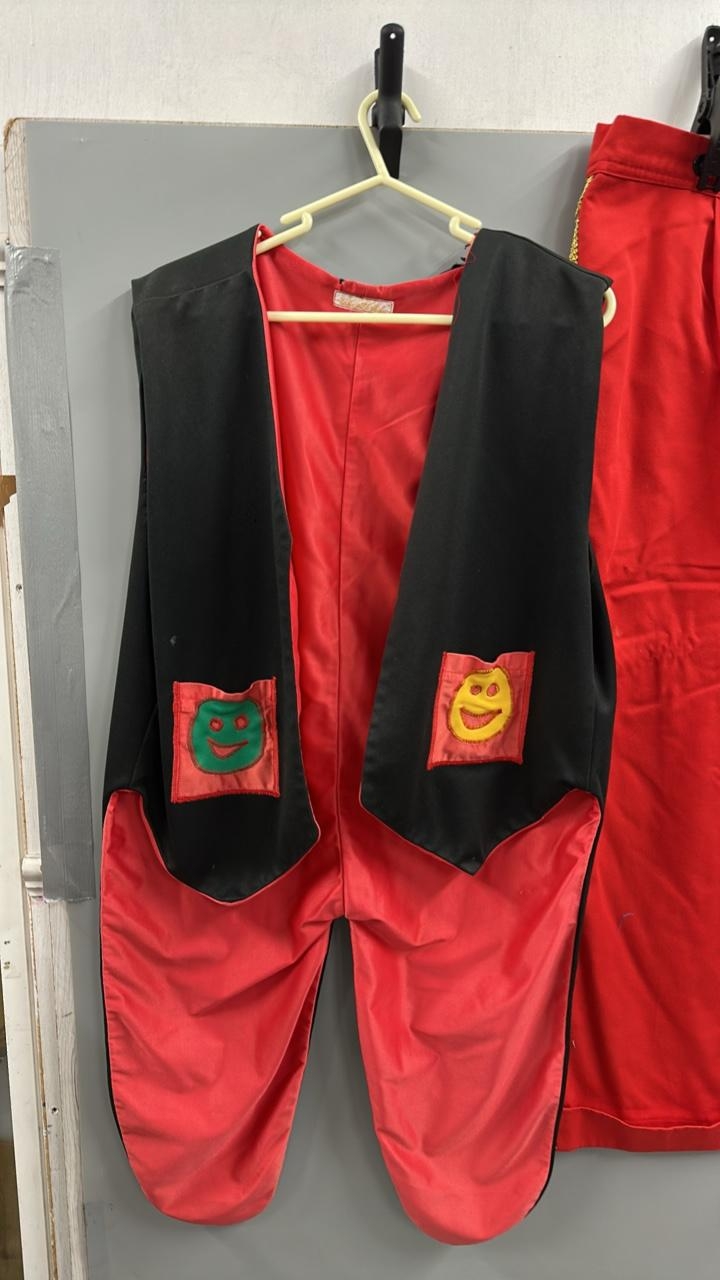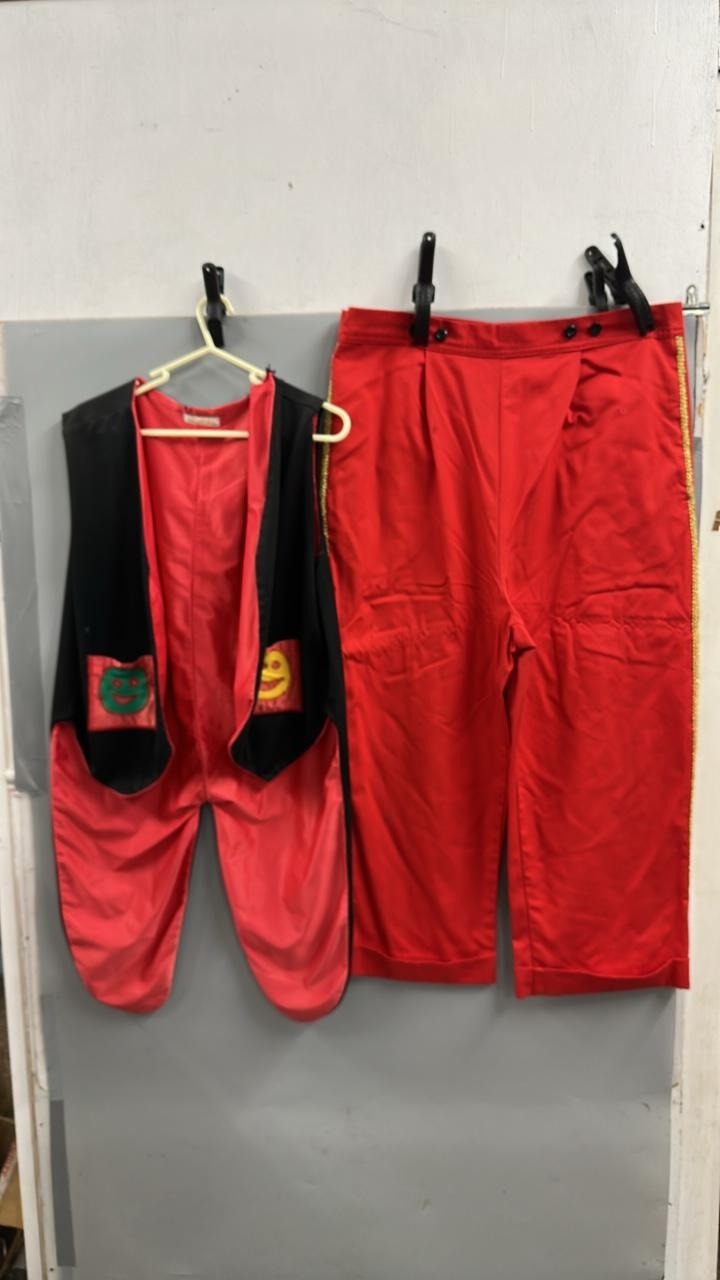 Stage worn clown costume waistcoat tails and trousers. /Rail...