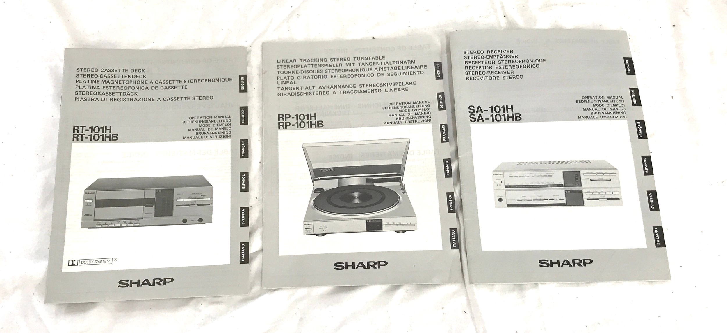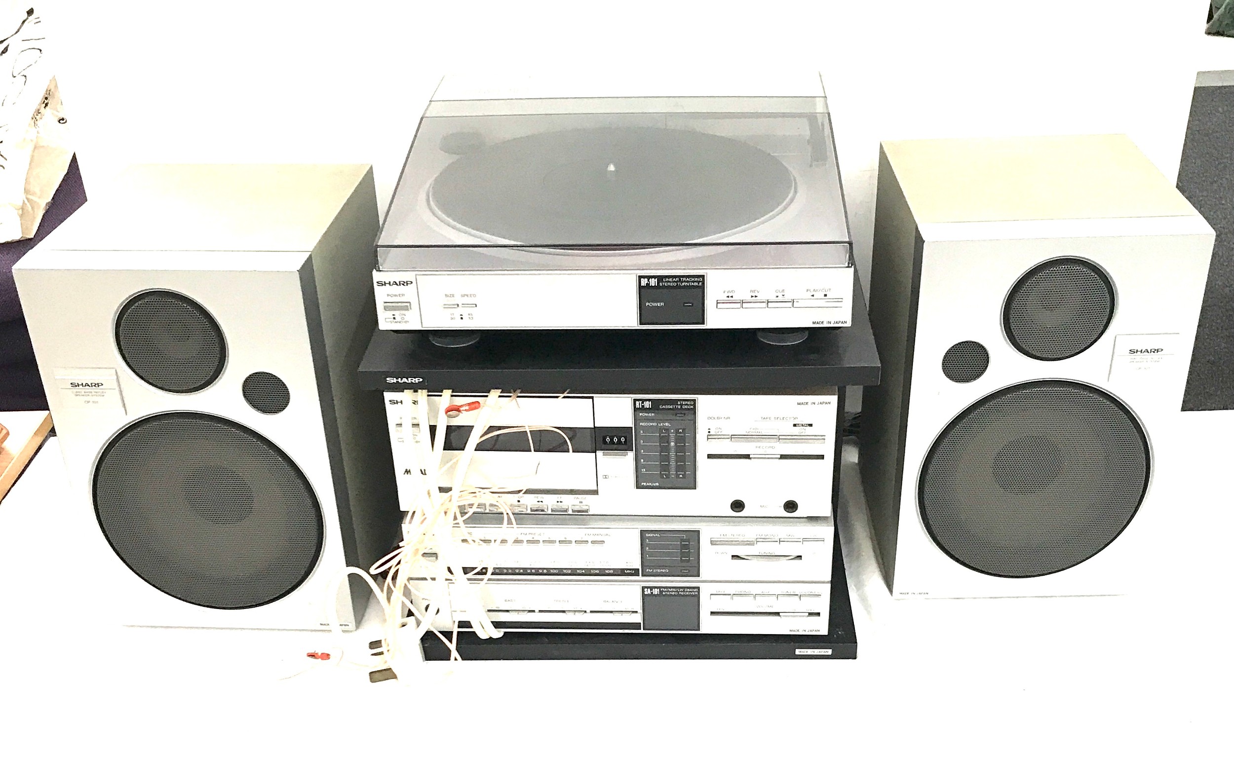 Sharp RP-1010HB turntable, Sharp RT-19101HB cassette deck and a Sharp SA0101HB stereo receiver and a pair of Sharp speakers - all untested