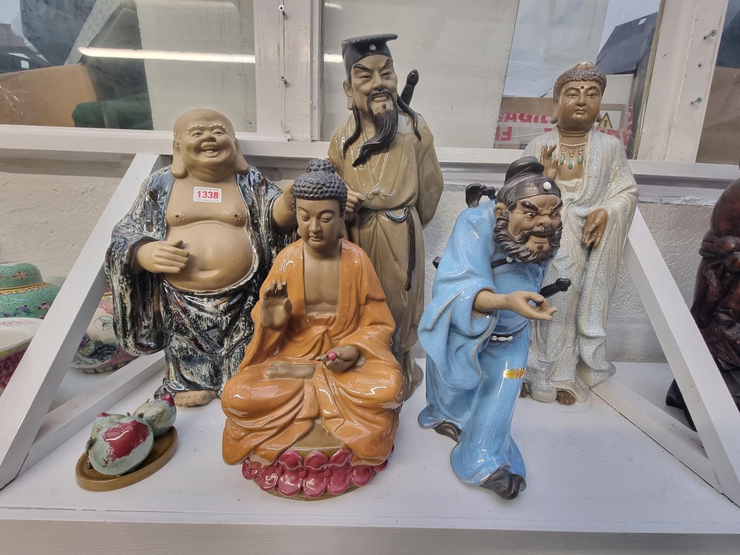 Five large Chinese Shiwan figures, largest 45cm high.
