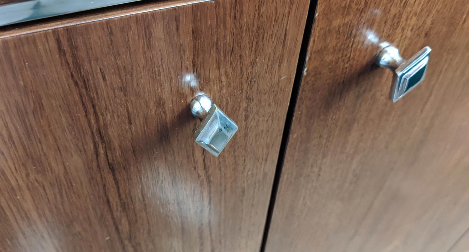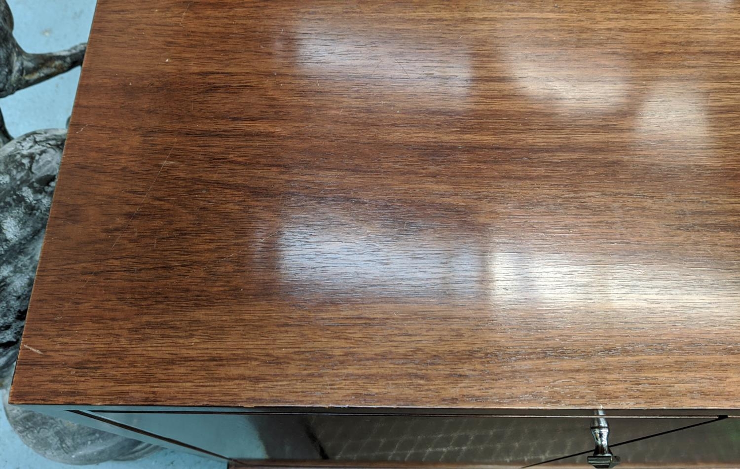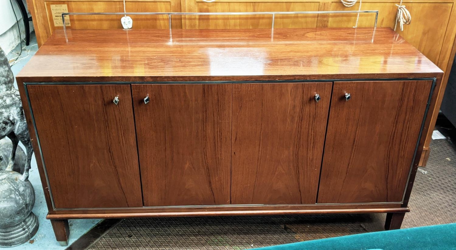 KATHARINE POOLEY SIDEBOARD, 150cm W x 90cm H x 50cm D, with metal back rail.