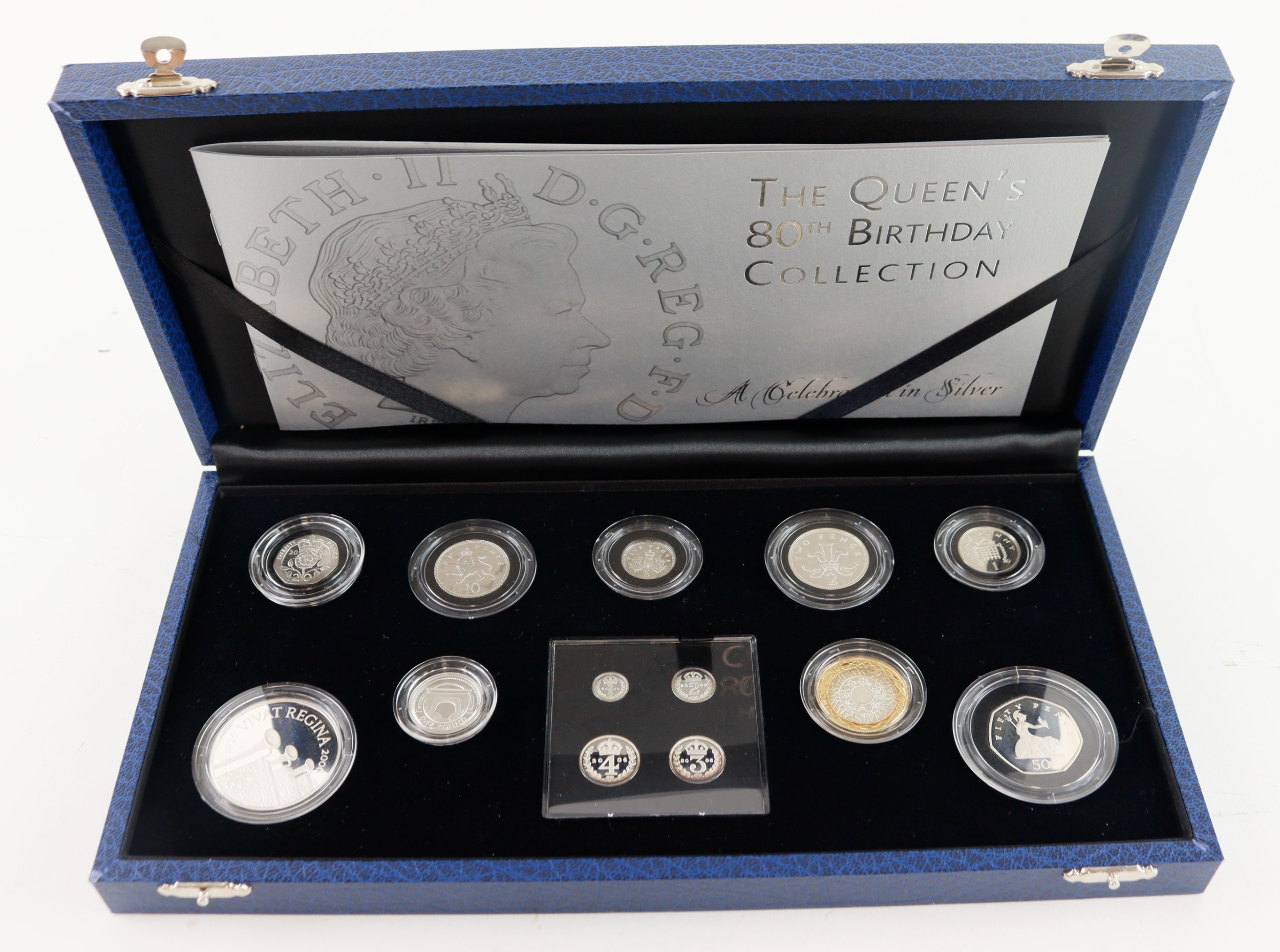 Proof Set 2006. The Queen's 80th Birthday Collection 'A Celebration in Silver' 2006 (13 coins) Crown to Penny including Maundy Set, aFDC (light toning) cased with cert.
