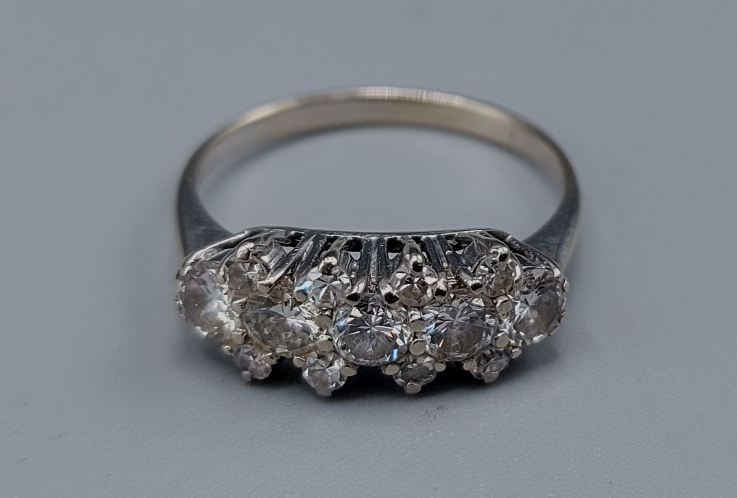 A white gold Diamond cluster ring, set with thirteen Diamonds within a pierced setting, ring size N, 2.7gms
