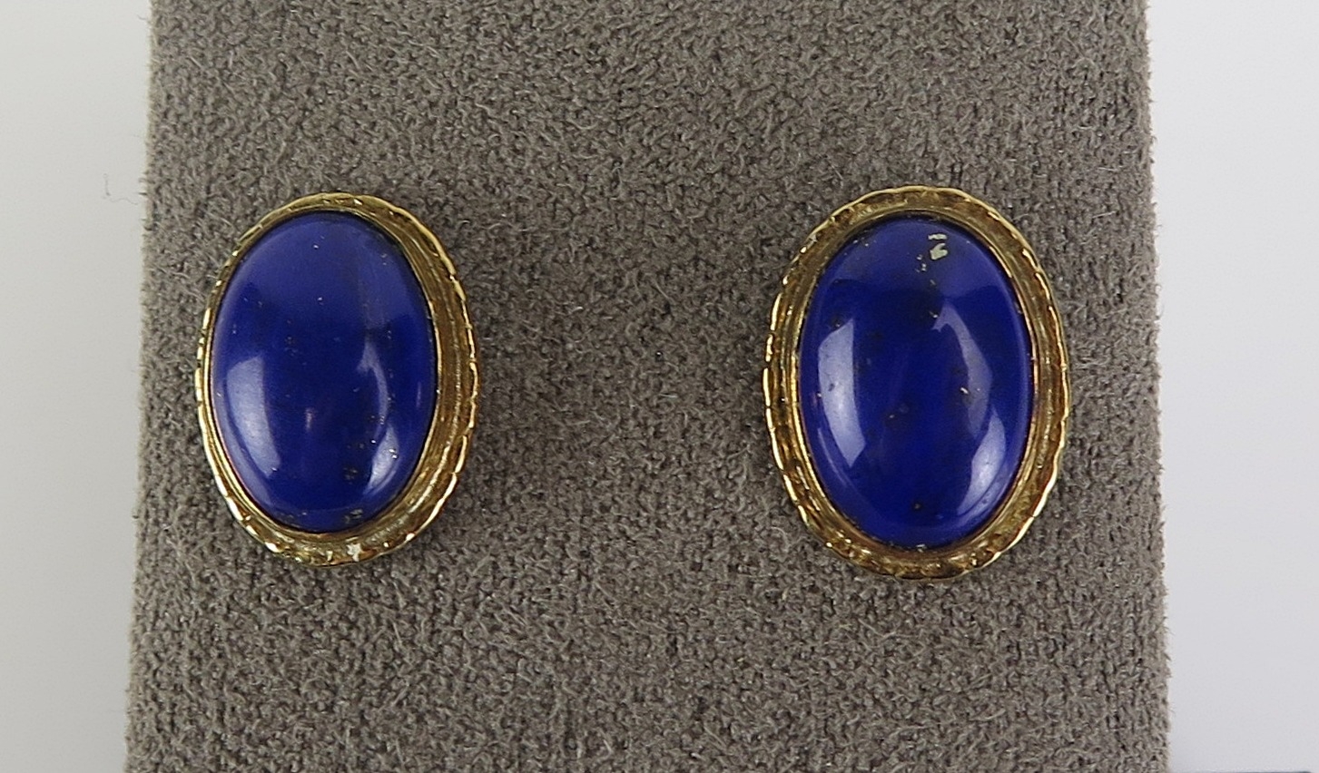 A pair of lapis lazuli stud earrings in a 9ct yellow gold setting, 16x13mm head, hallmarked, 4.7g
