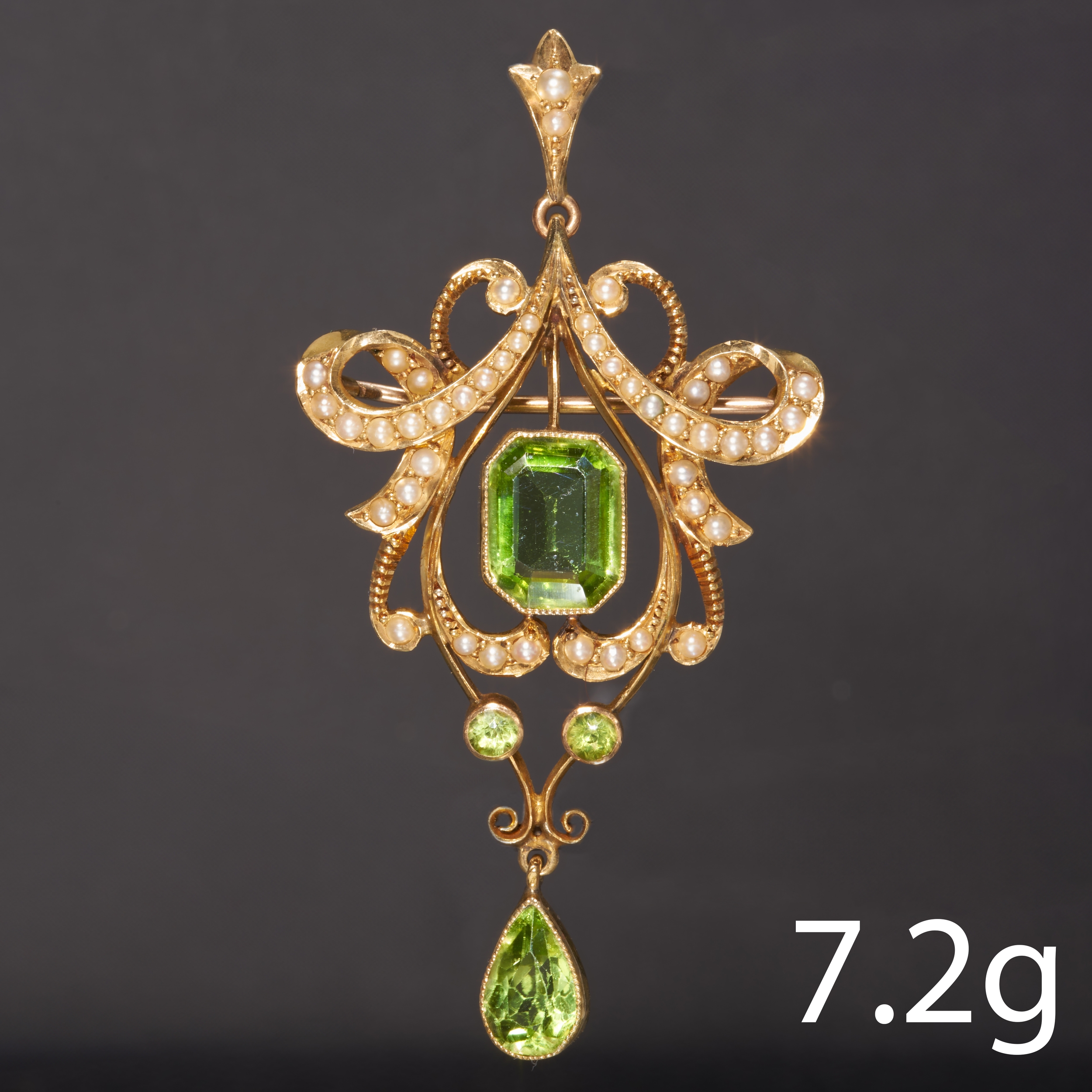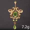 VICTORIAN PERIDOT AND PEARL PENDANT/BROOCH,