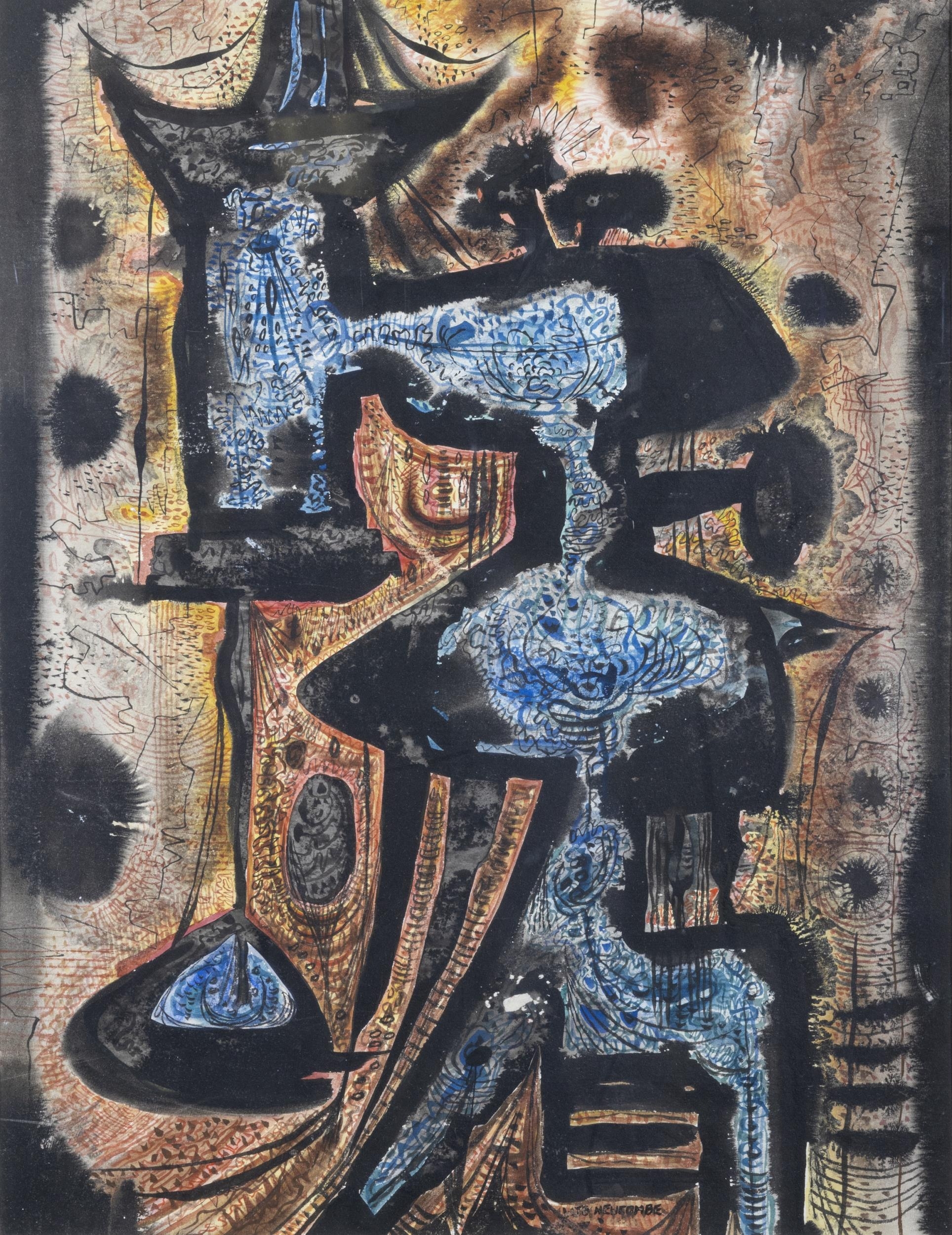 William John Bertram Newcombe (Canadian/British, 1907-1969) Ibiza (1956) Watercolour, 59 x 45cm Signed, inscribed with title and date verso