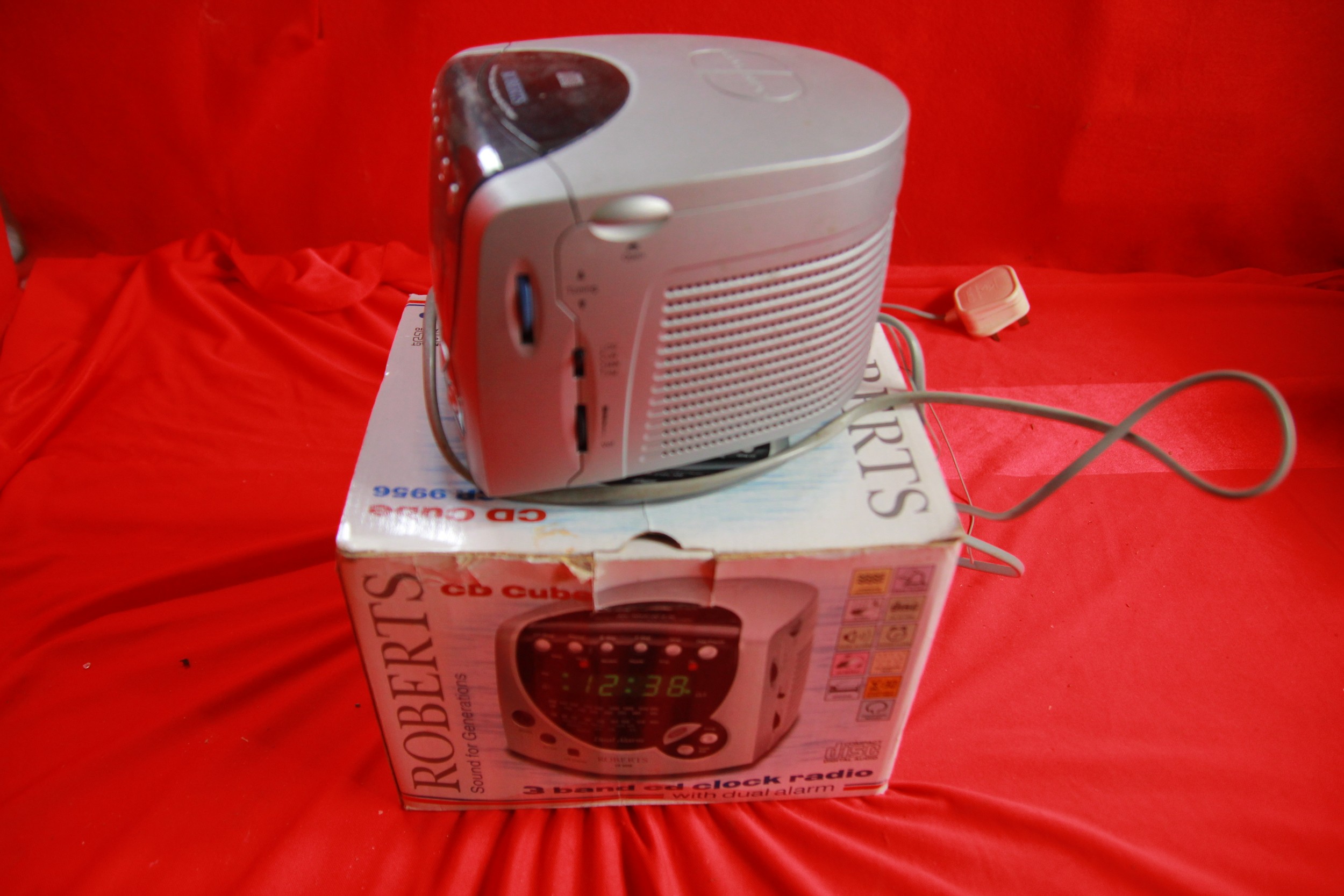 A Roberts CR9965 Dual Alarm CD Clock Radio with instructions, in working order