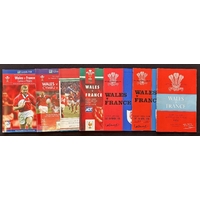 1952-2015 Ireland v Wales Rugby Programmes (8): 1952, 54, 64, 66(p/h), 76 (Grand Slam), 88, 98 and 2015. Gen G/VG