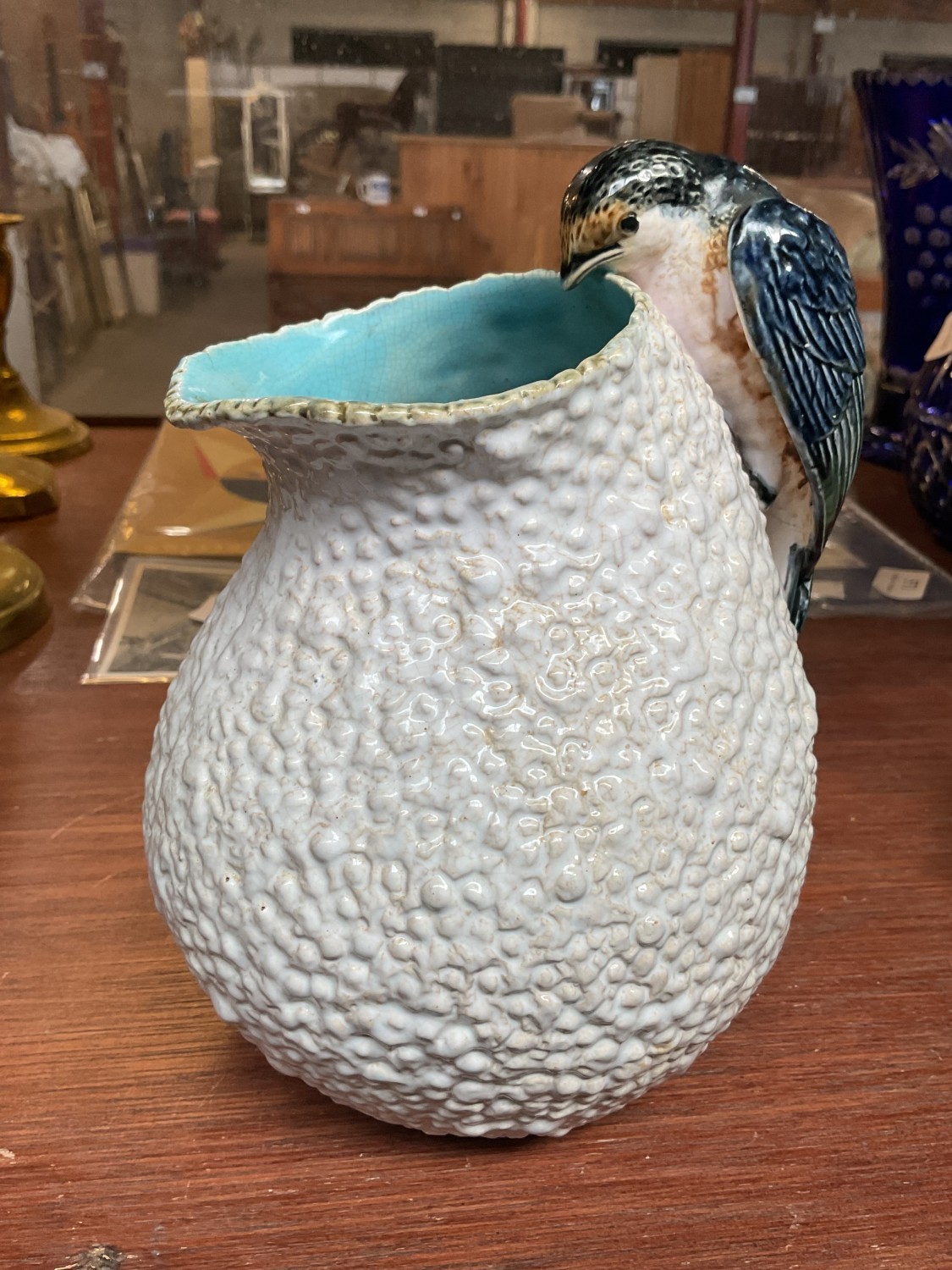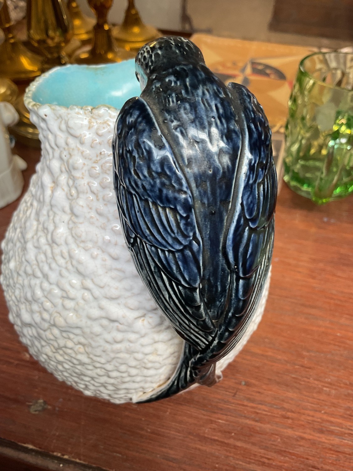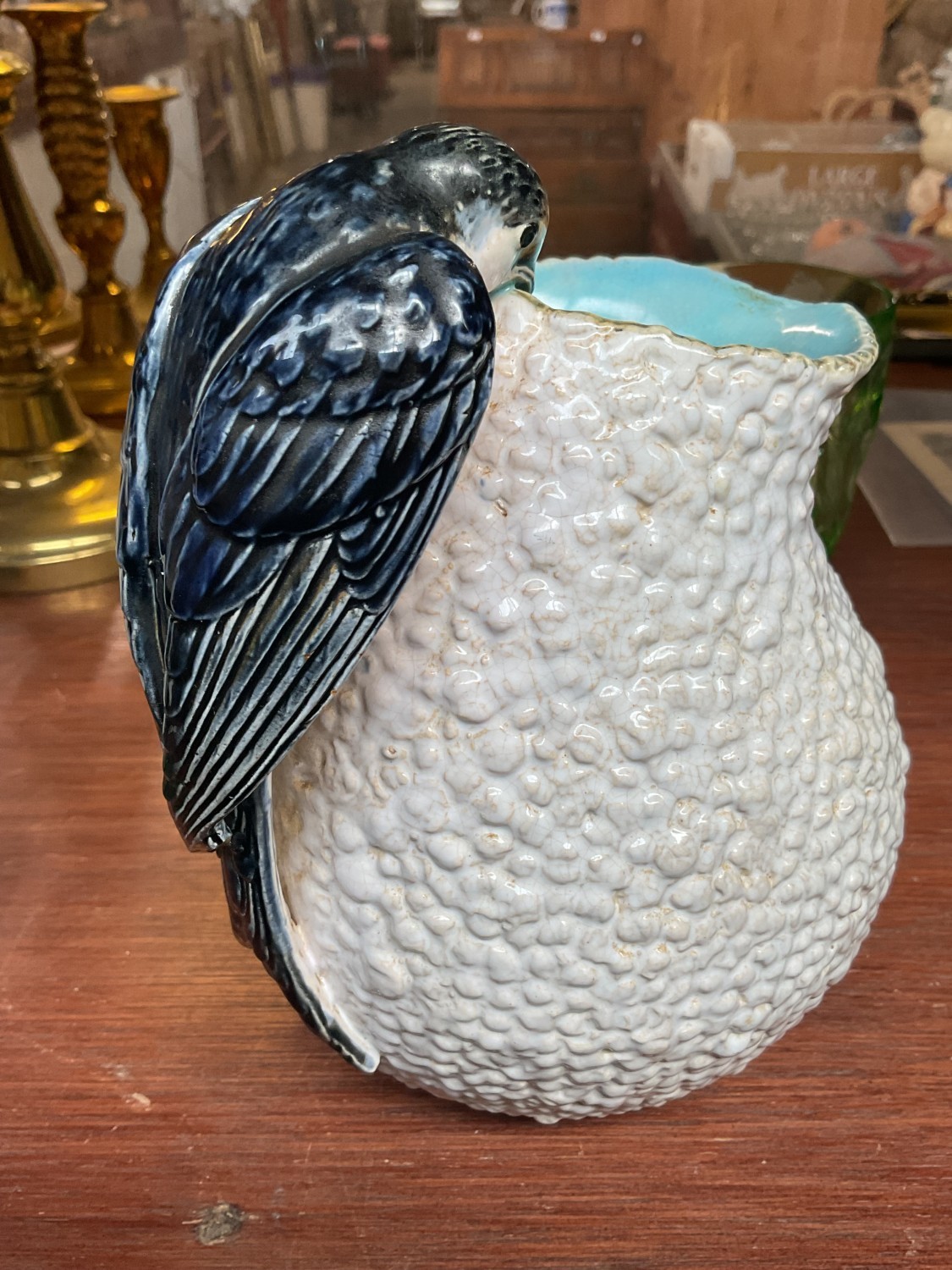 George Jones majolica jug modeled as a swallow or swift building a nest AF (minor break to tail)