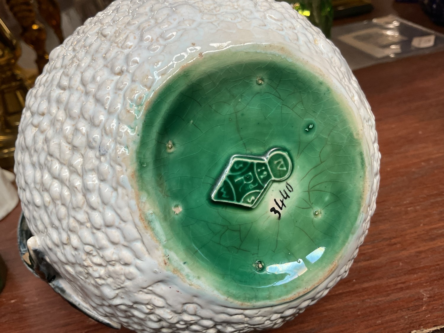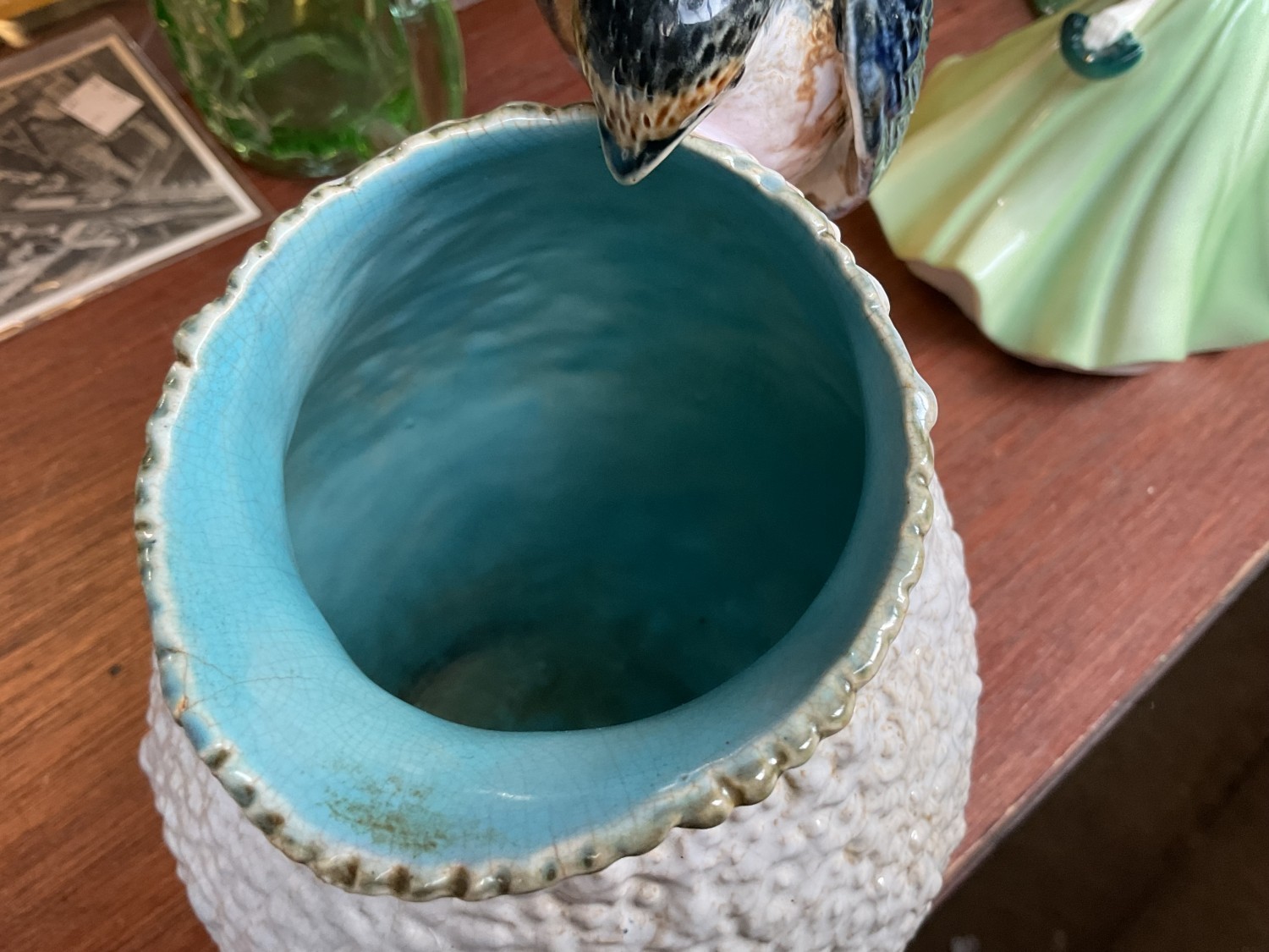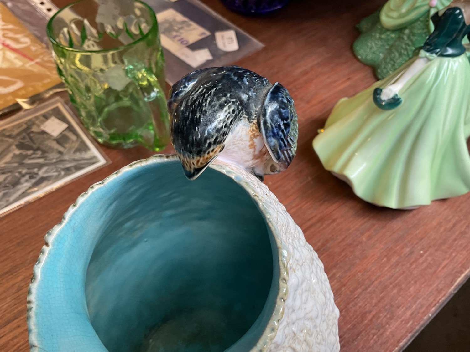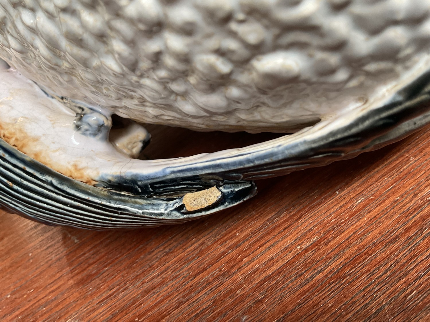 George Jones majolica jug modeled as a swallow or swift building a nest AF (minor break to tail)
