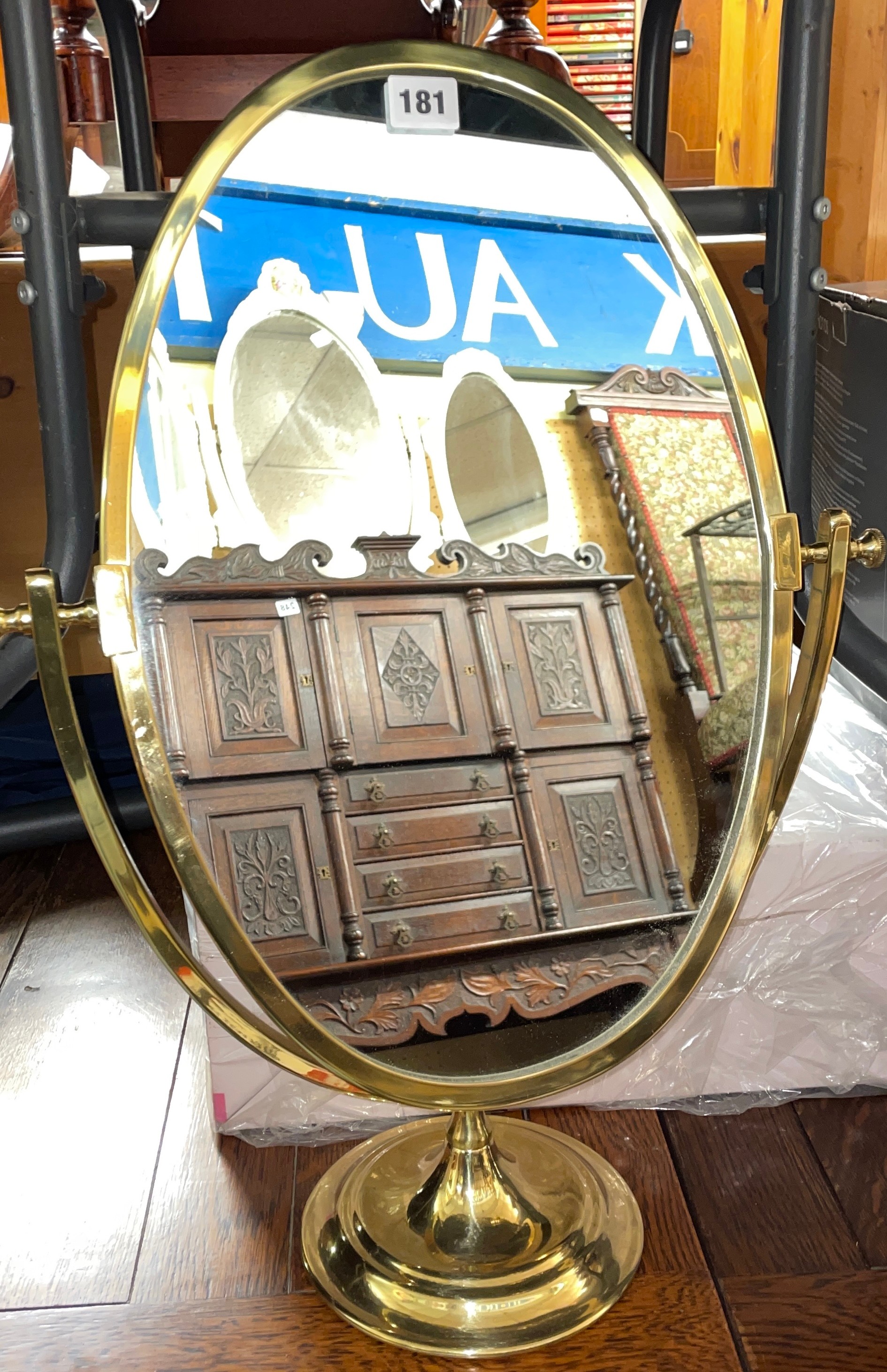 BRASS PEDESTAL OVAL TOILET MIRROR