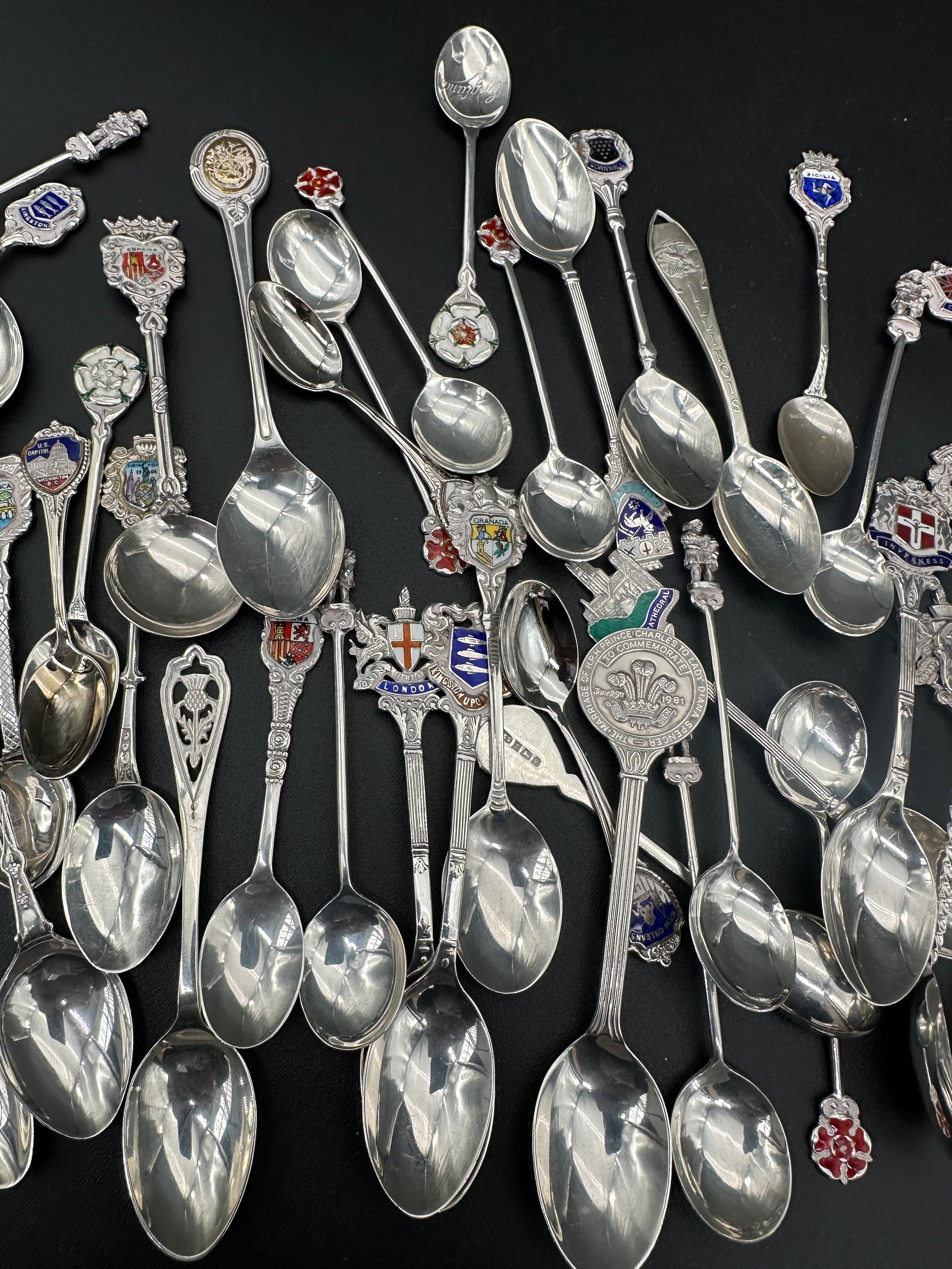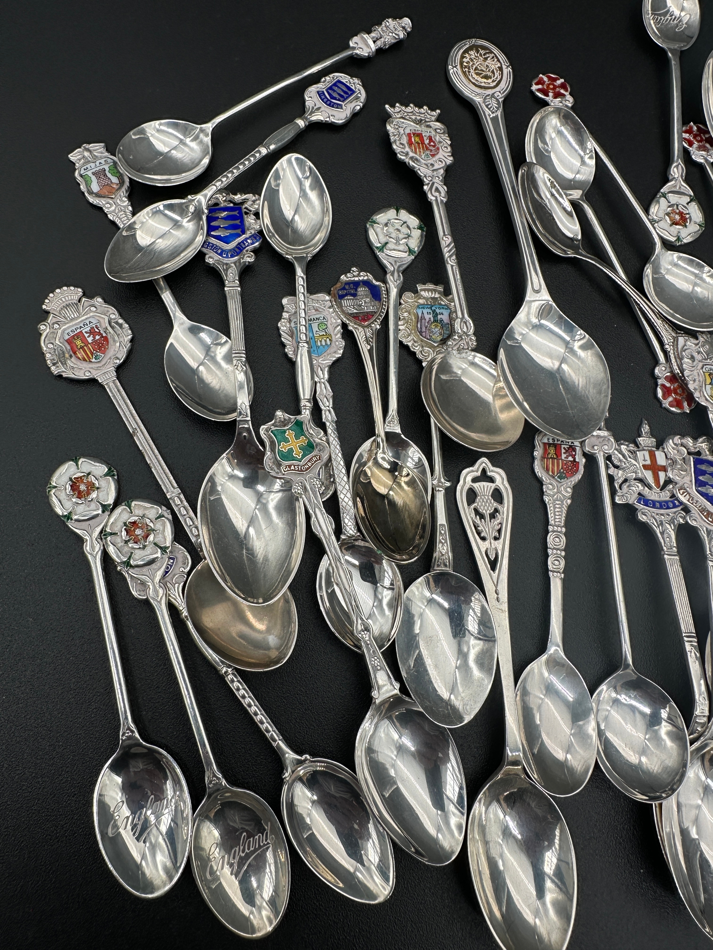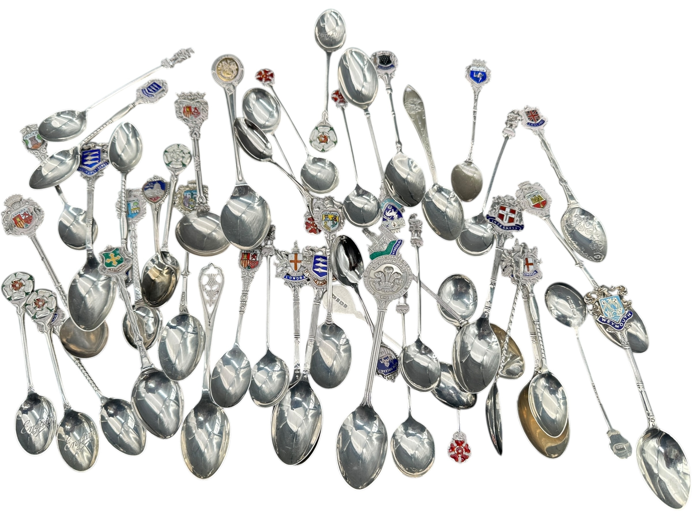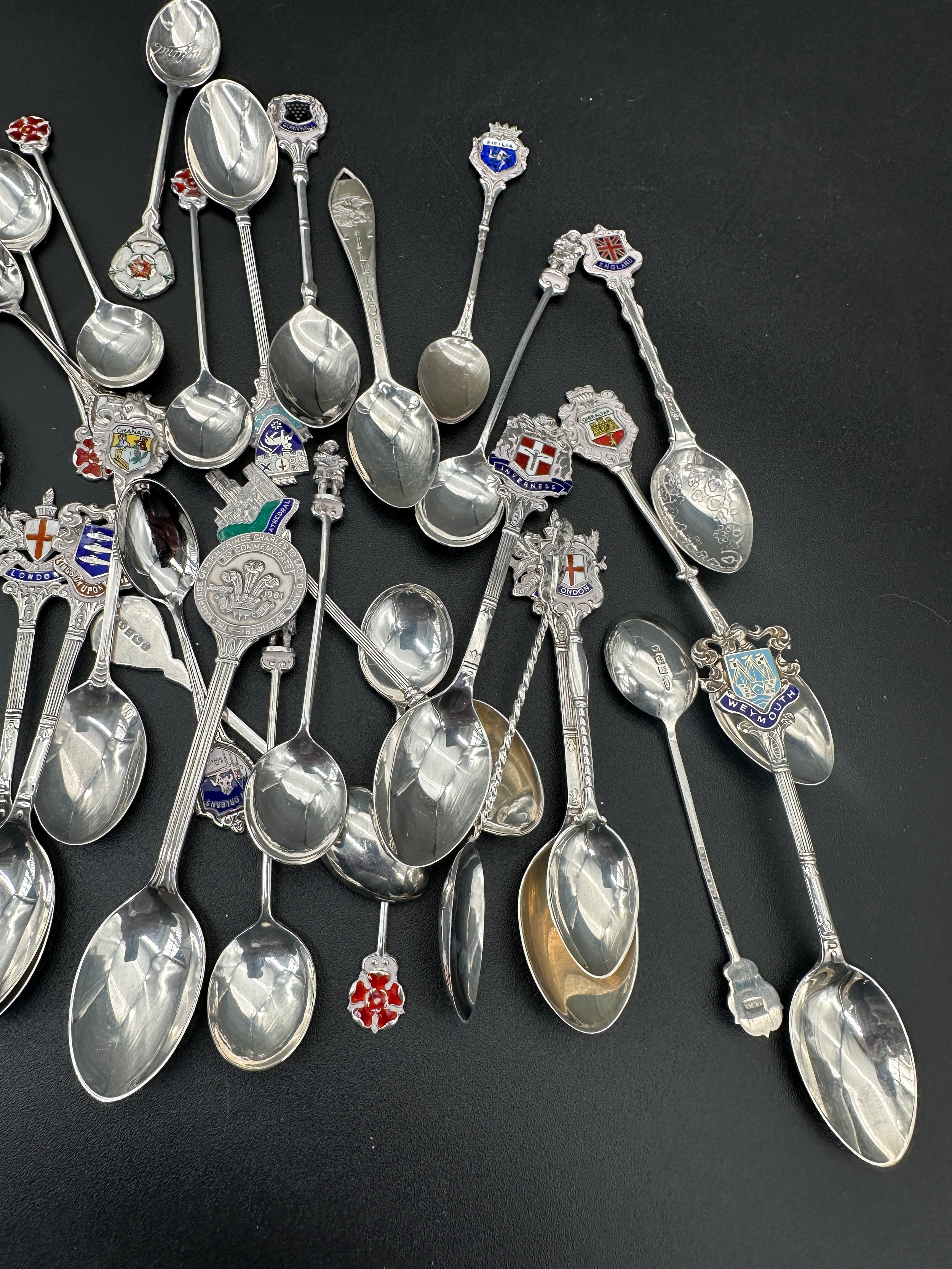 Hallmarked and 925 Silver Souviner Spoons. 550g