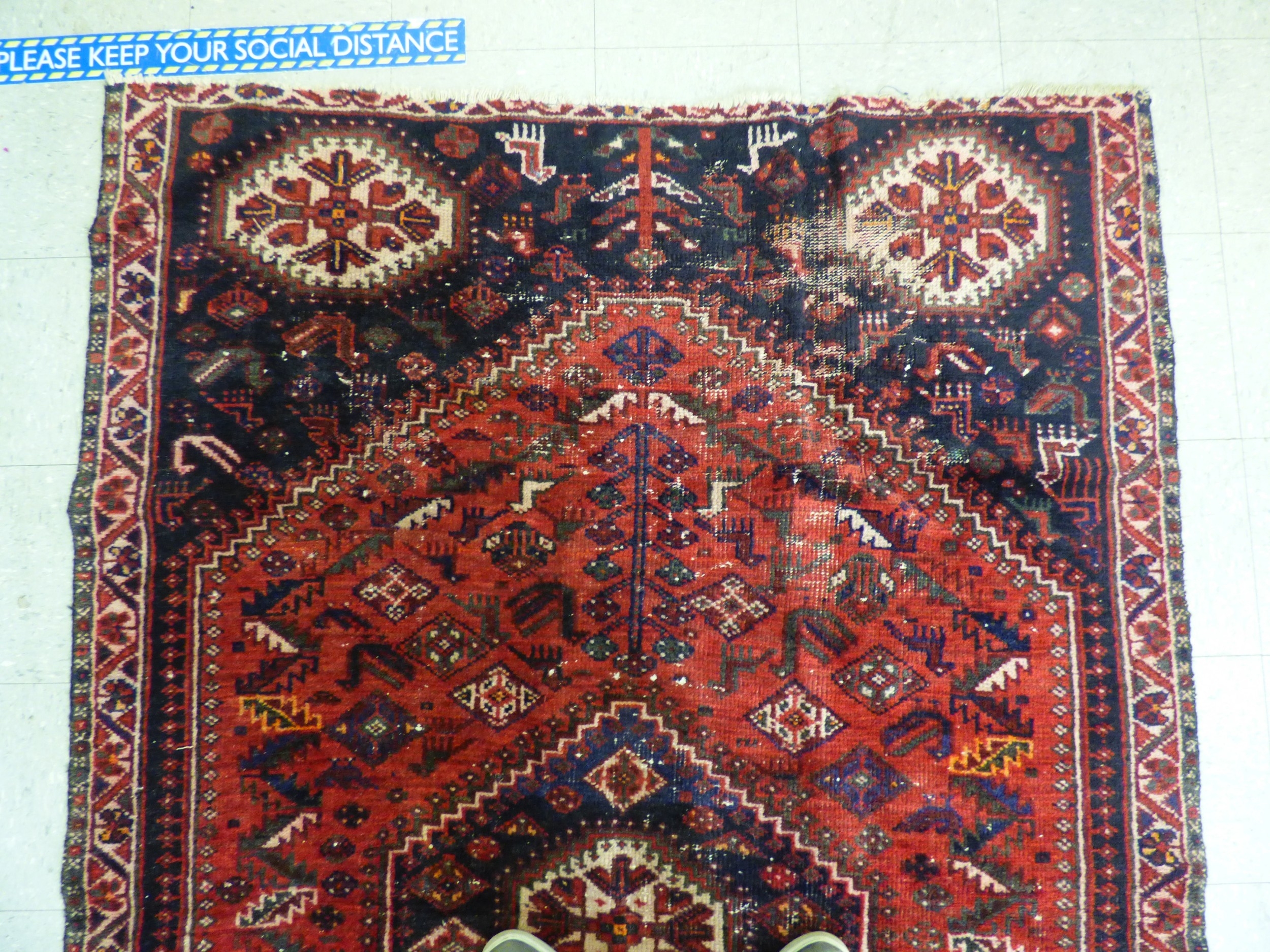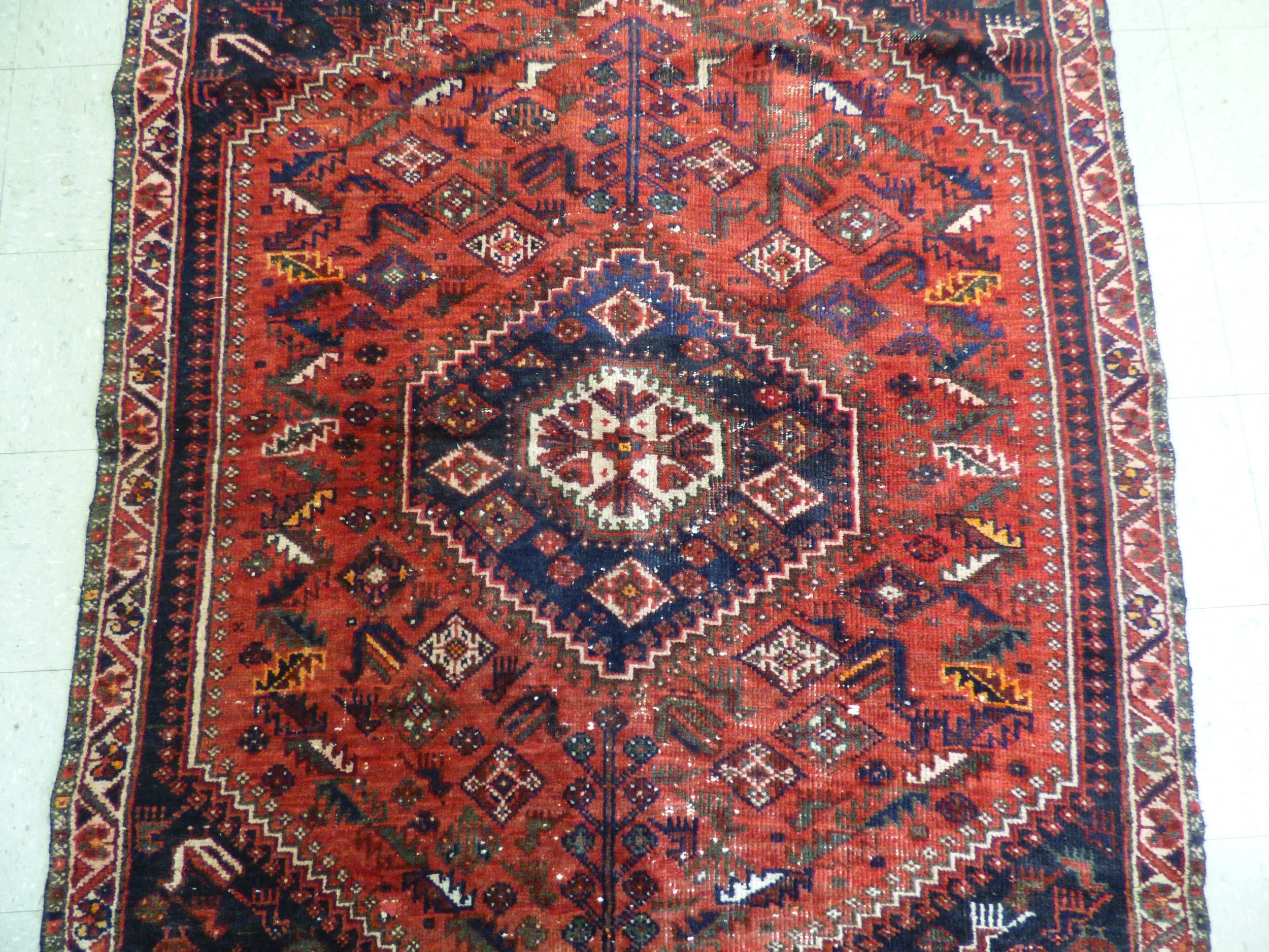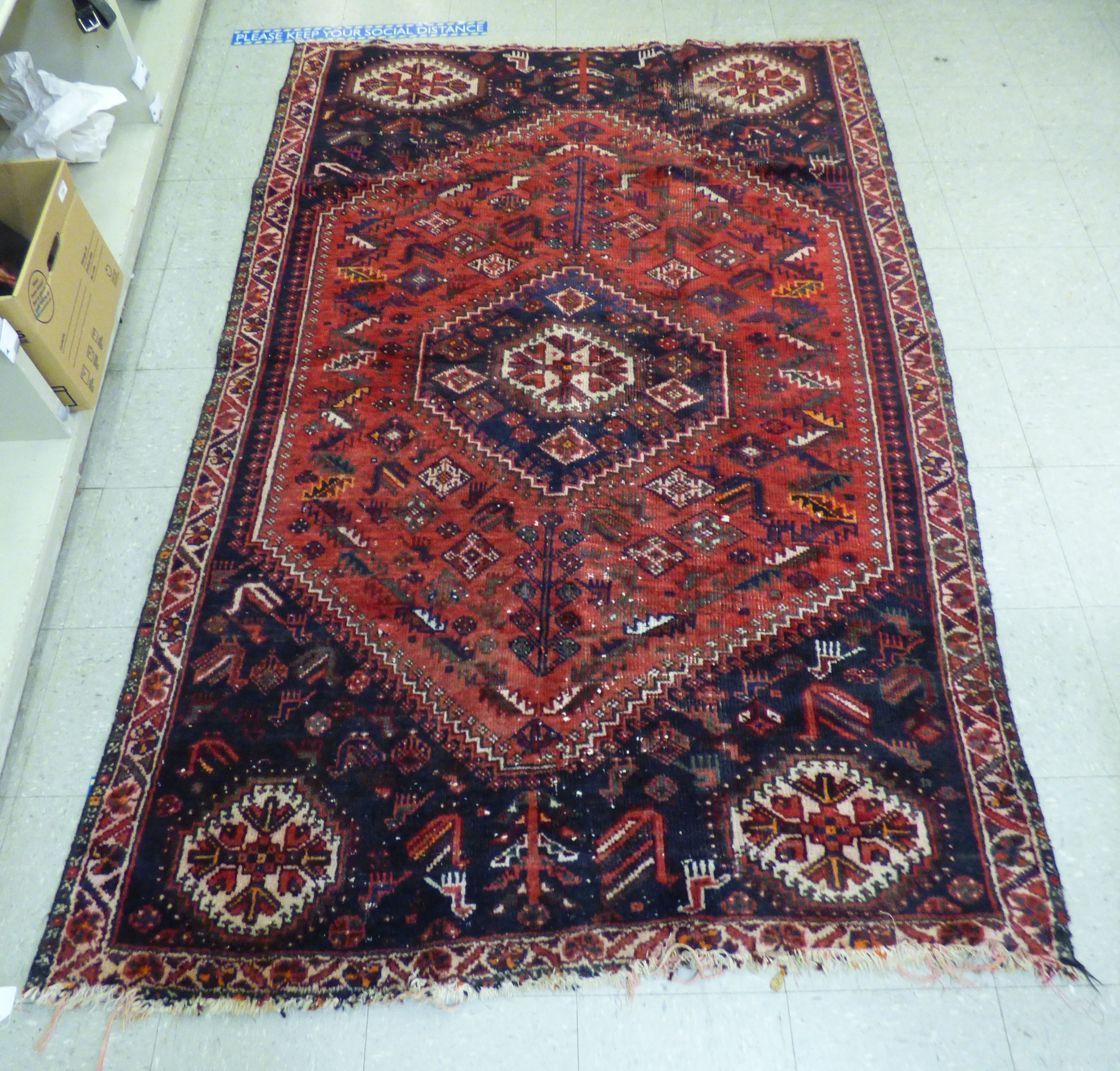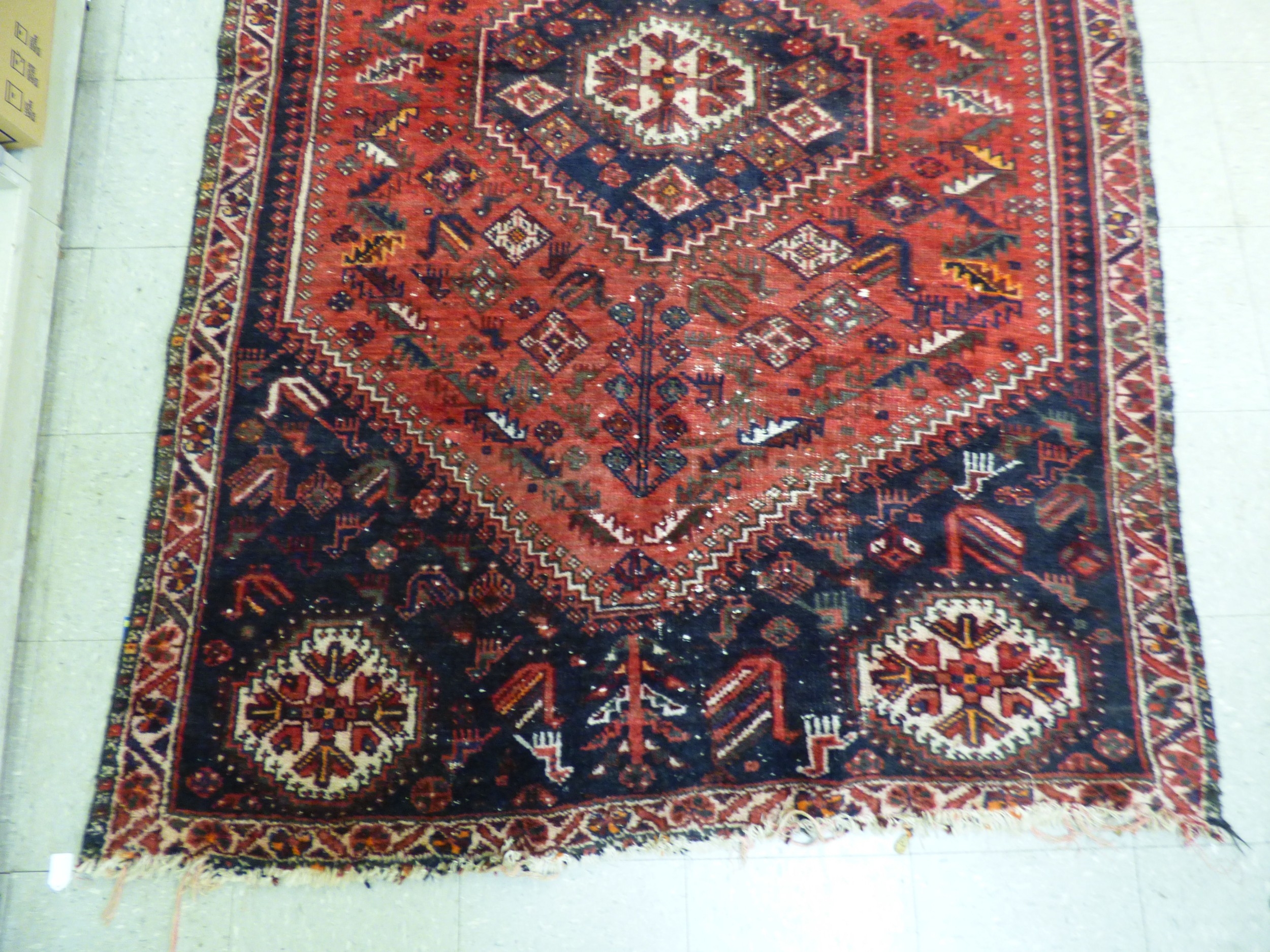 A Persian rug, decorated with repeating stylised designs, on...