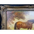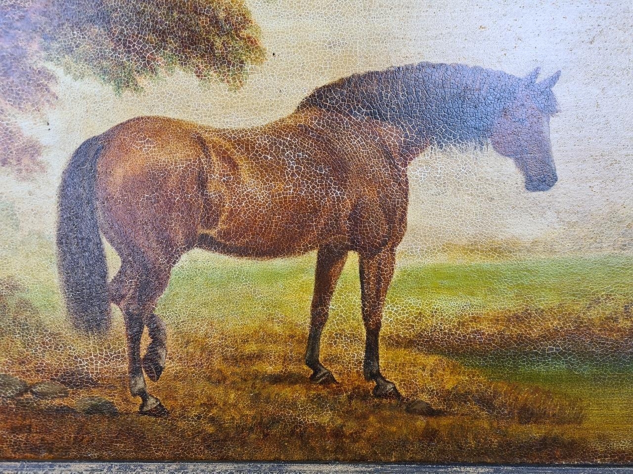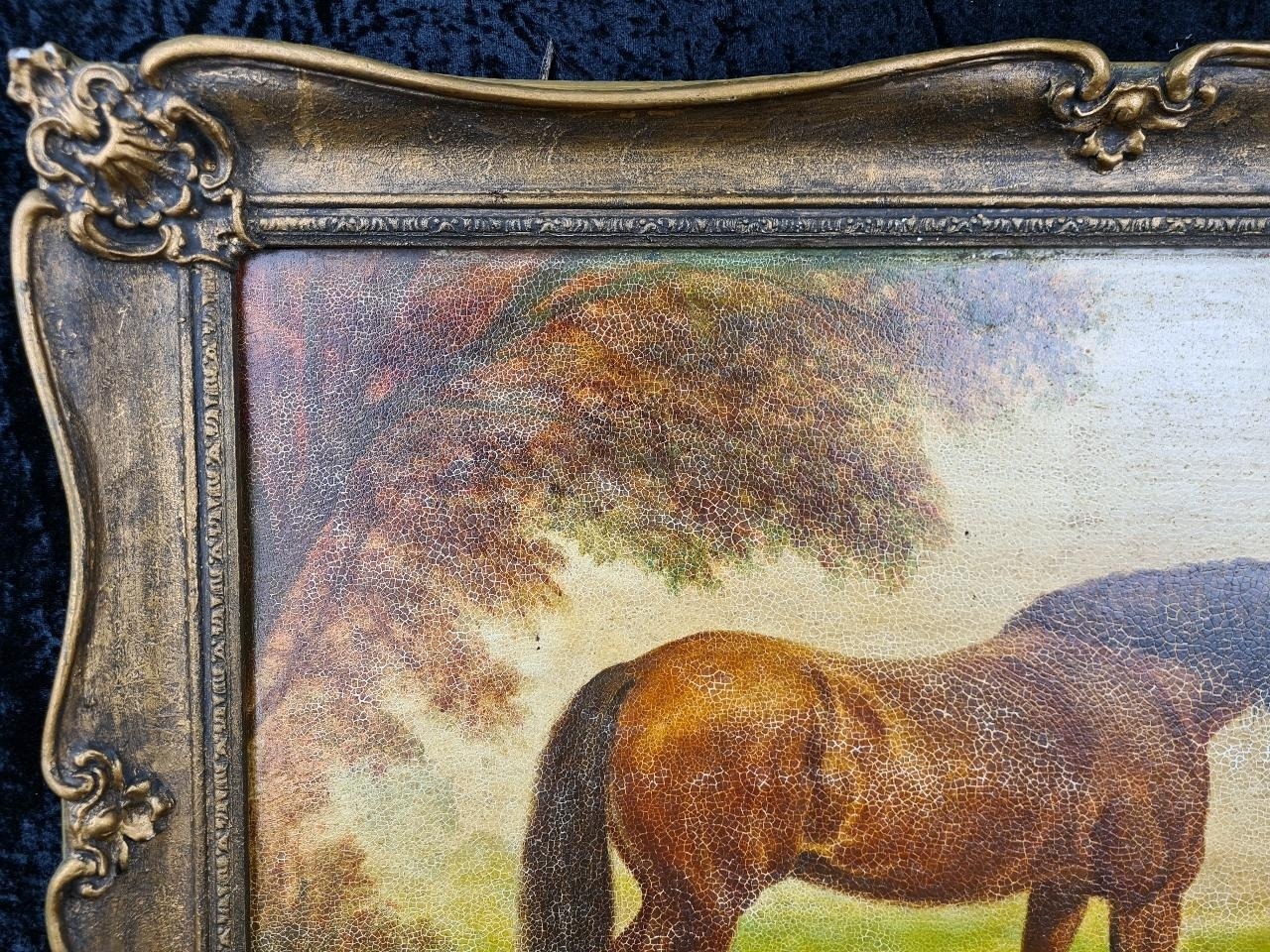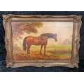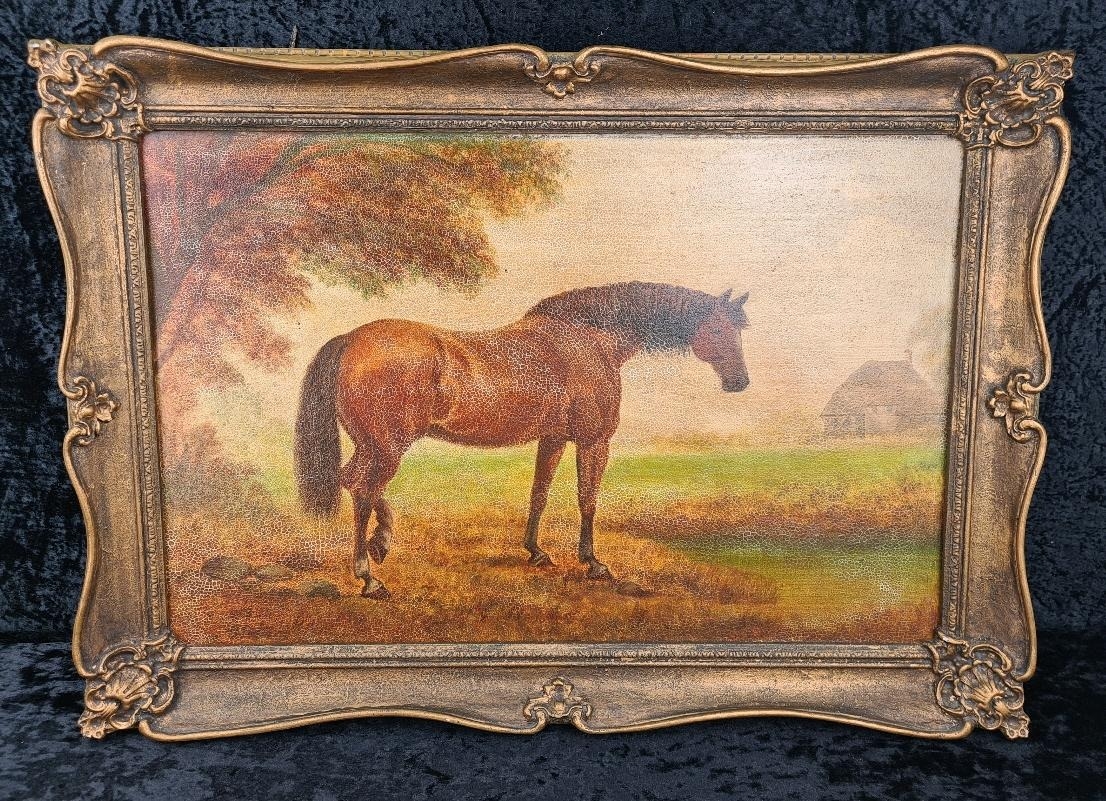 Large antique painting of a horse in a gilt frame, approx H50cm x W70cm