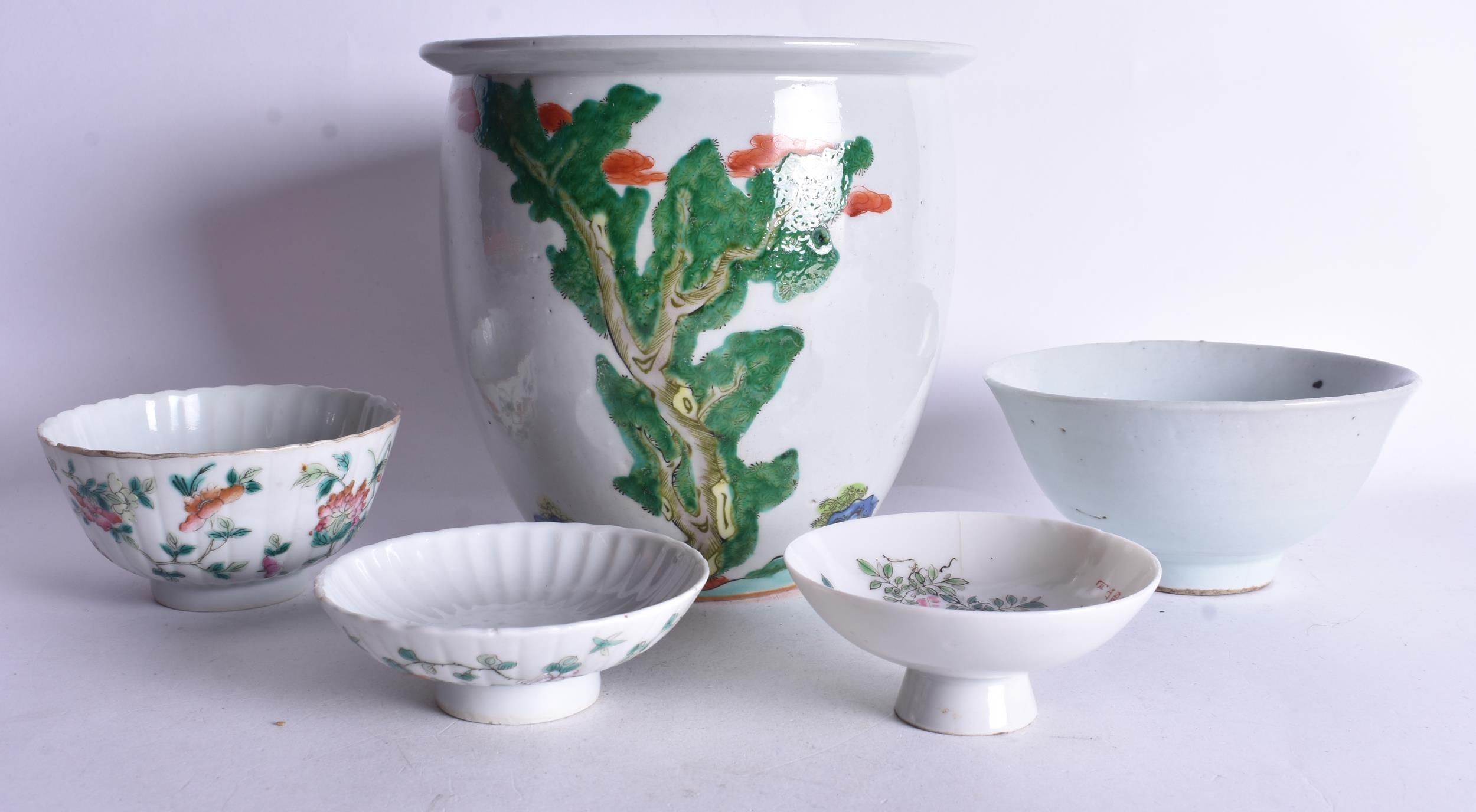 ASSORTED CHINESE PORCELAIN including a jardiniere. Largest 16 cm wide. (5)