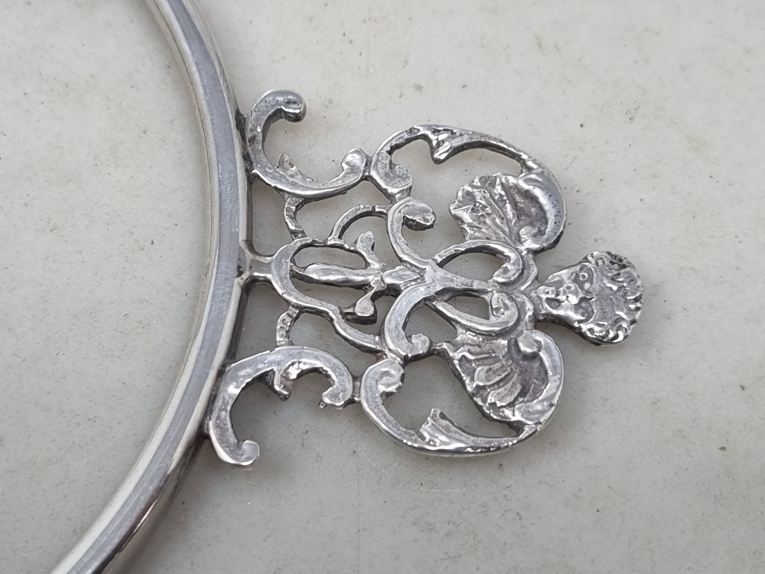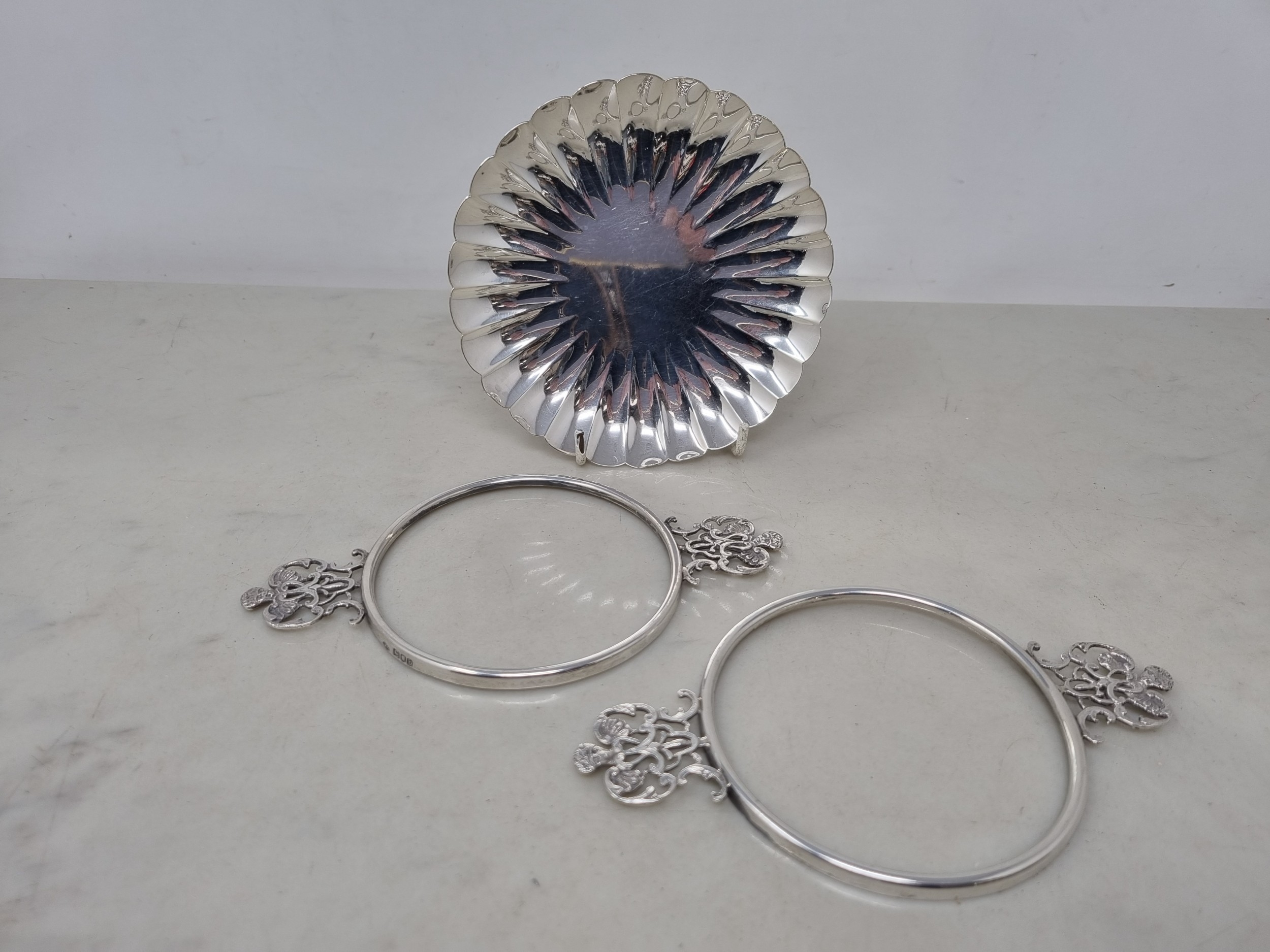 Two Victorian silver Porringer Mounts with pierced cherub handles, London 1897, and a sterling silver circular Dish, 155gms