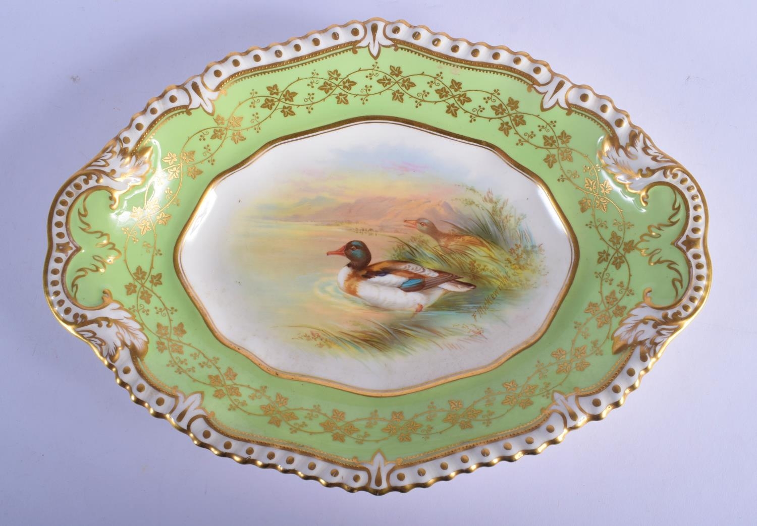 Late 19th c. Aynsley oval dish painted by F. Micklewright each signed, with a Shieldrake named verso. 30cm x 22cm