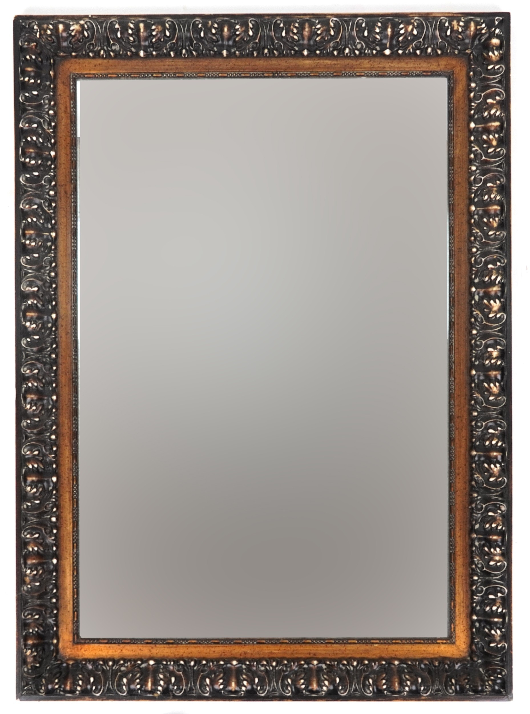 A late 20th century rectangular mirror with scrolling moulded frame, 110cm x 80cm.