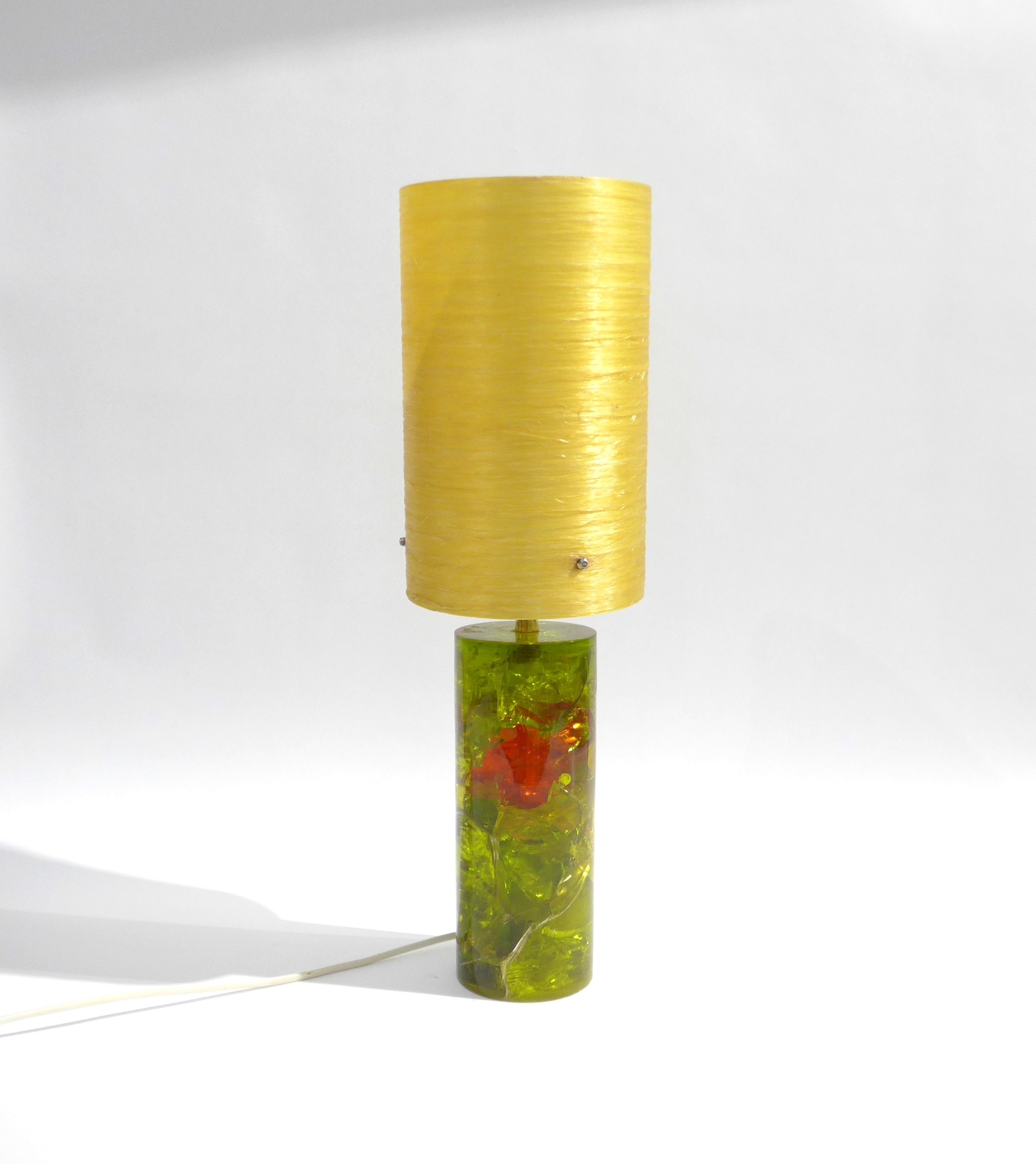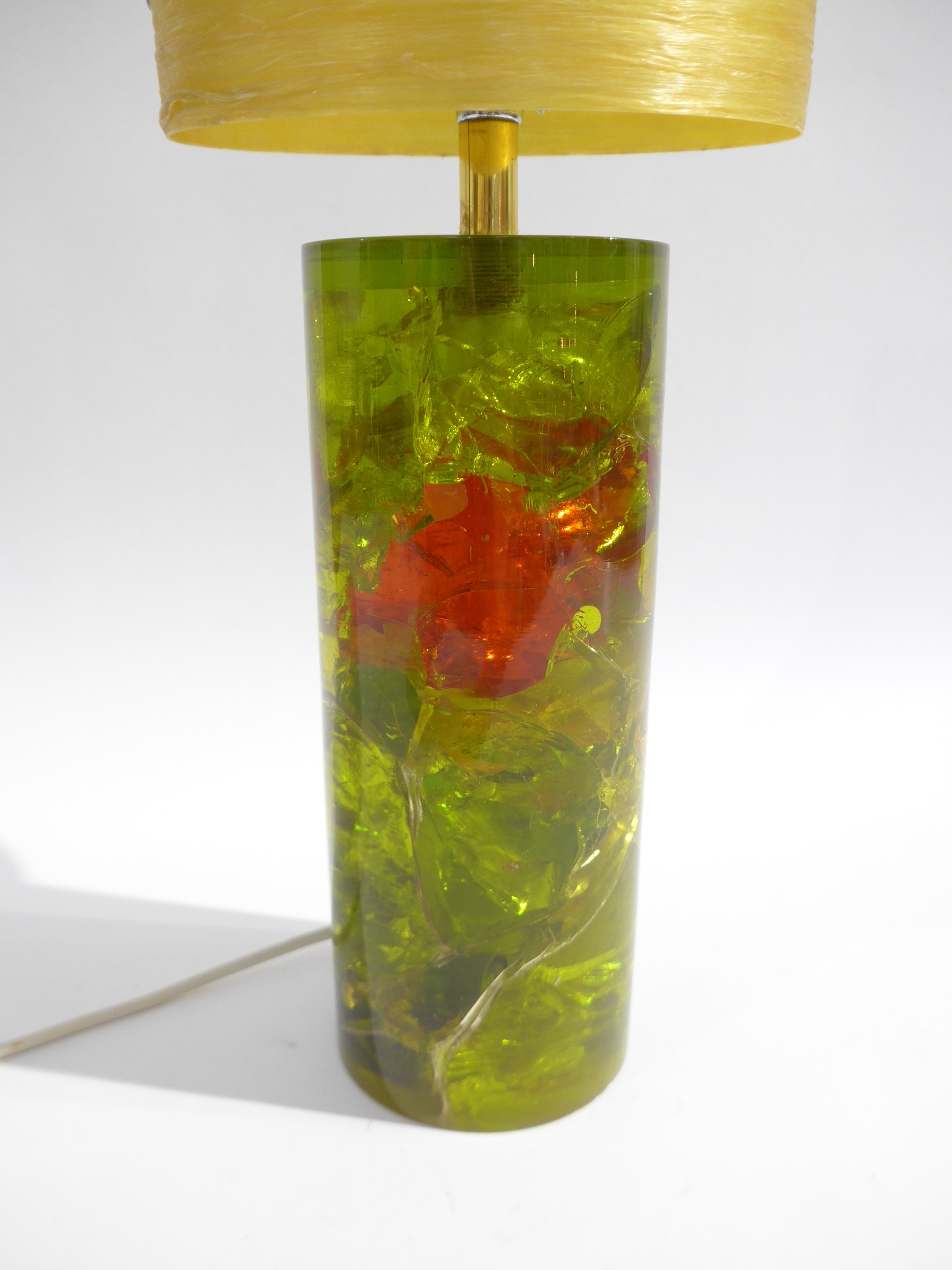 A green Shatterline lamp base with spun fibreglass shade, overall height 50cm