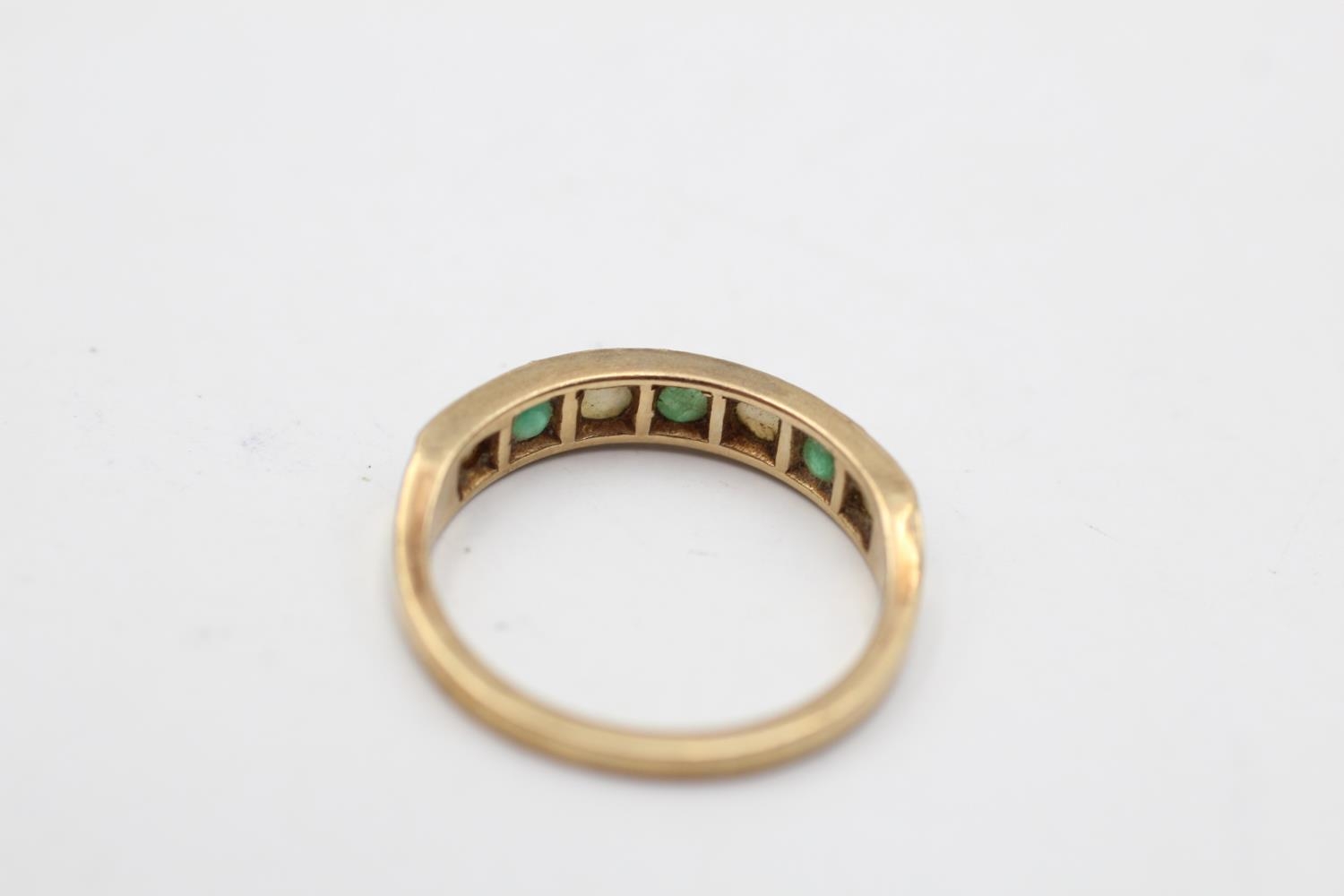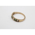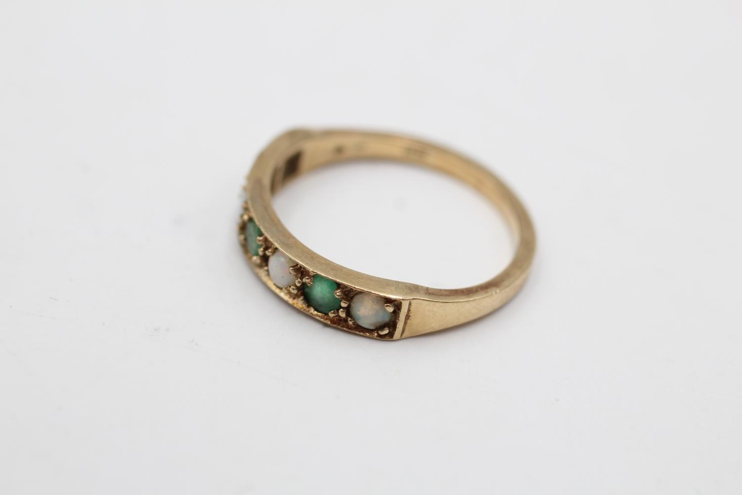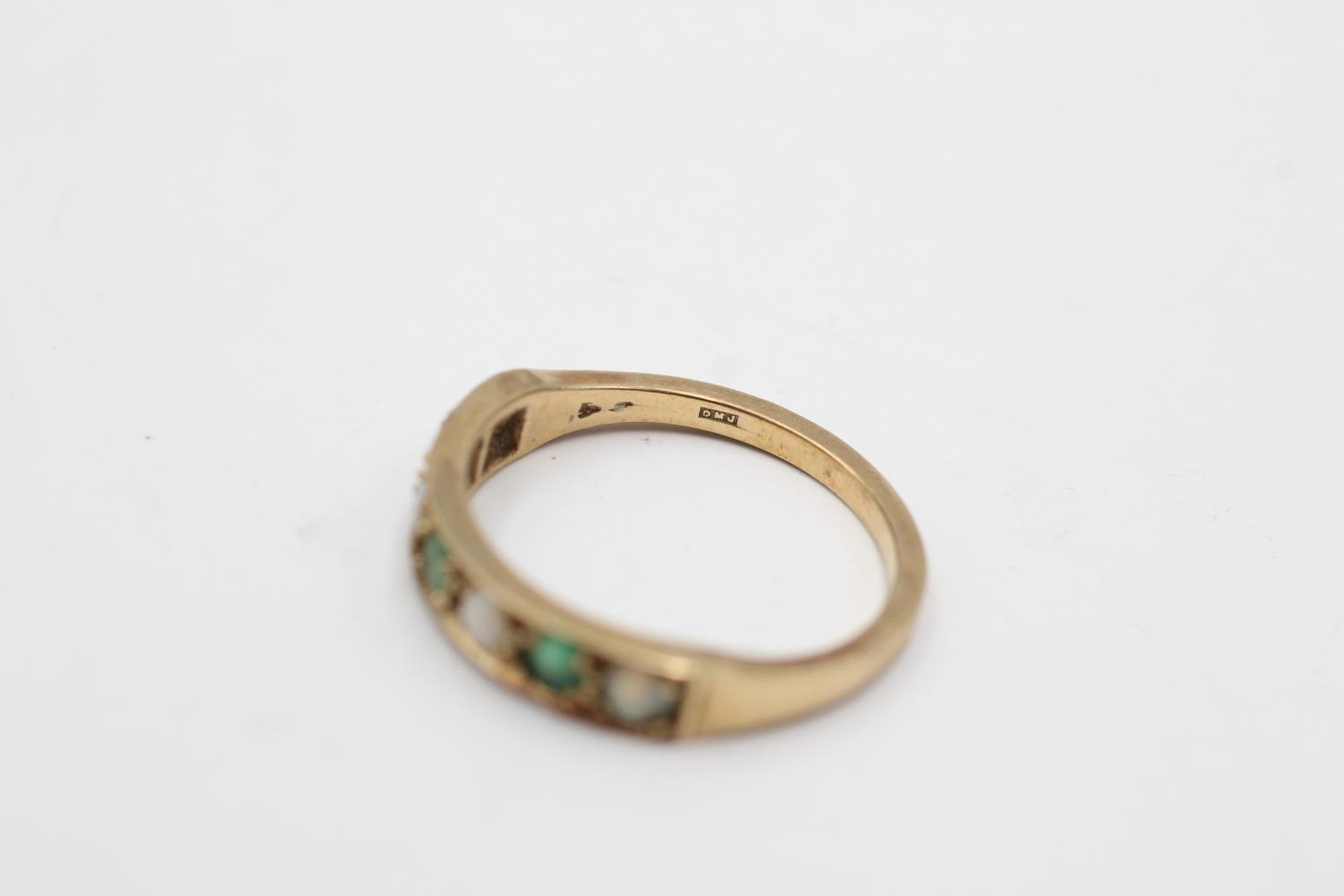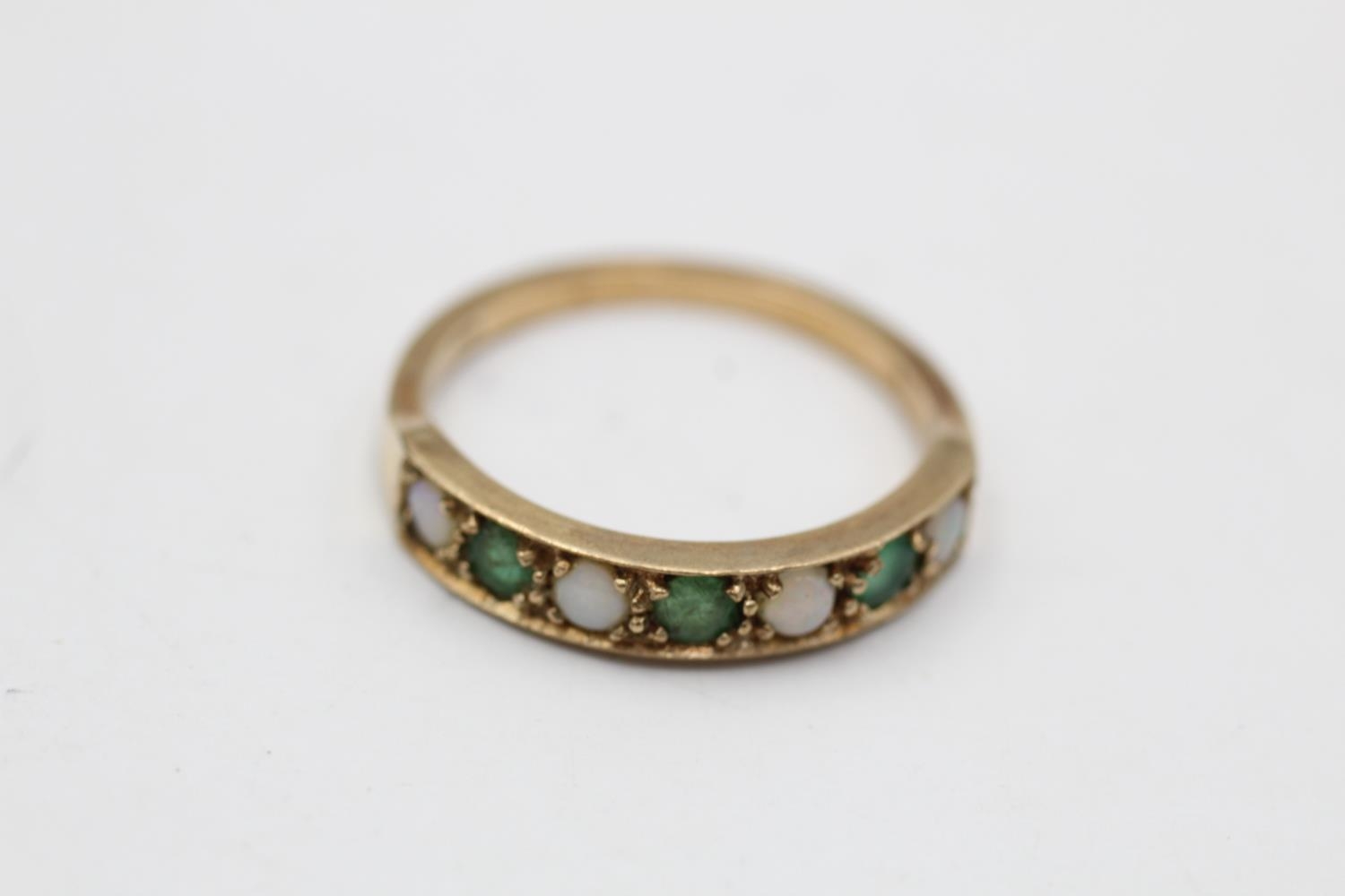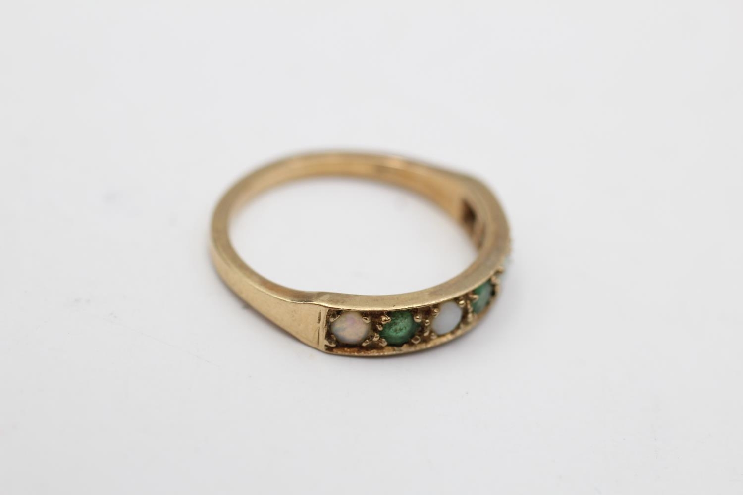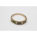 9ct gold vintage emerald & opal seven stone gypsy setting ring (2.3g) Size P