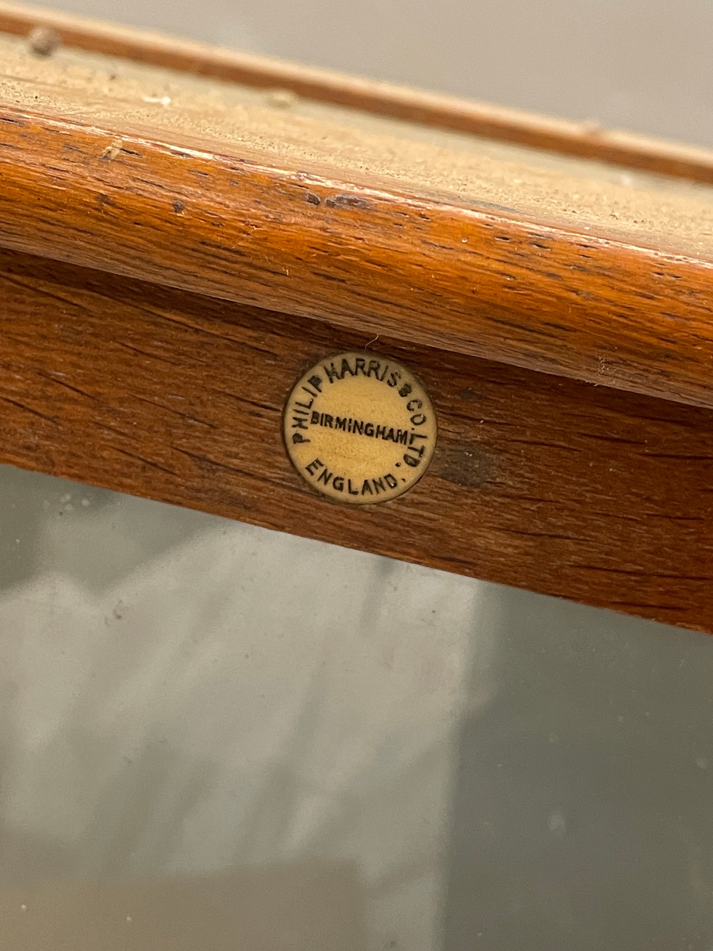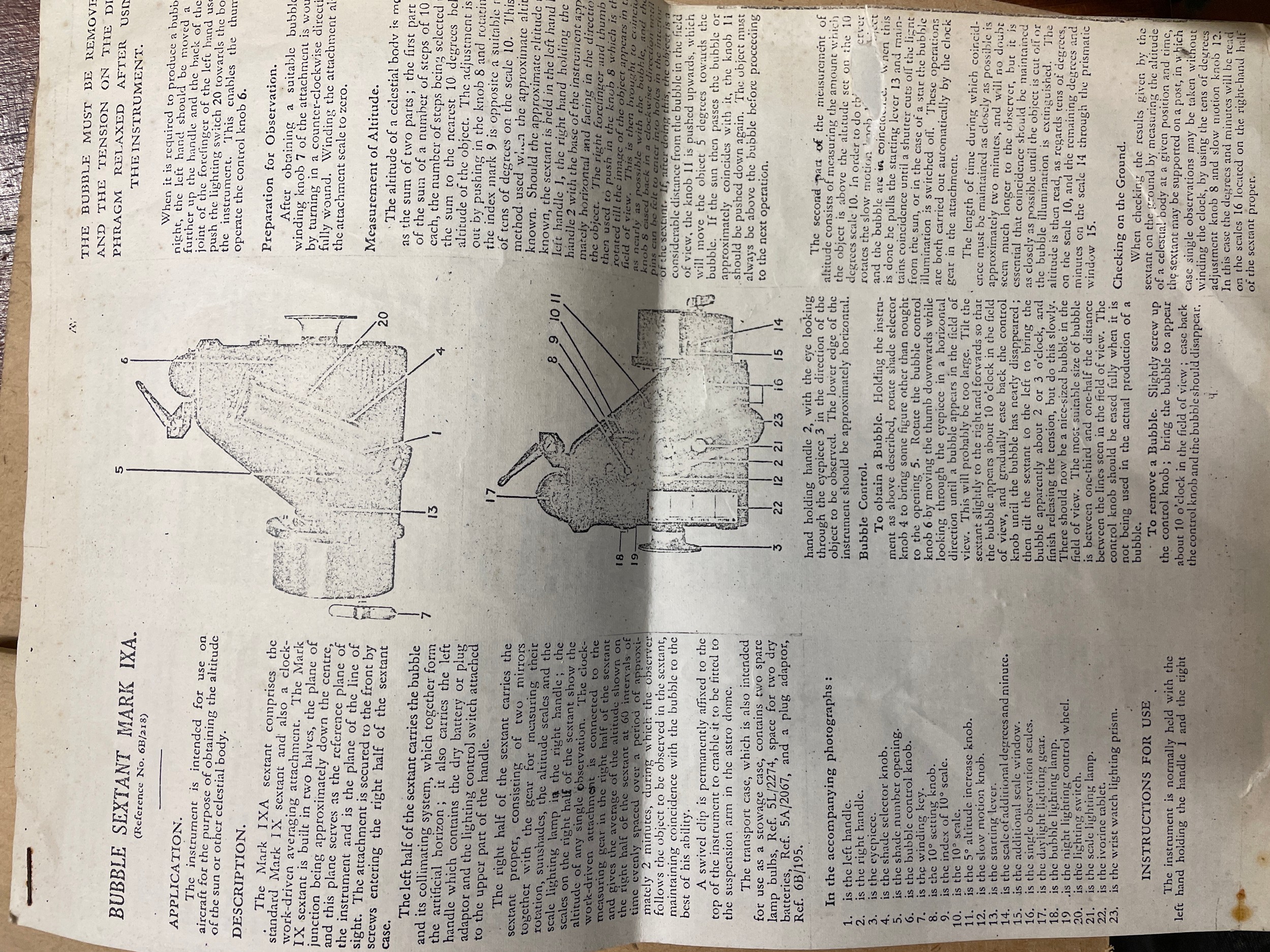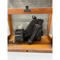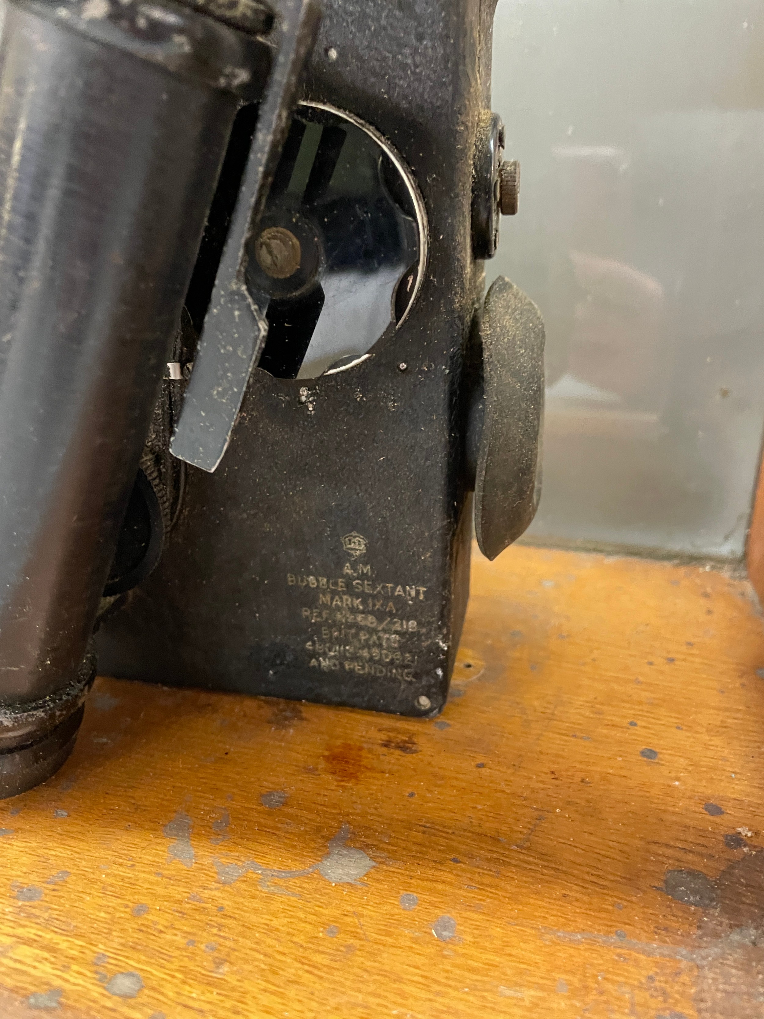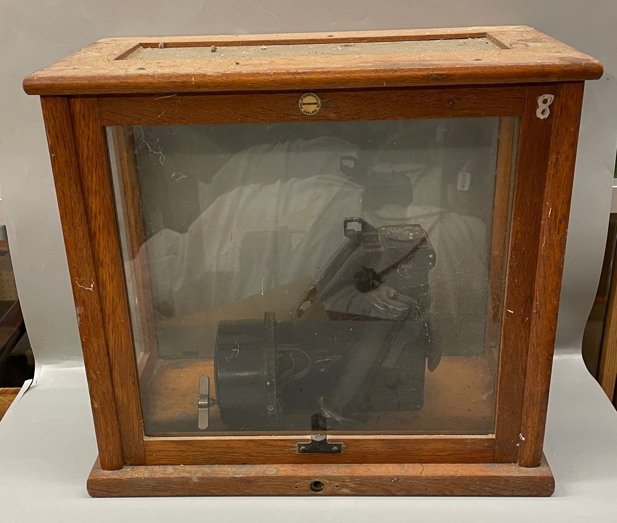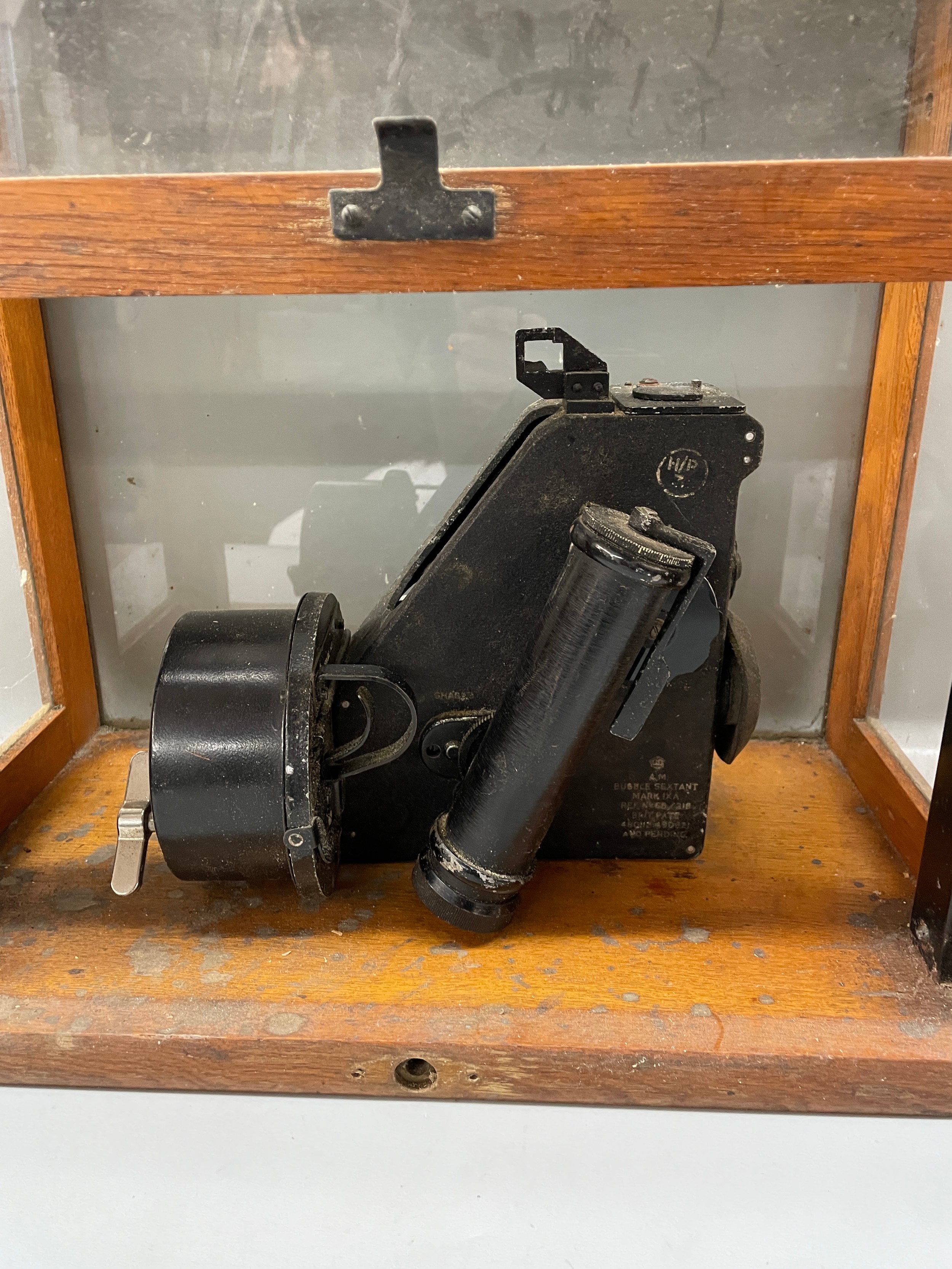 PHILLIP HARRIS AND CO GLAZED LABORATORY CABINET CONTAINING A BUBBLE SEXTANT # IXA WITH INSTRUCTIONS