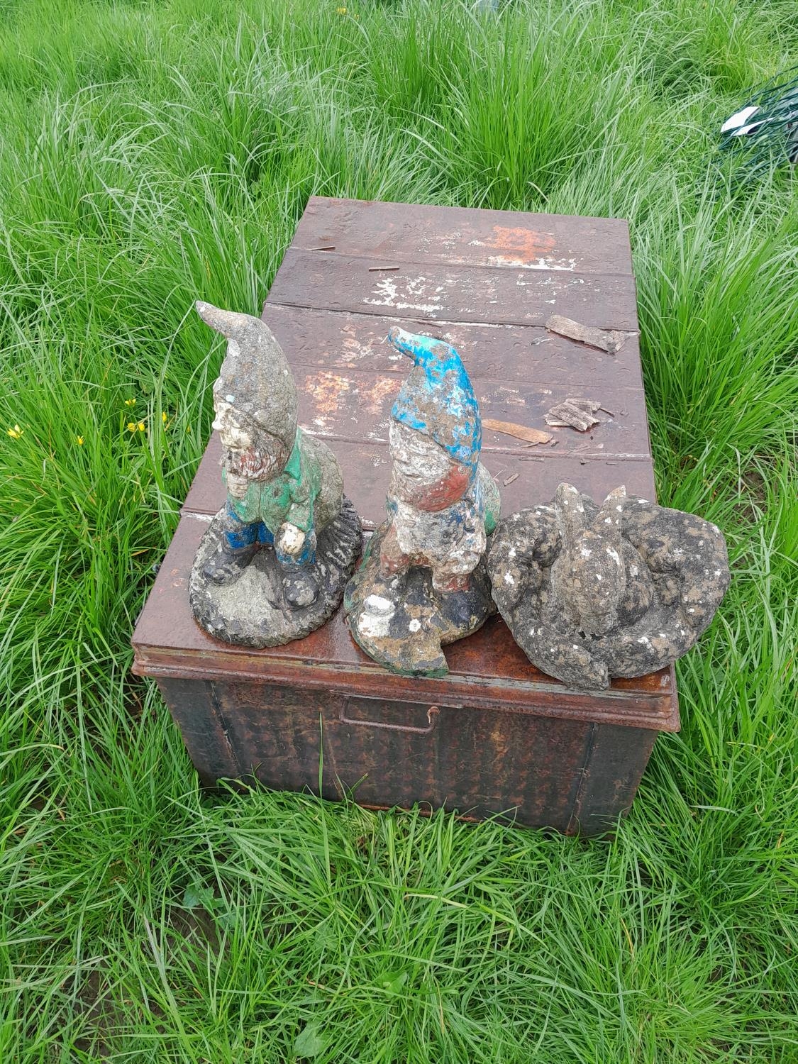 3 x composite garden stone ornaments, gnome interest