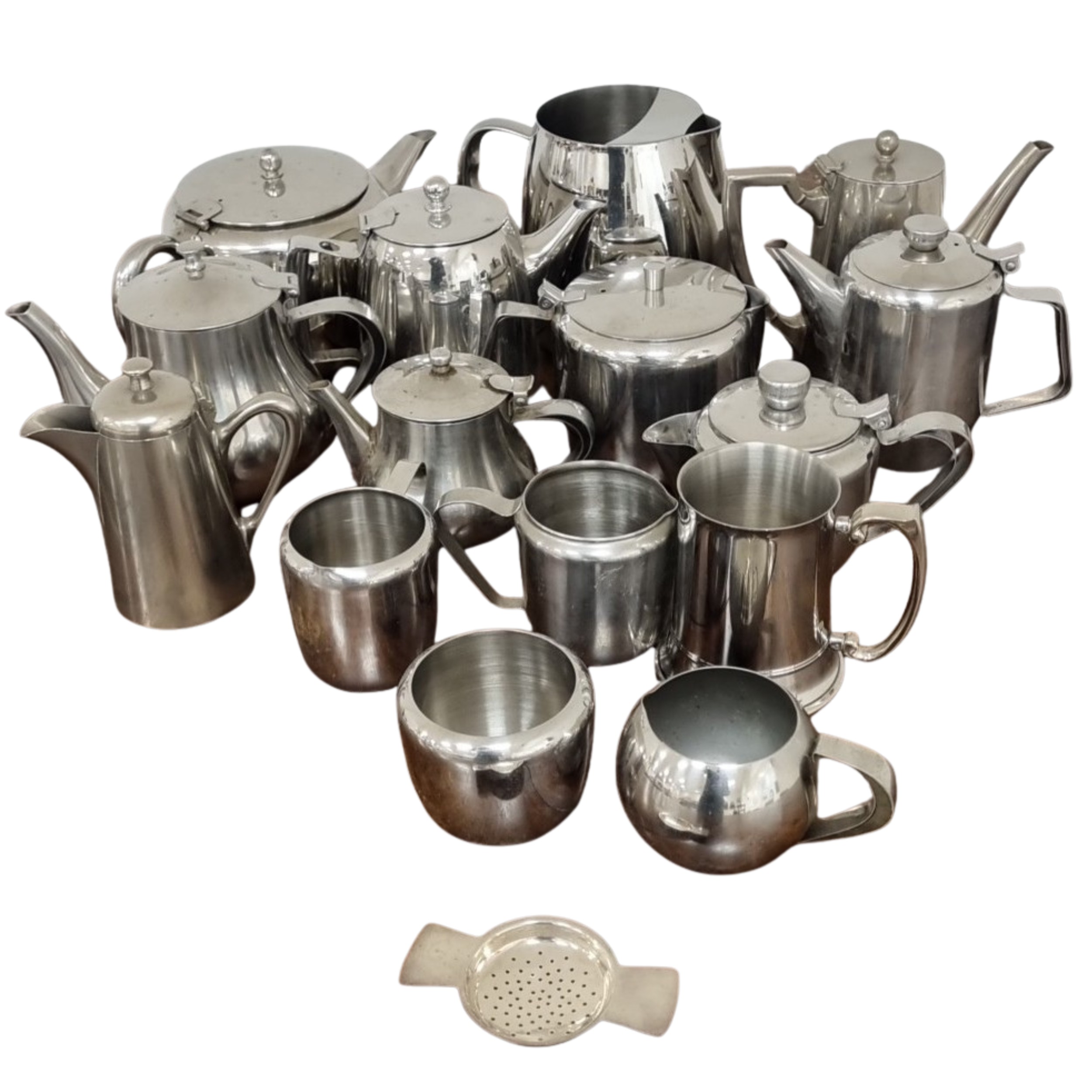 Quantity of stainless-steel tea and coffee wares, Tallest H: 16cm