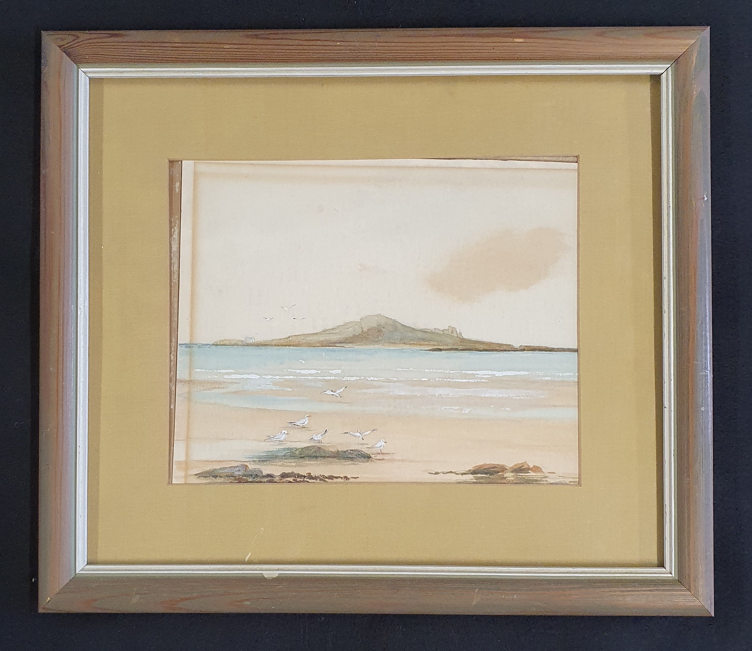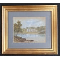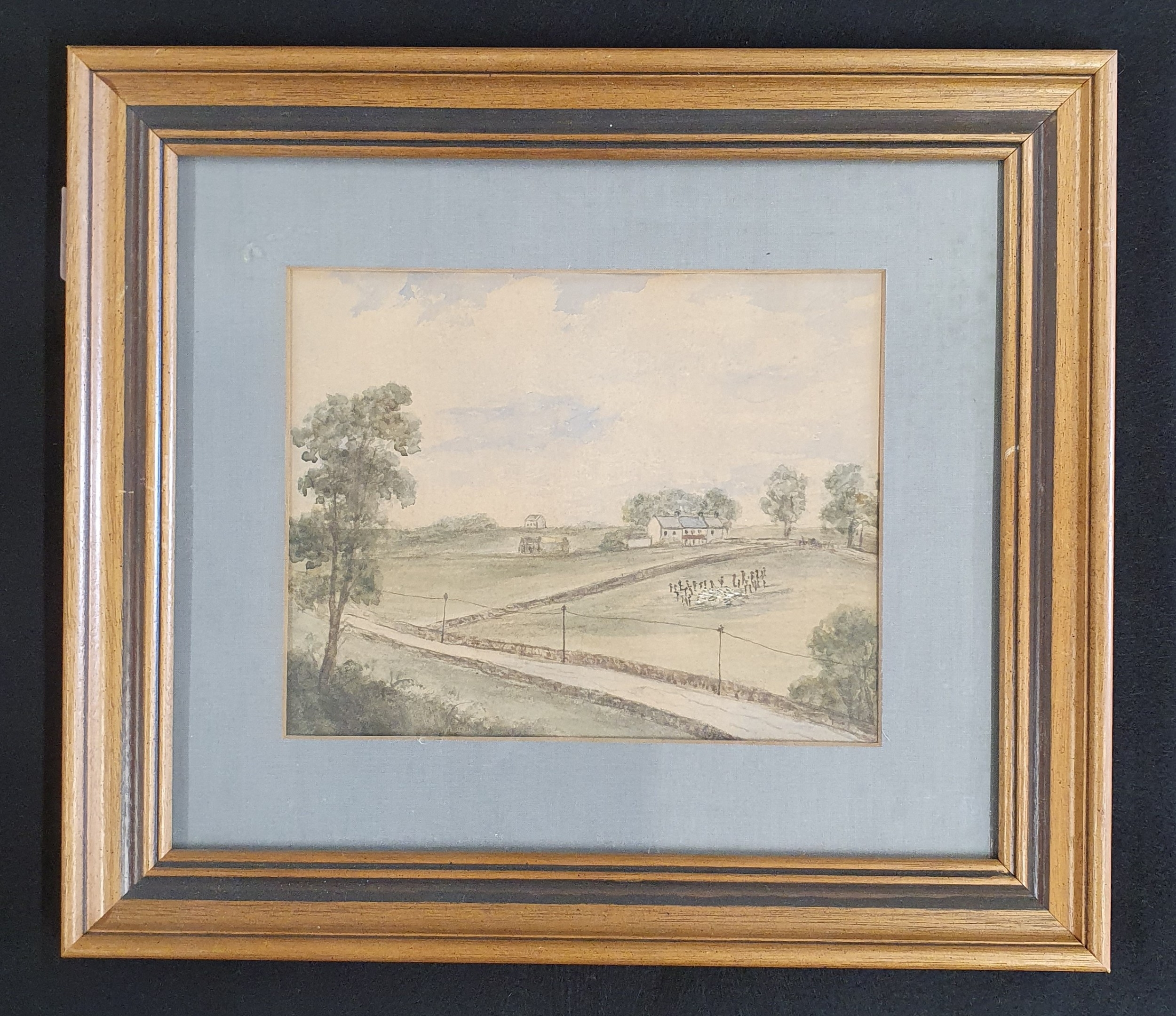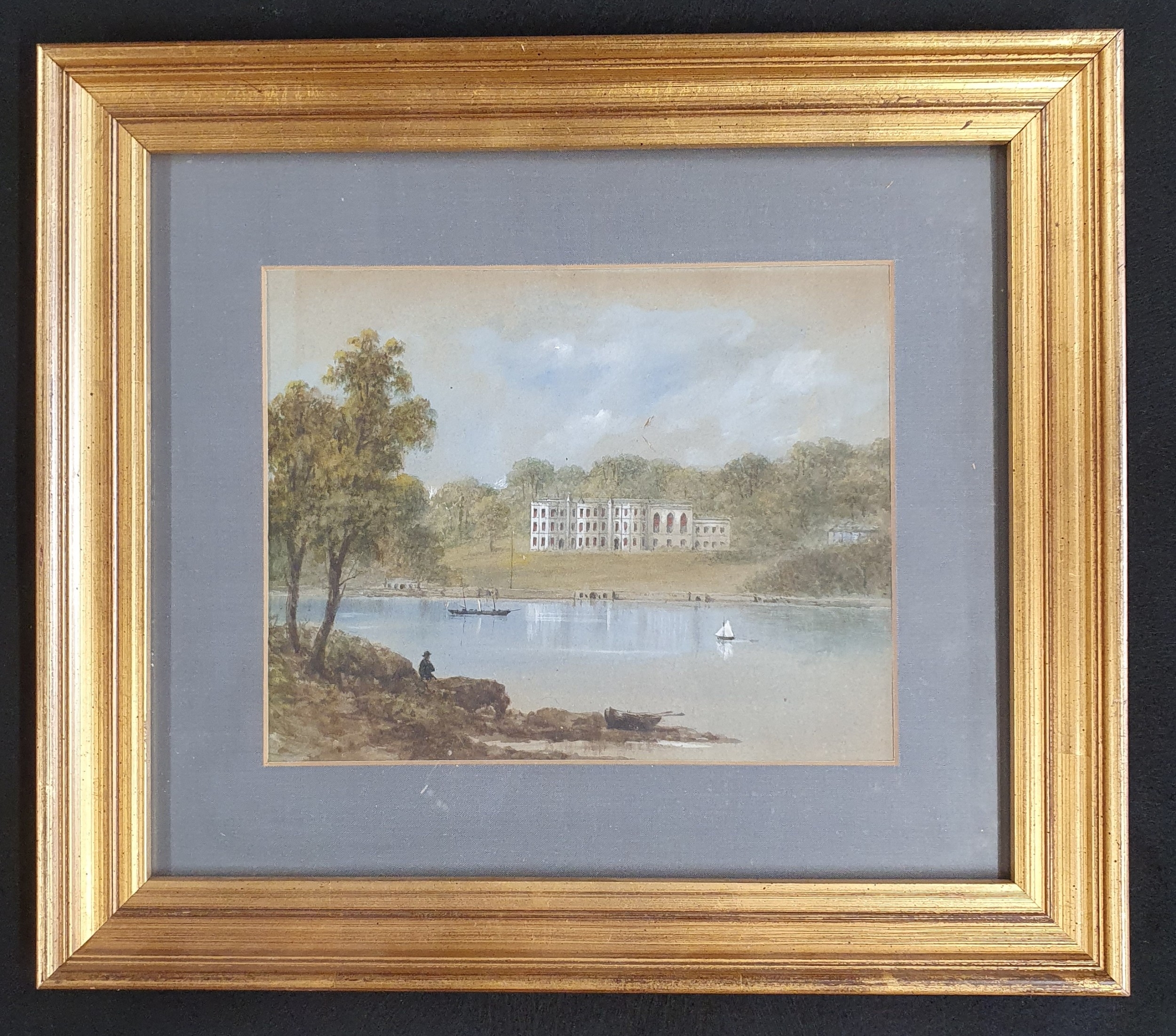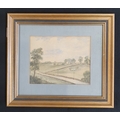 An early 20th Century Watercolour of a country scene along with another of a large stately home, no apparent signature and a 20th Century watercolour of a beach scene.