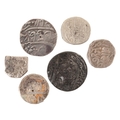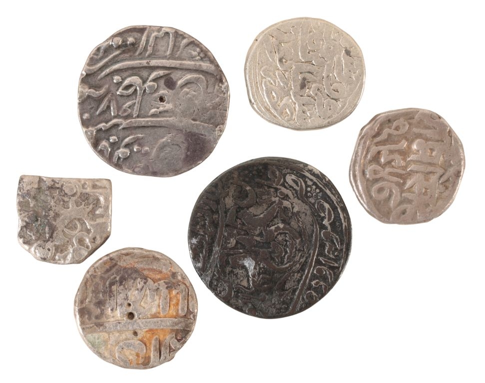 AN INDIAN MUGHAL SHAHAJ RUPEE and five other Indian coins (6)