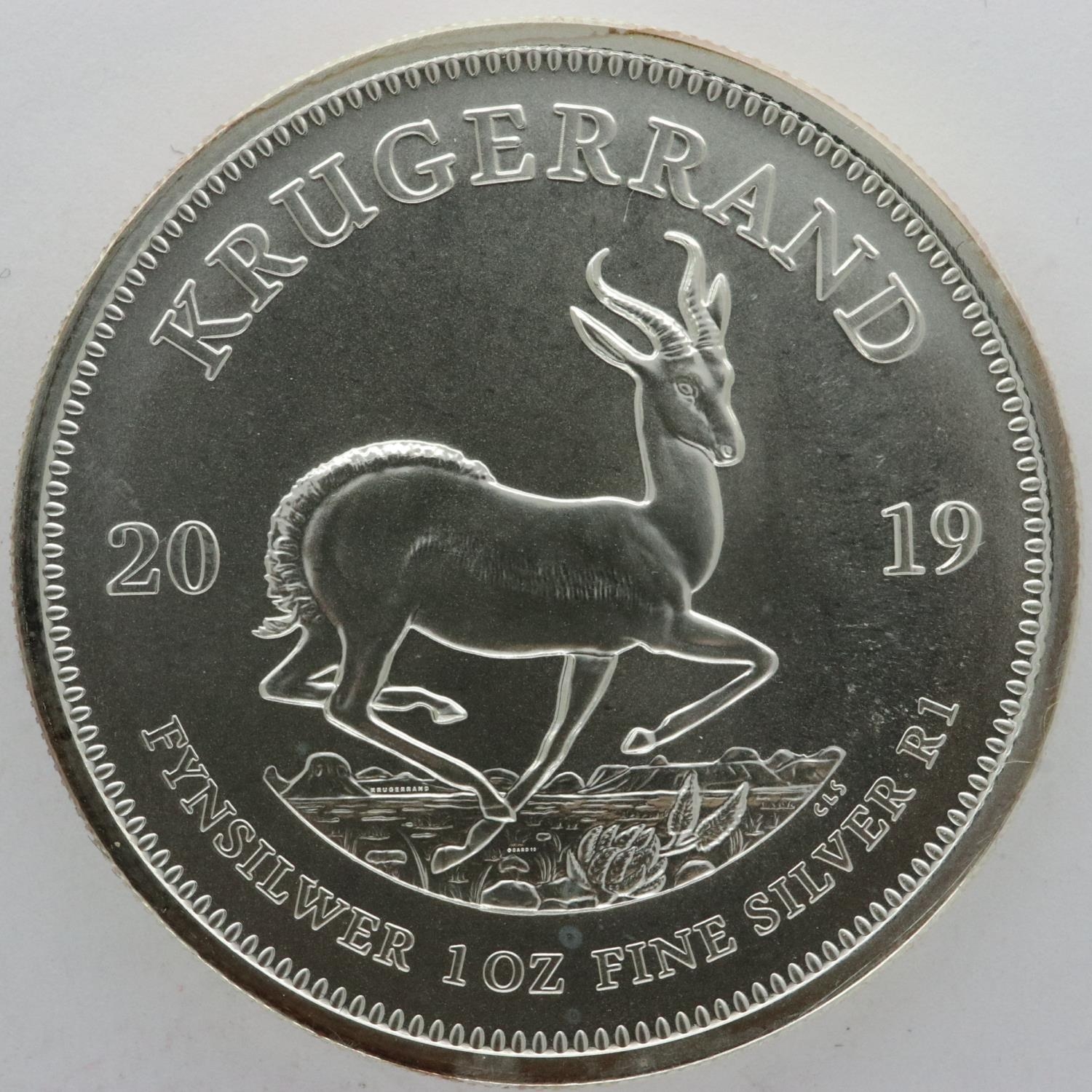 2019 silver bullion round, SA krugerrand. UK P&P Group 0 (£6+VAT for the first lot and £1+VAT for subsequent lots)