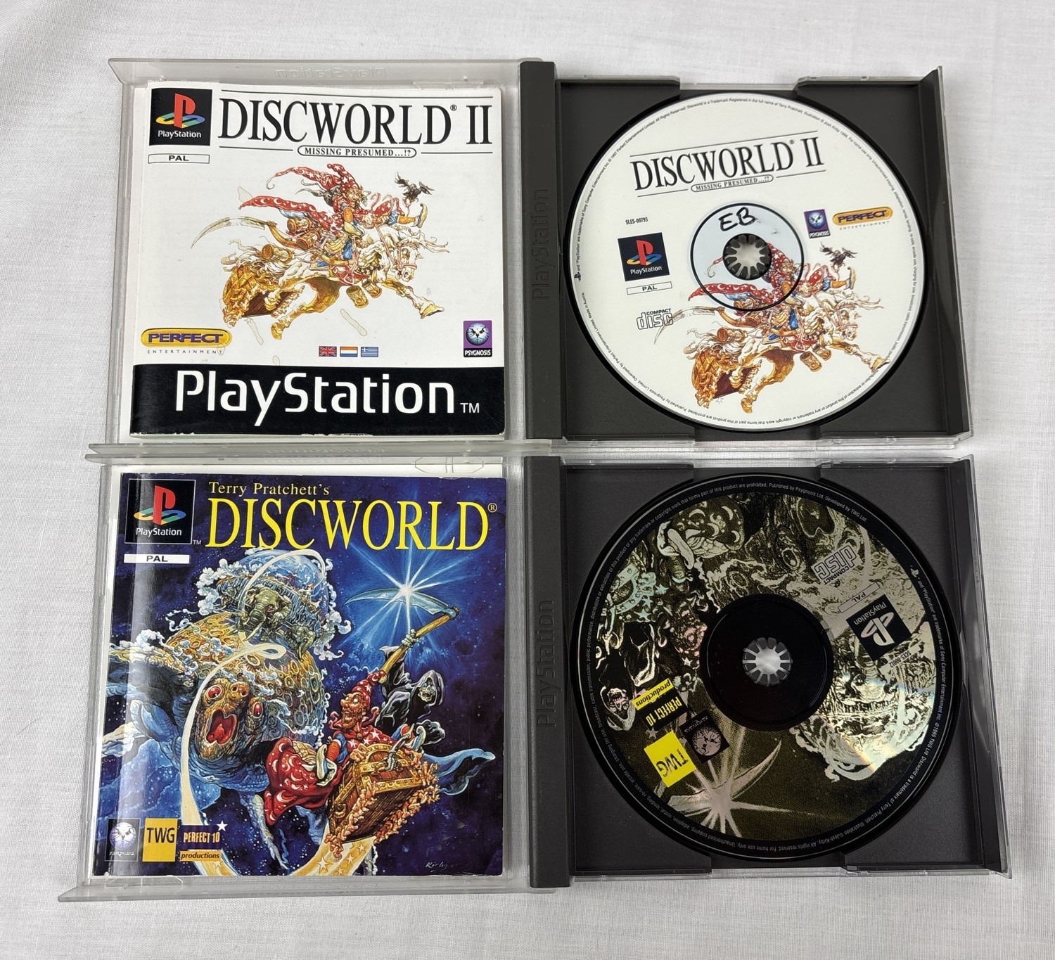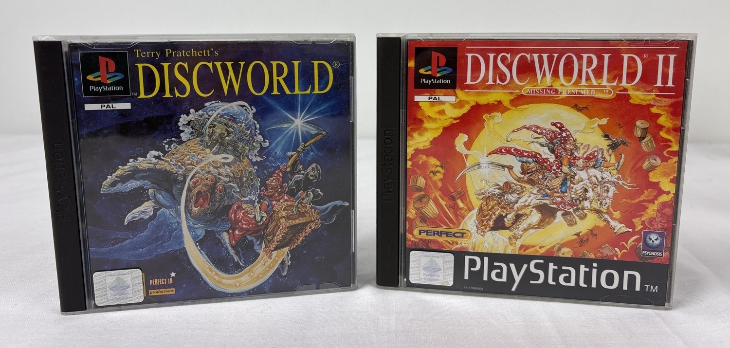 Terry Pratchett's Discworld & Discworld II - for PS1 PlayStation 1, both in excellent condition and complete with manuals.