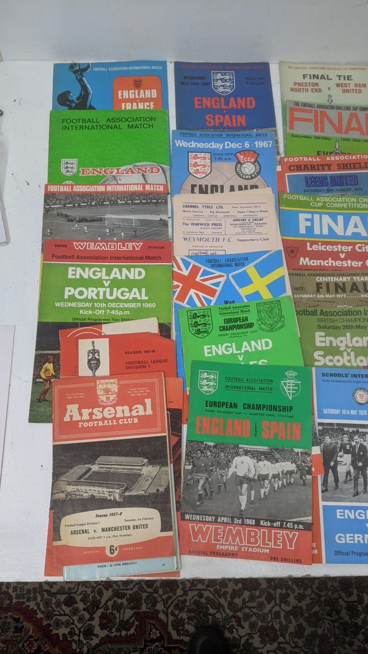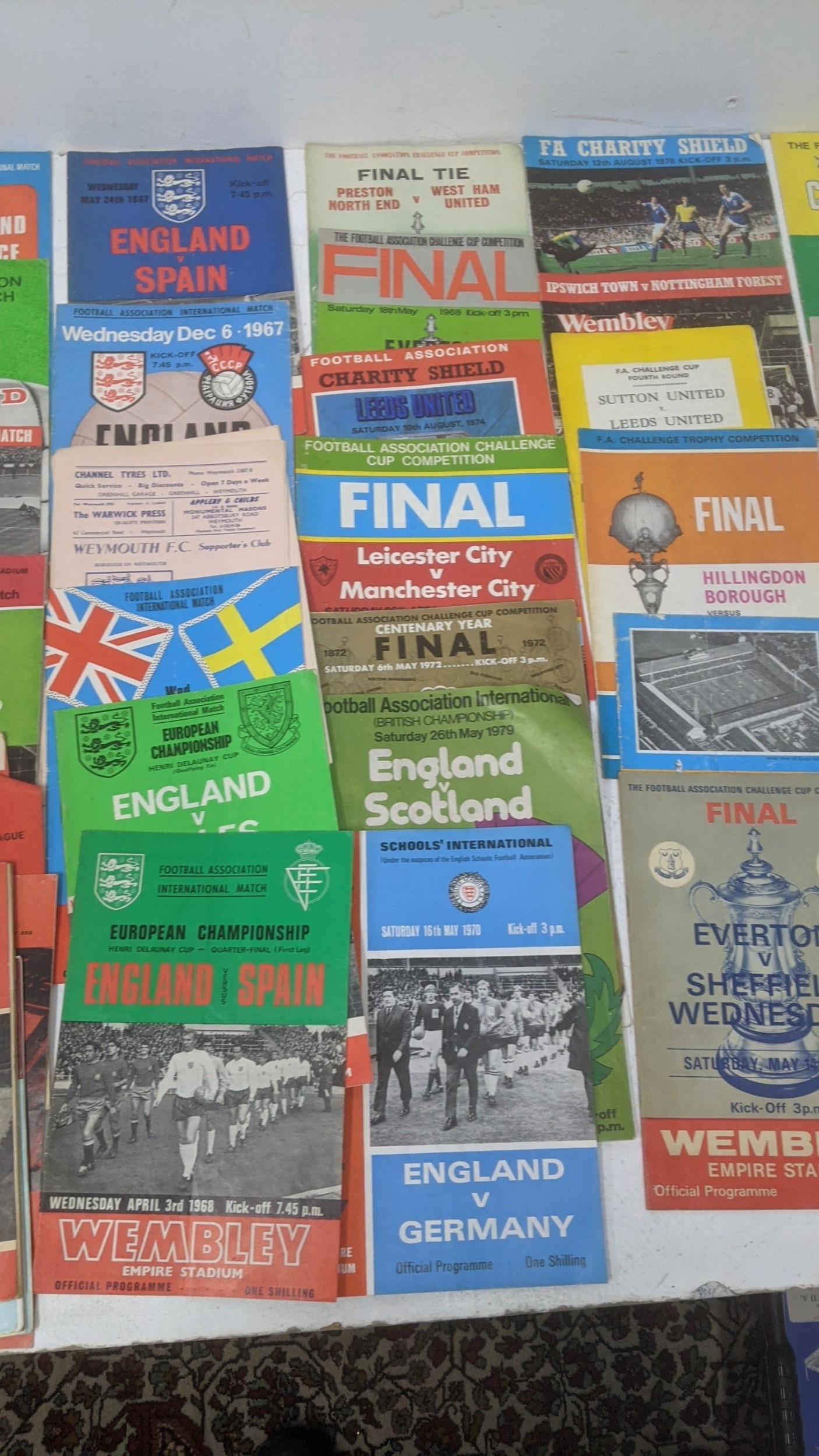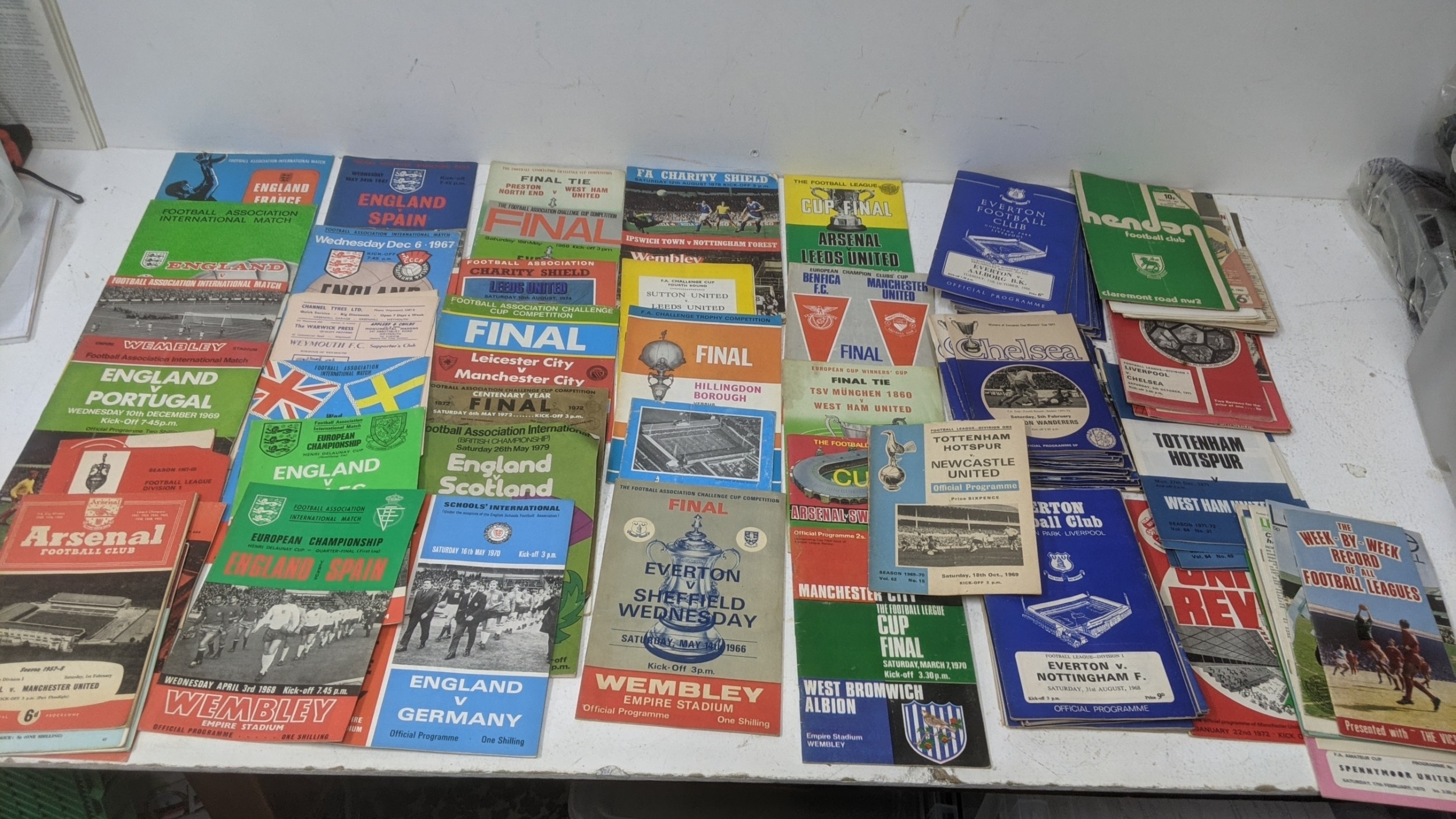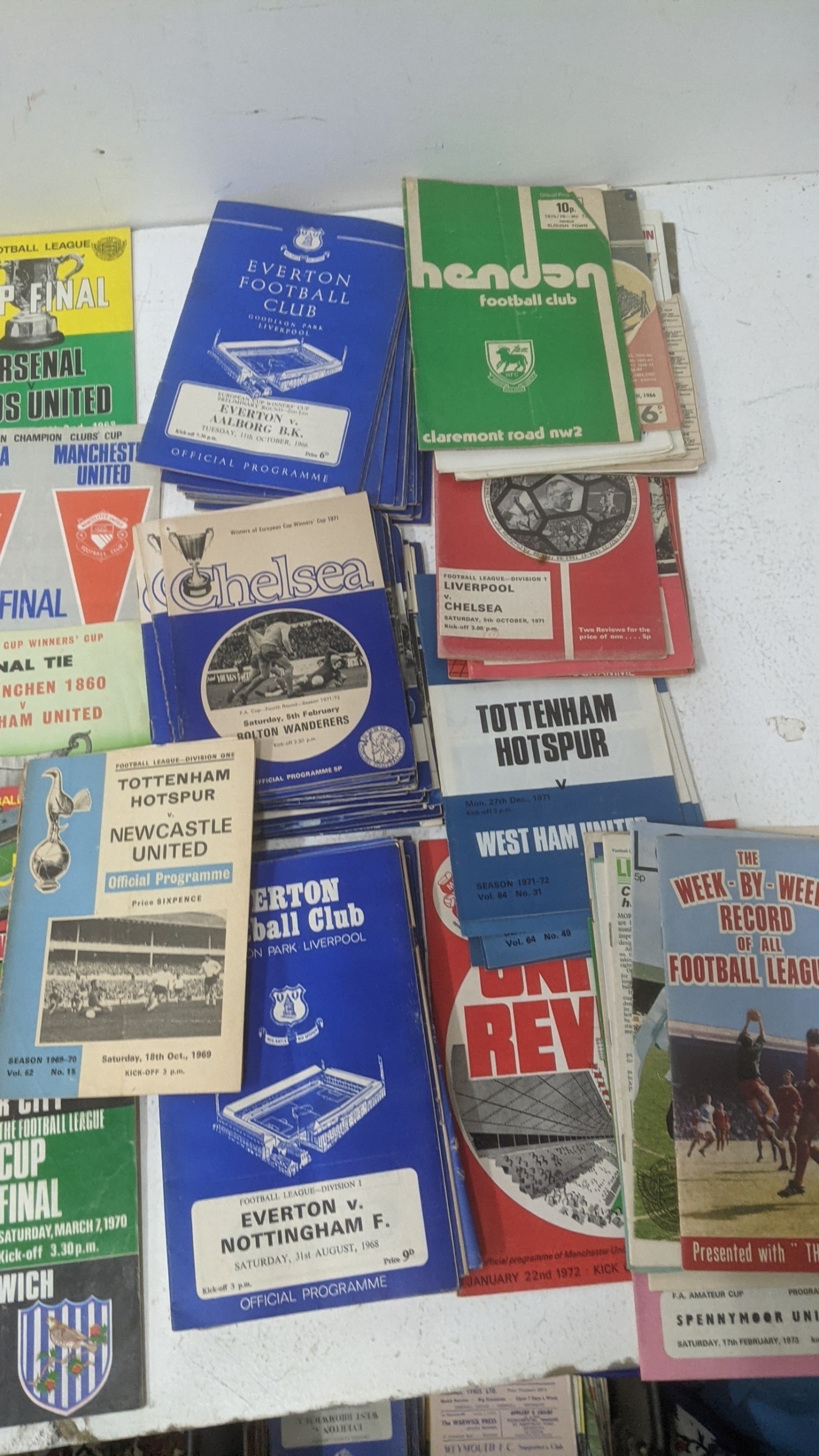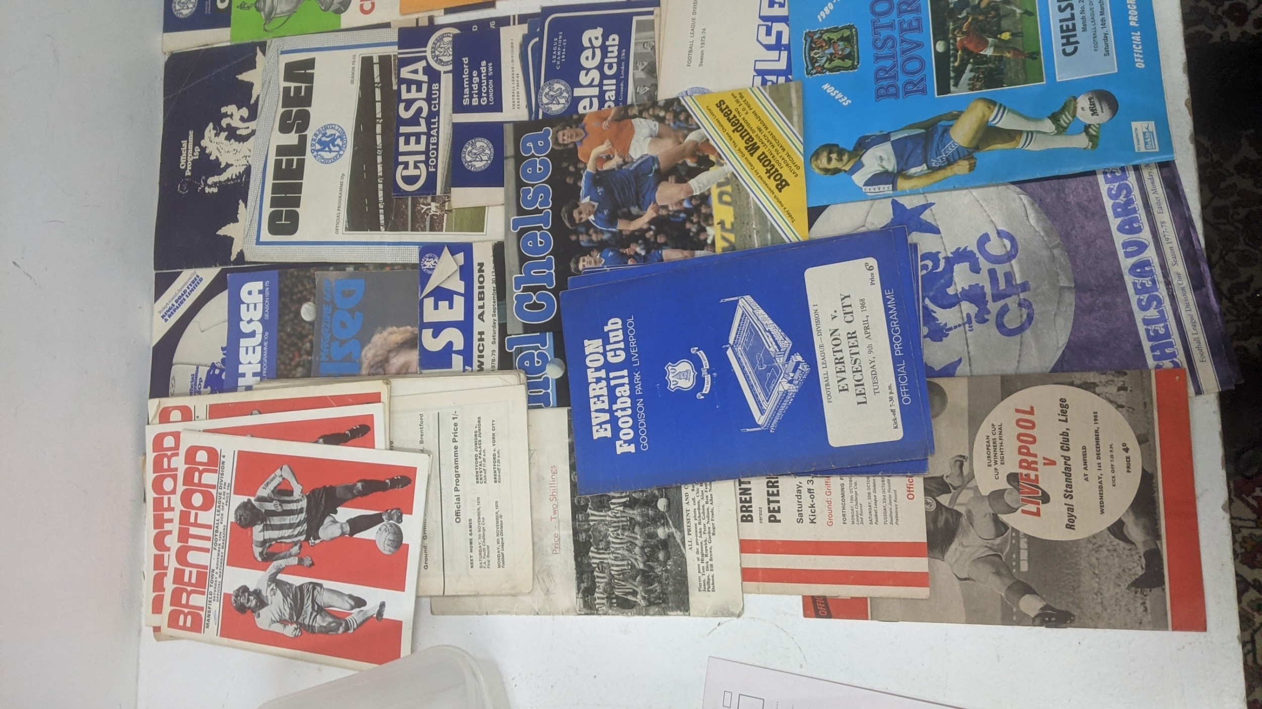 1950s and later football programmes to include Manchester United 5 March 1958, Chelsea, West Ham, Luton Town v Chelsea, Chesham v Leytonstone 1968, Kingstonian, World Cup Mexico 1970, and 1960s rosettes Location:GR