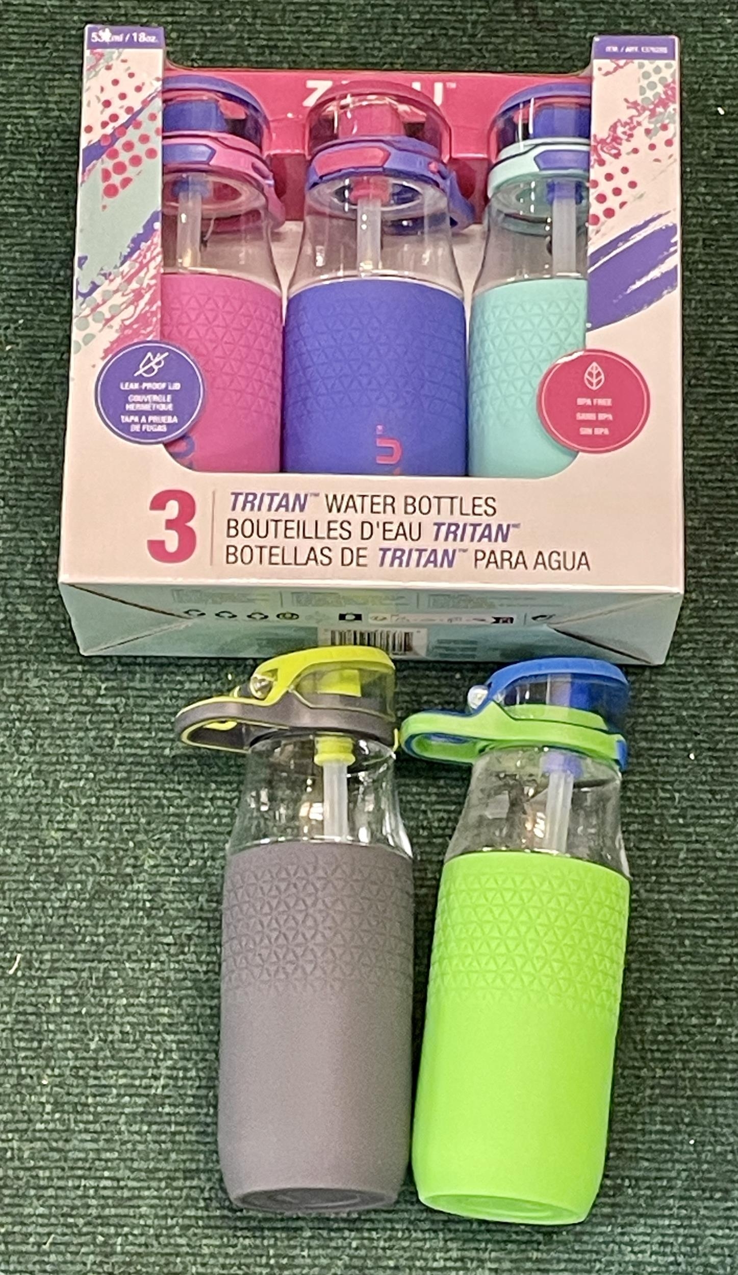 BOX OF 3 TRITON ZULU WATER BOTTLES - VARIOUS COLOURS TOGETHER WITH 2 X ZULU WATER BOTTLES