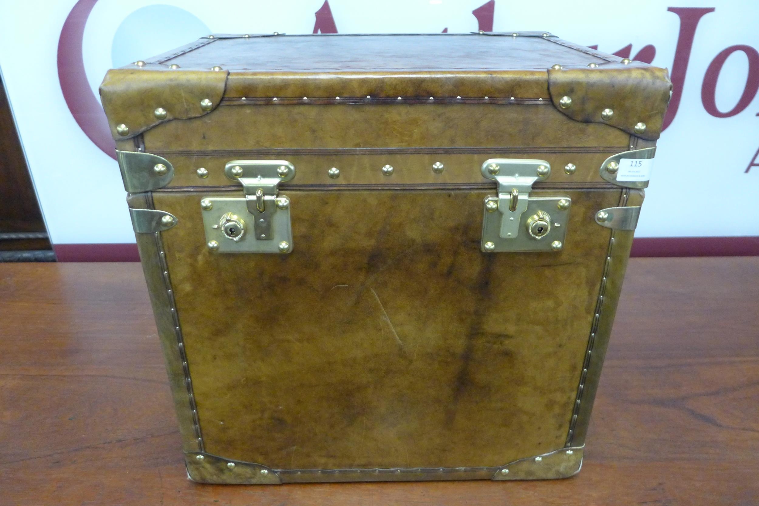 A brown leather and brass mounted trunk