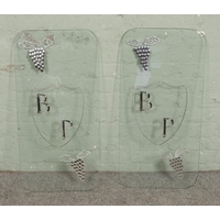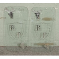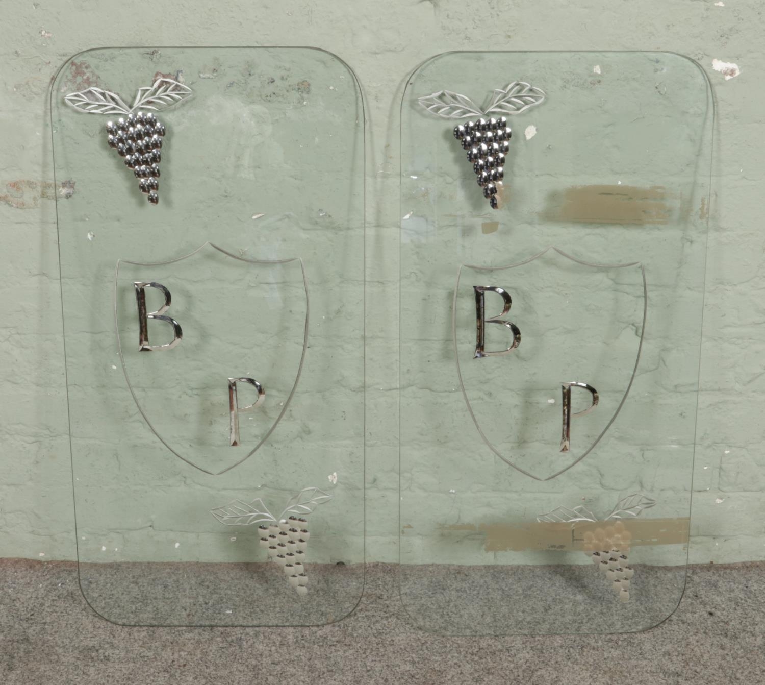 Two glass panels marked for BP in central crest, surrounded by grape bunches. Approx. dimensions 86.5cm x 43cm.