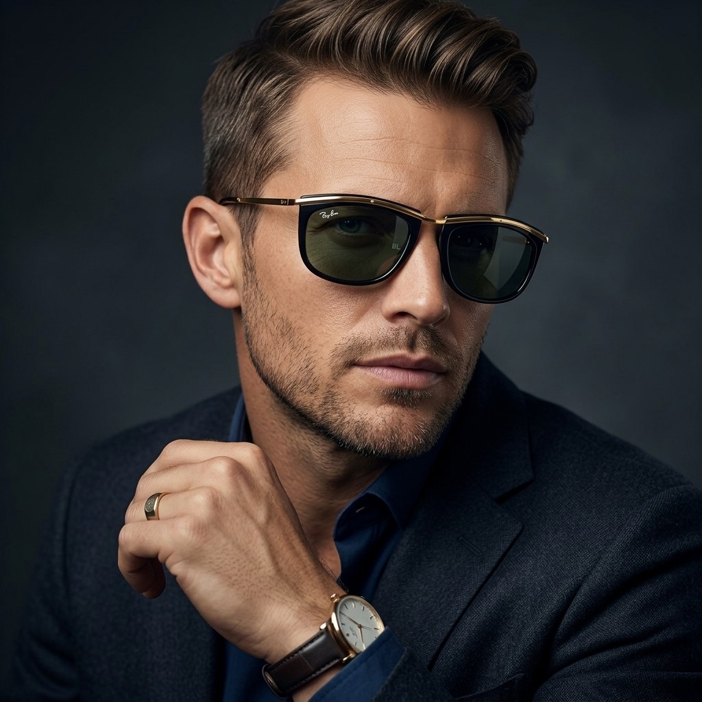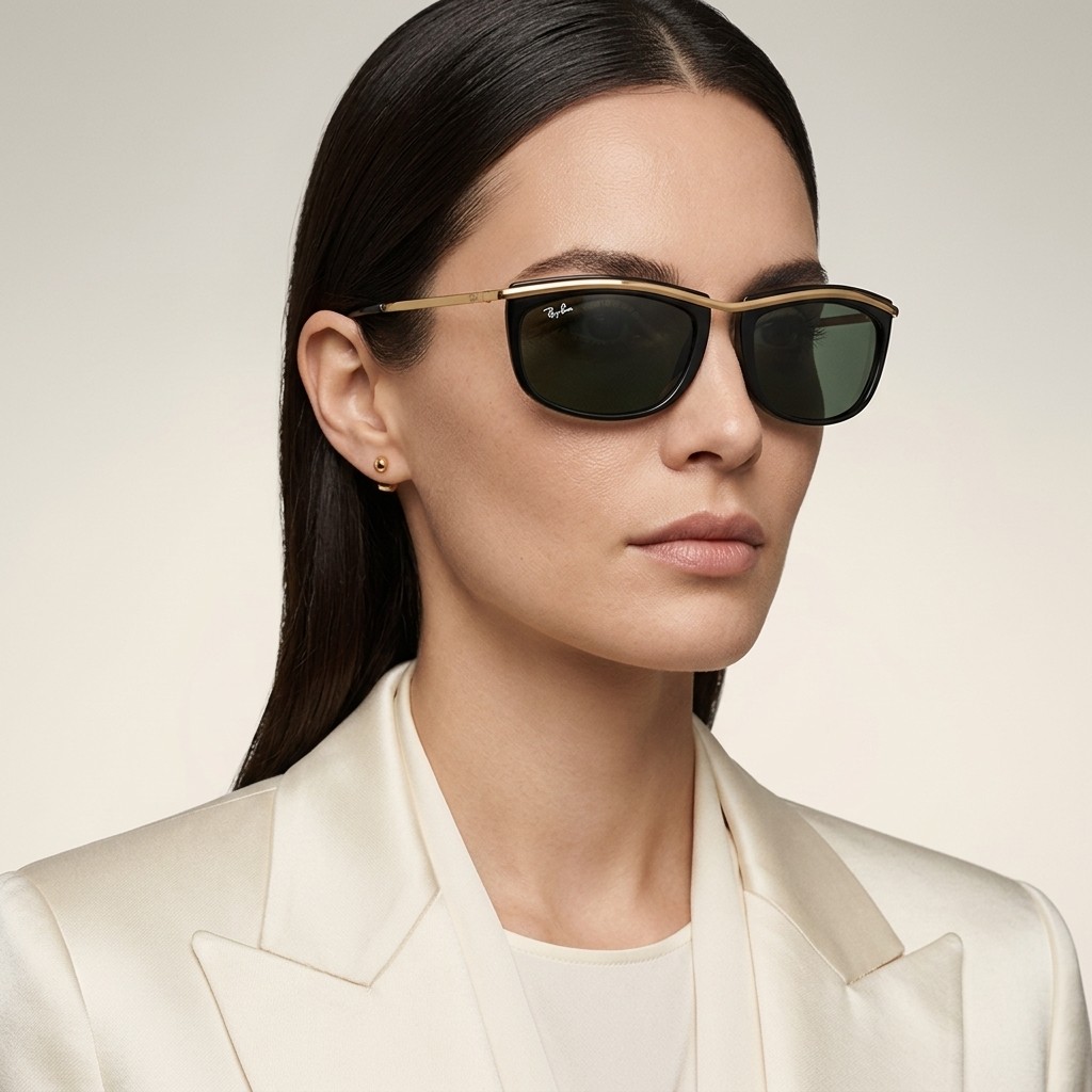 A pair of Ray Ban sunglasses. Comes in original Ray Ban leather bound pouch. Please note, the image of the modelled item was created by a new imaging/ staging software called showiton.ai. Upload a simple image of a piece of jewellery and the software stages it on a model for you. Paste the URL (showiton.ai) into your browser and try it for free. It’s a very simple, user-friendly platform.
