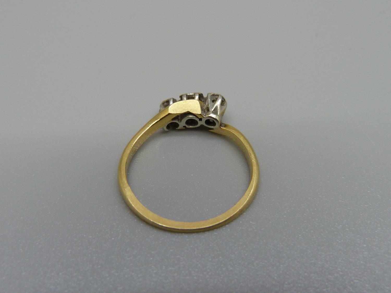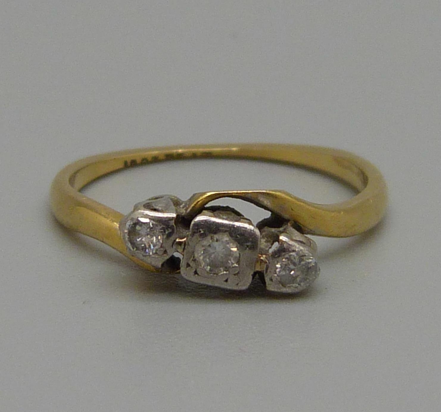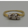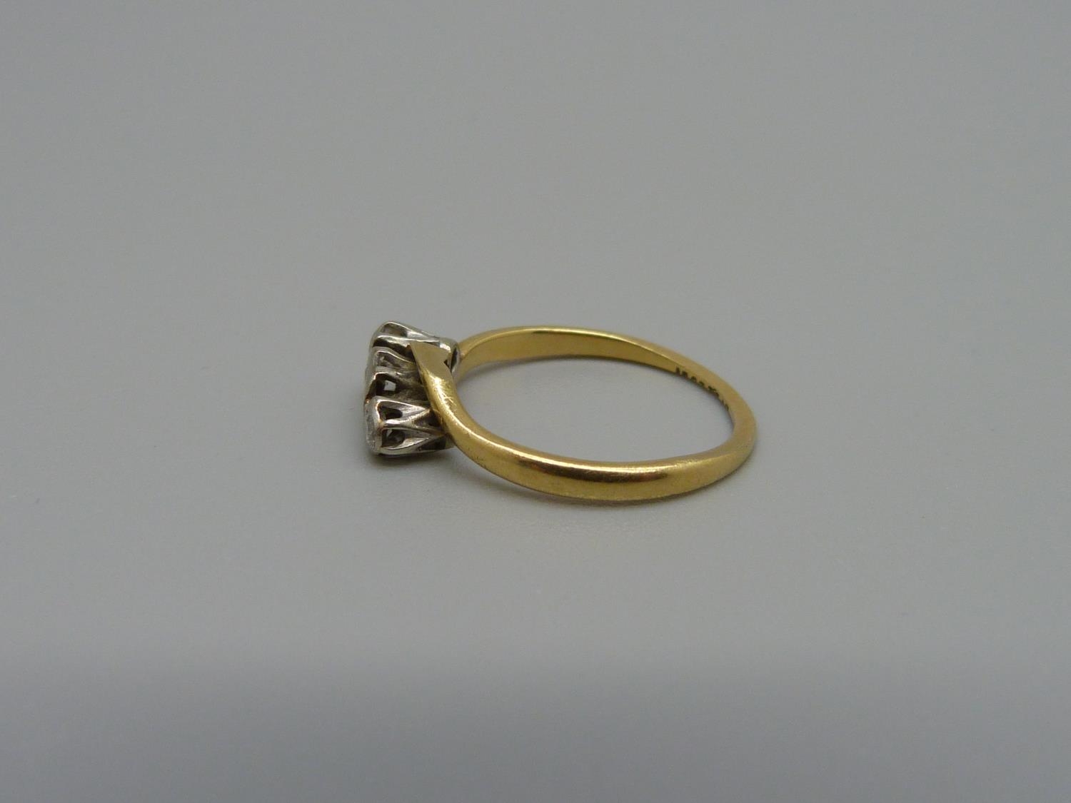 An 18ct gold and platinum set diamond ring, 1.8g, K, shank worn