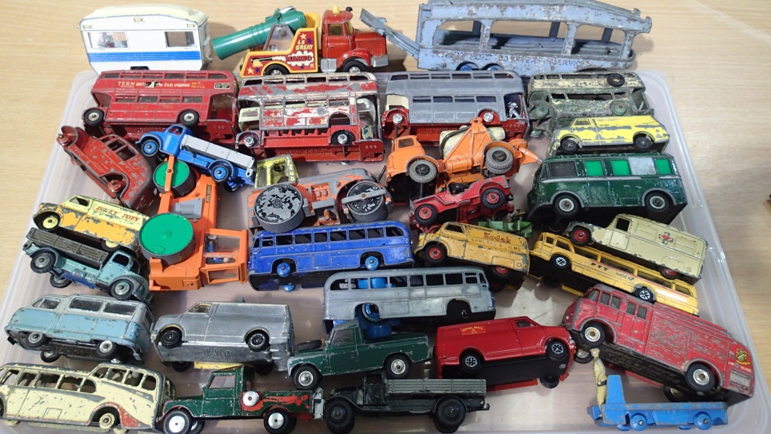 Approximately 30x Dinky toys Playworn vehicles, suitable for refurbishment. UK P&P Group 2 (£24+VAT for the first lot and £5+VAT for subsequent lots)