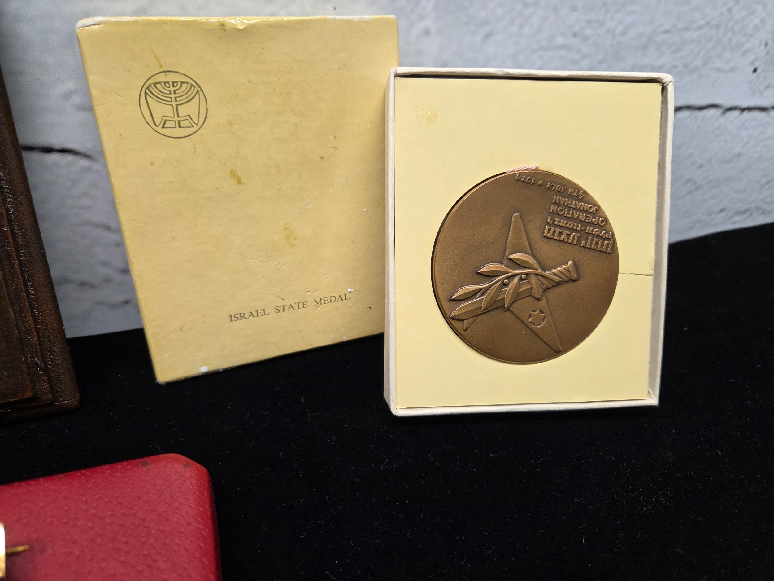 A Mixed Lot to include Israel Commemorative Medal commemorating the Entebbe Raid, Pair of Silver Medals (45g w/ribbons), a French "Les Glaneuses" Wall Placque etc