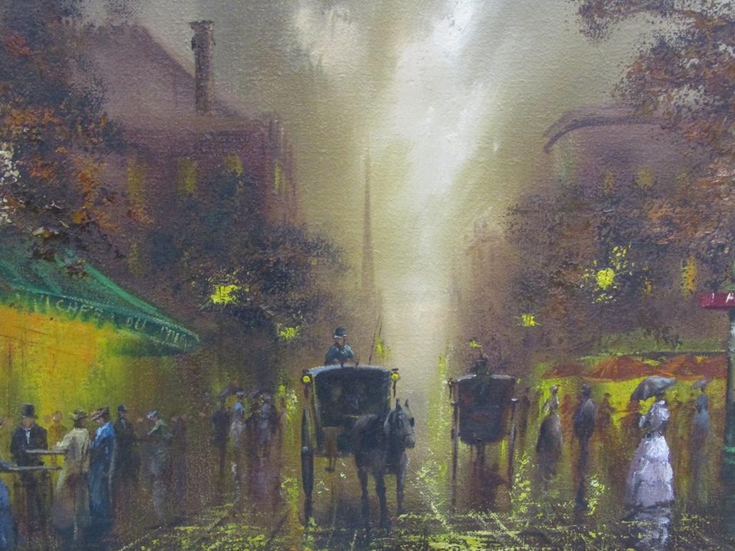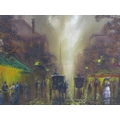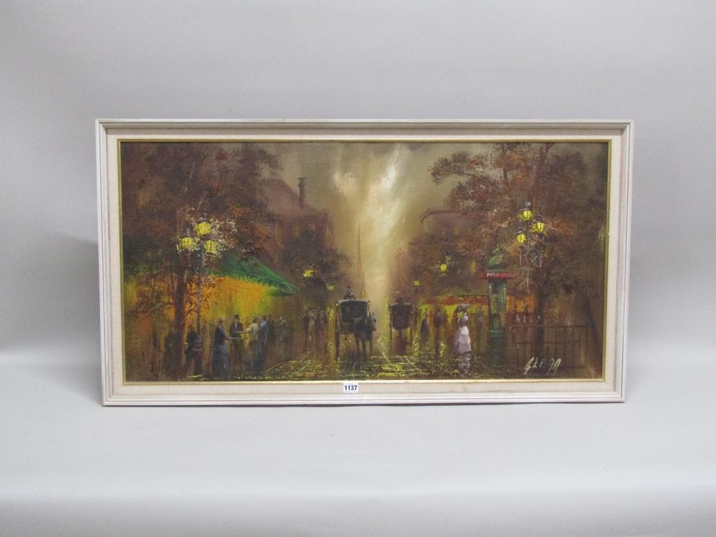 GLENN - NIGHT TIME STREET SCENE WITH HORSE AND CARRIAGE, SIGNED OIL ON CANVAS, FRAMED