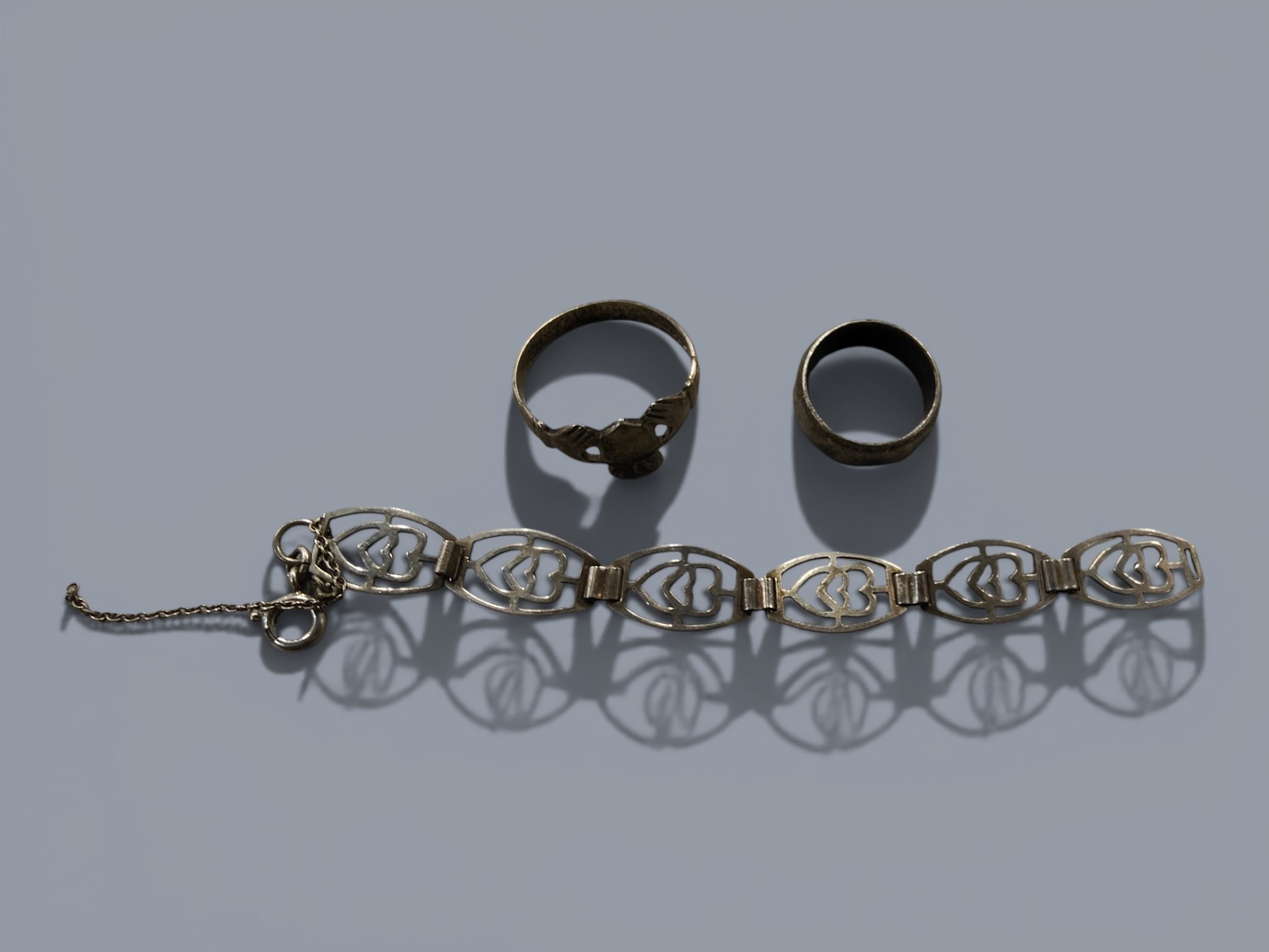 2 SILVER RINGS AND PART BRACELET