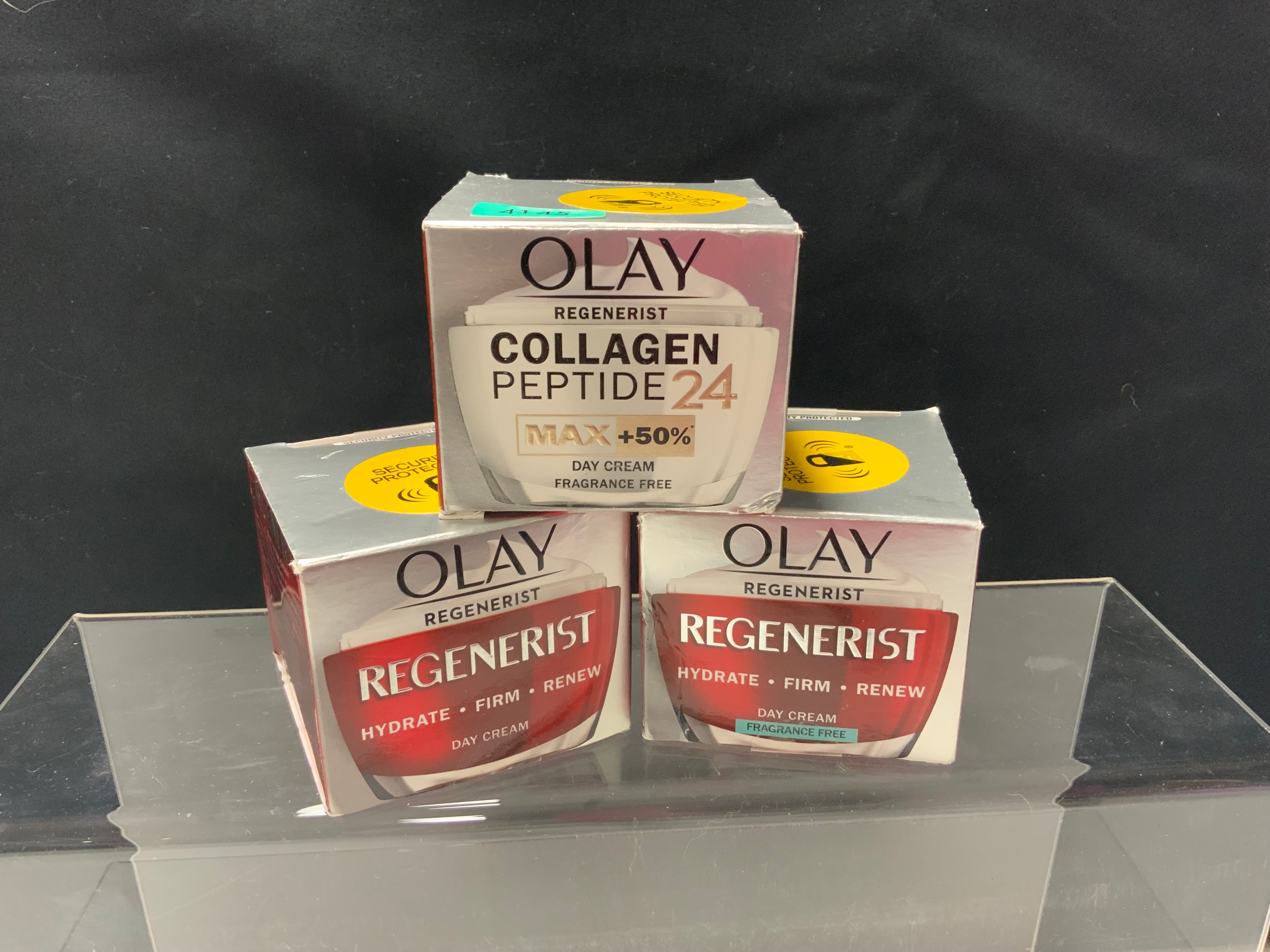 OLAY REGENERIST HYDRATE DAY CREAM FRAGRANCE FREE 50ML, OLAY REGENERIST HYDRATE SPF30 DAY CREAM 50ML & OLAY REGENERIST COLLAGEN PEPTIDE 24 MAX 50% DAY CREAM FRAGRANCE FREE 50ML TOTAL RRP £63.97 ( P23078829 / C )