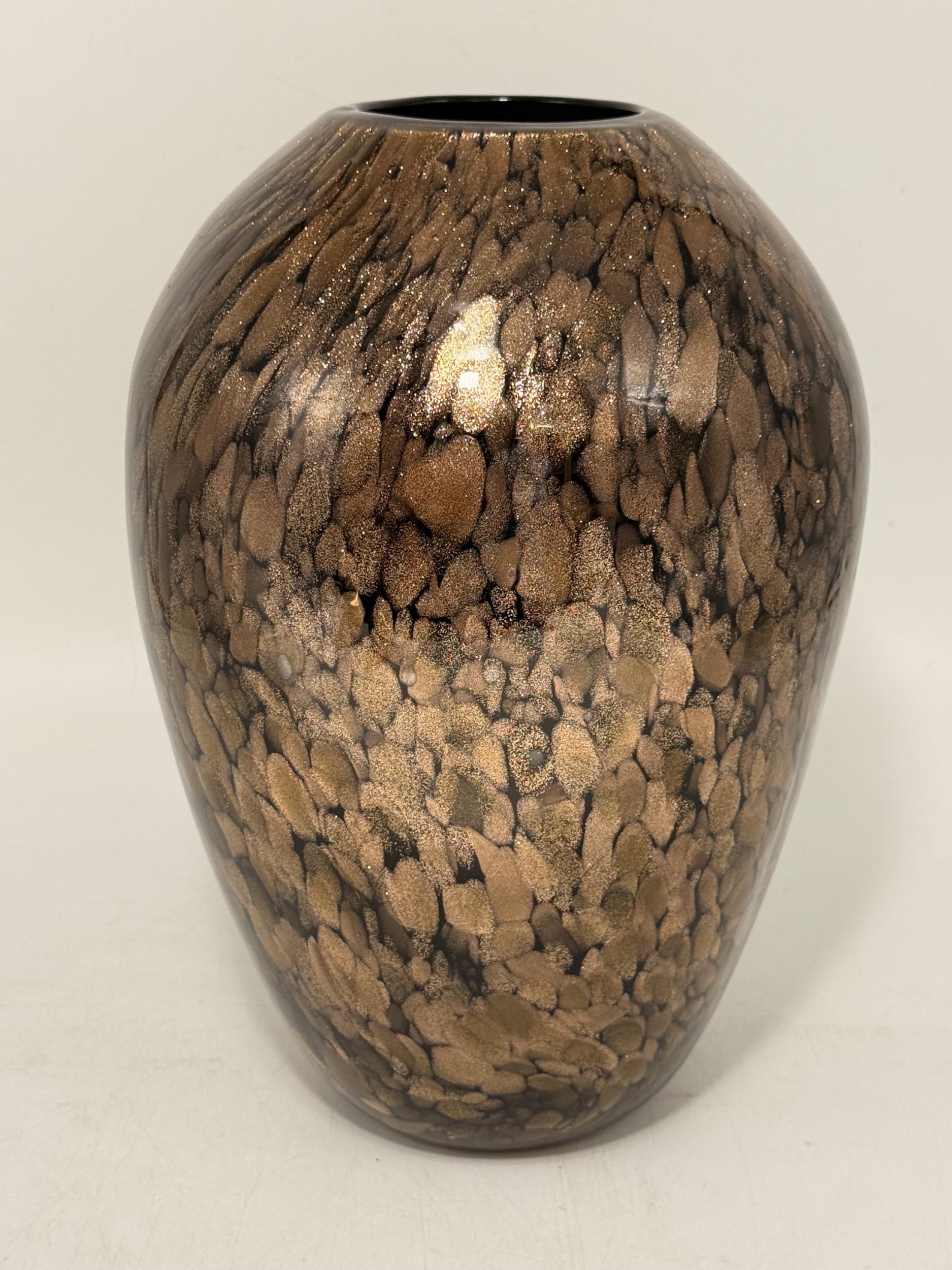 An ovoid glass vase, with copper aventurine speckled glitter decoration. 29.5cm high