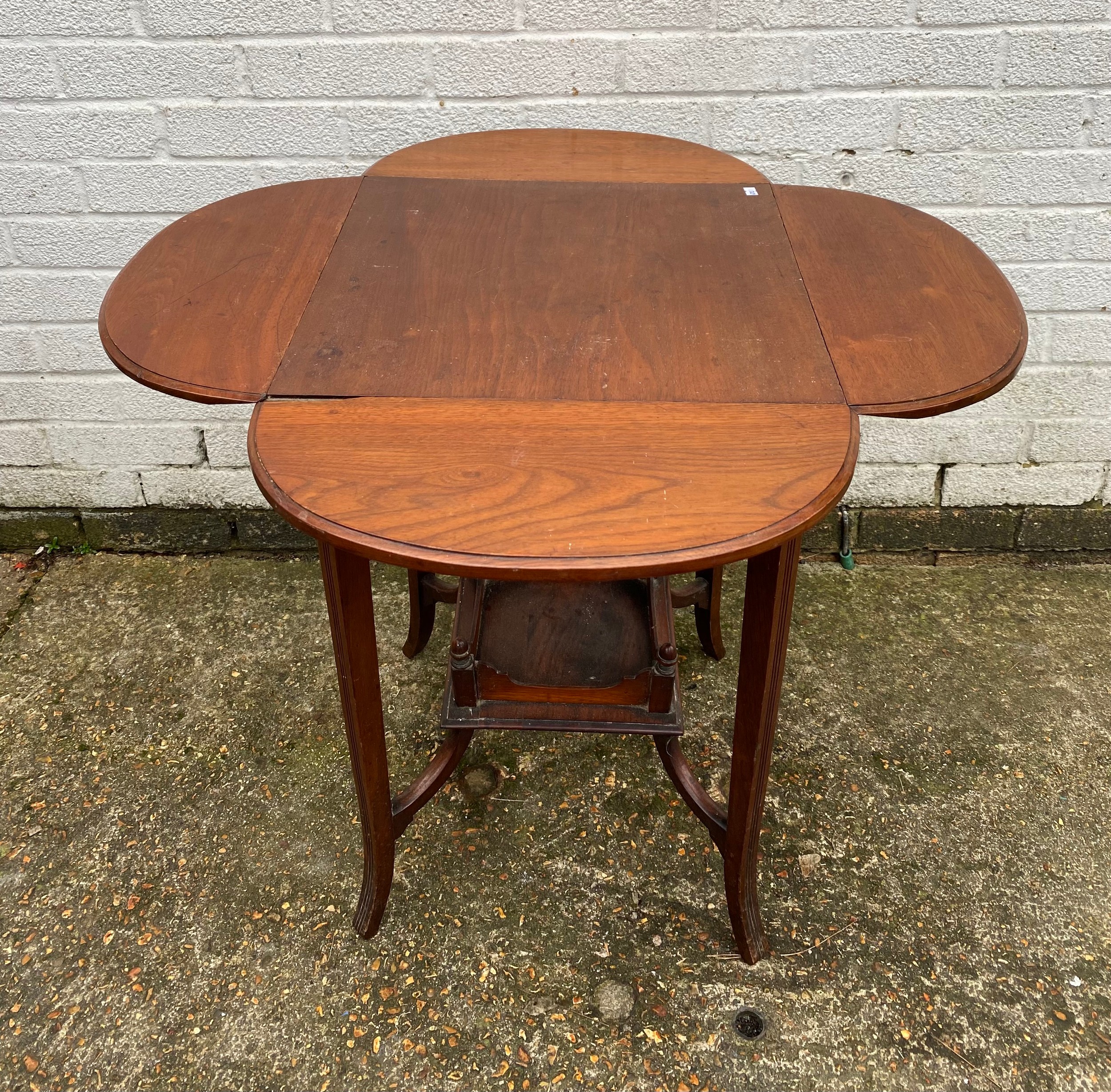 An occasional table with four drop sides and undertier -