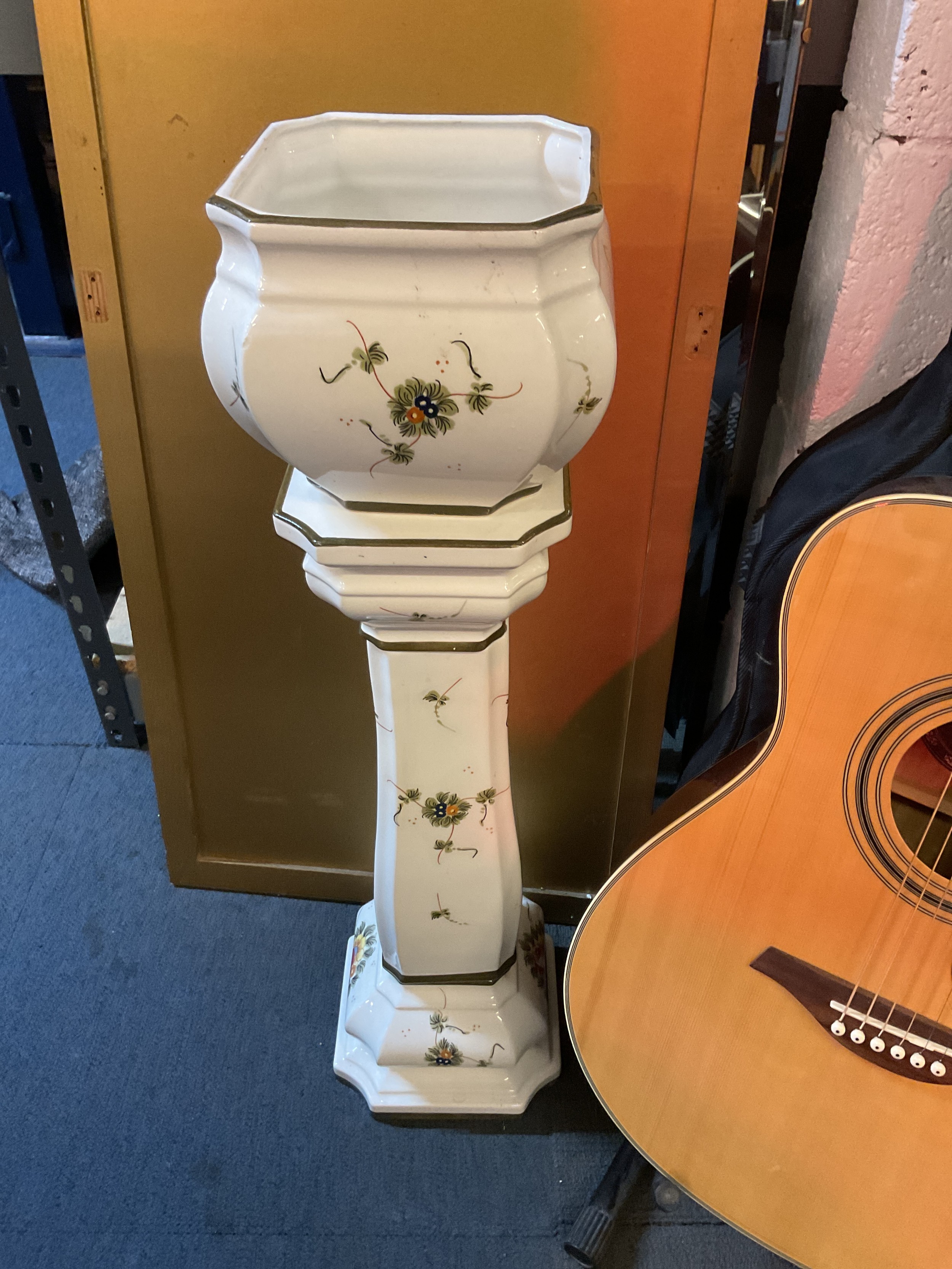 A Capodimonte jardiniere stand having floral decoration 28 1/2" tall